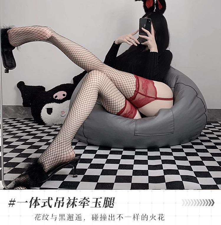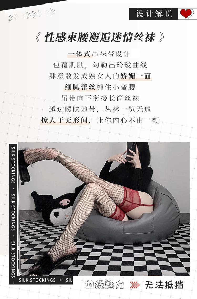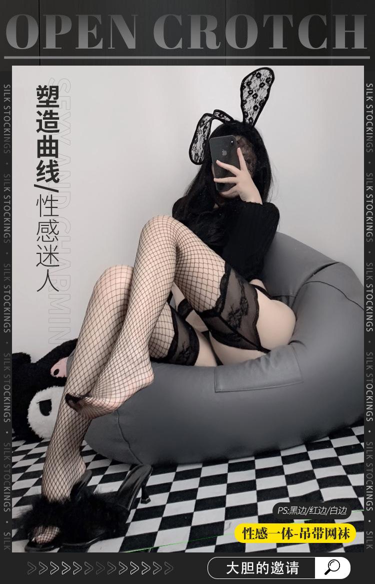 Medias de red con tiras sexys Lin Linting para mujer, de seda negra, por encima de la rodilla, con encaje, tentación, entrepierna abierta, 3406