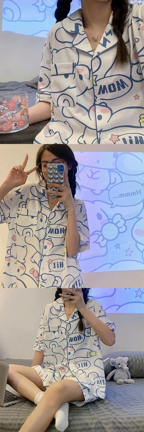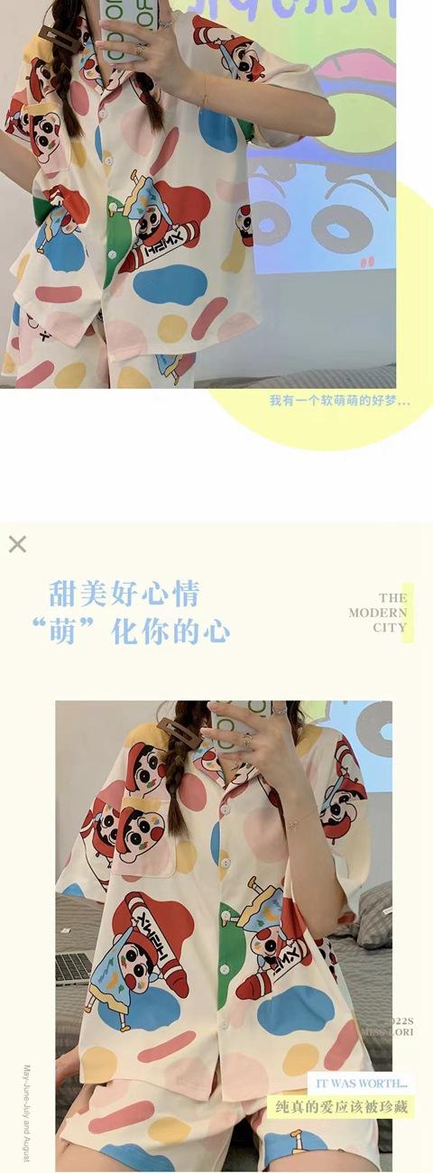 Pijama de verano Crayon Shin para mujer, cárdigan de manga corta con dibujos animados, ropa exterior informal y cómoda para el hogar, traje de dos piezas