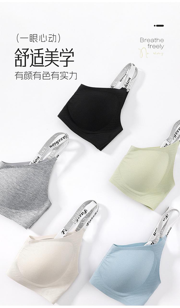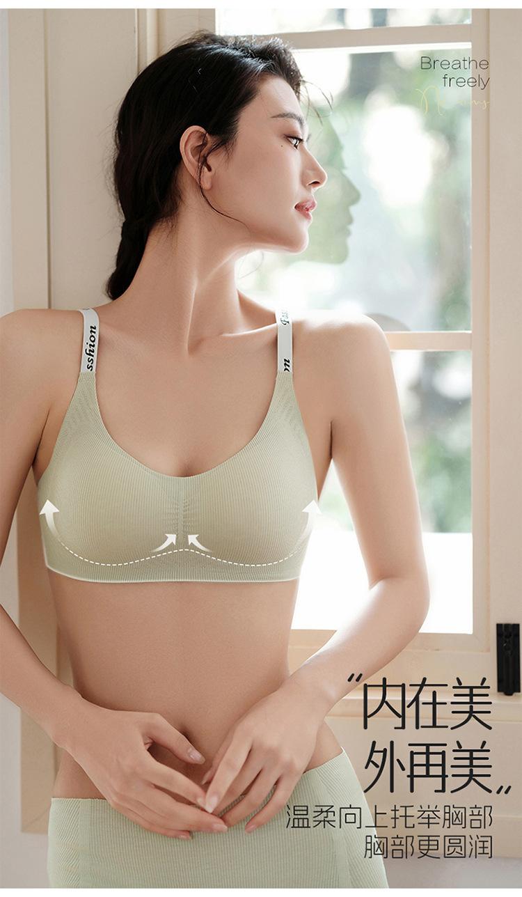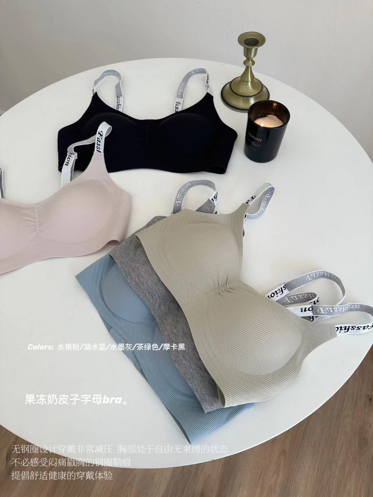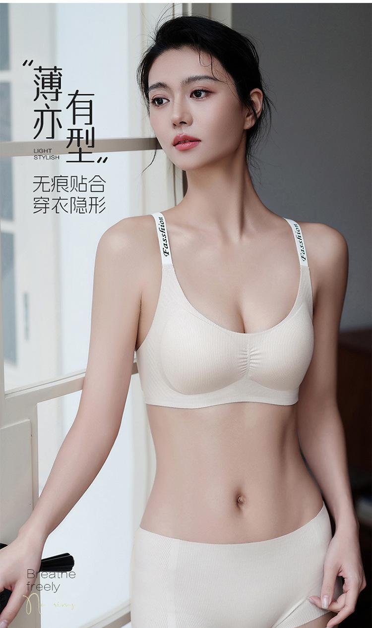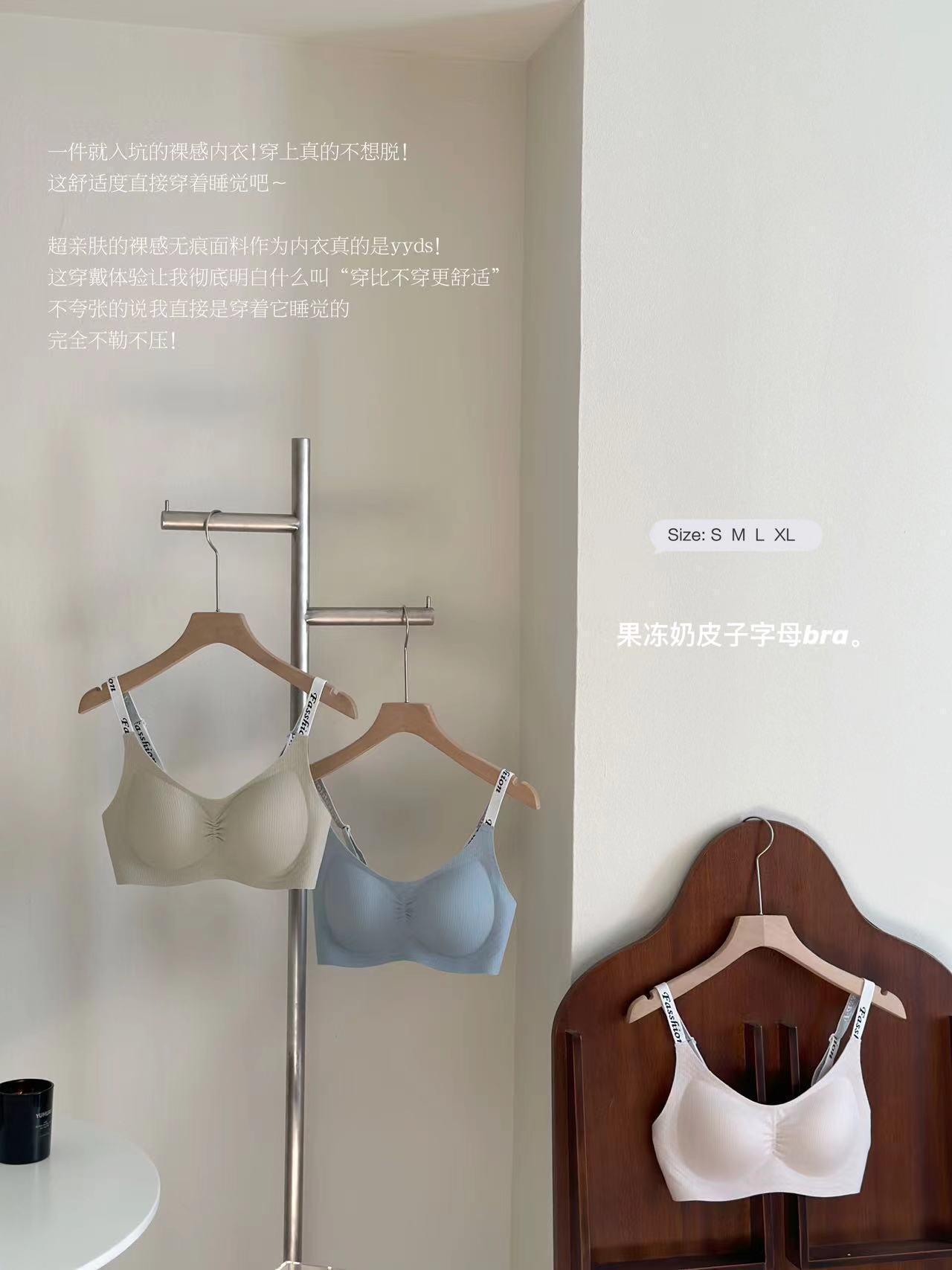 Ropa interior de letra de cuero de leche de gelatina para mujer, sin costuras, inalámbrica, cómoda, color nude, sujetador de copa fija cómodo