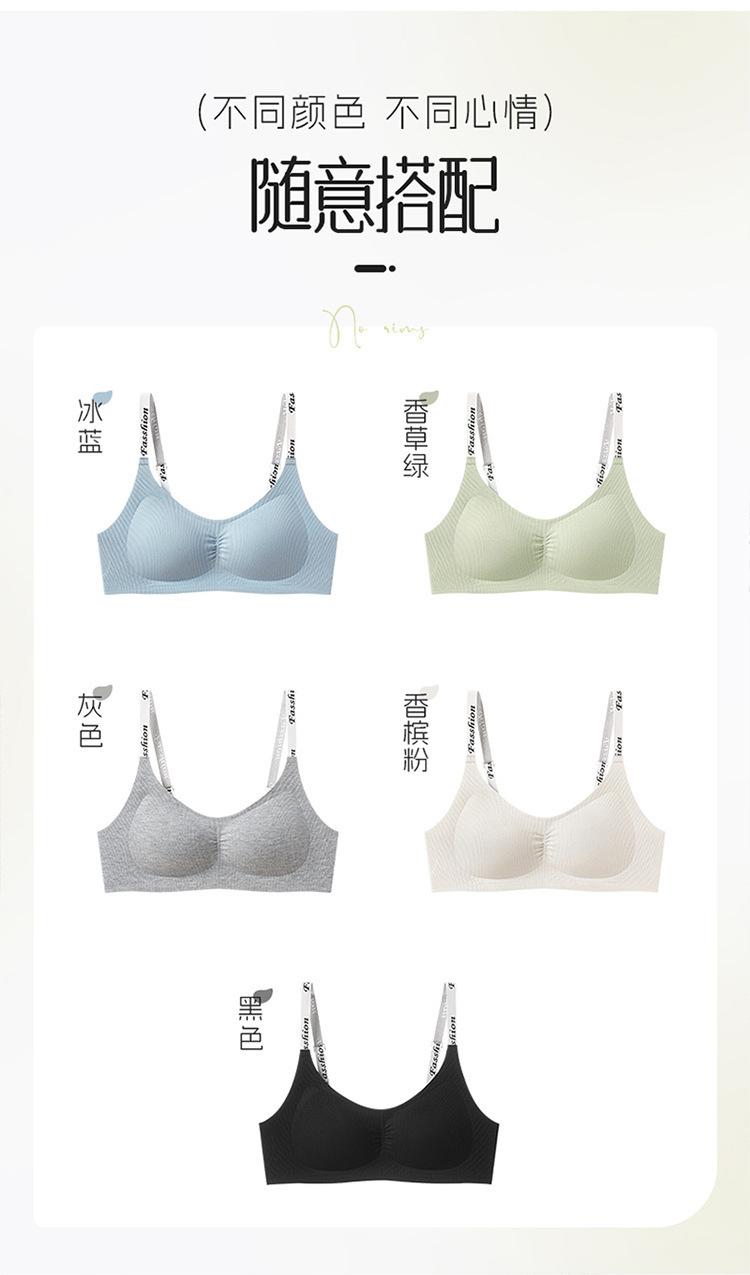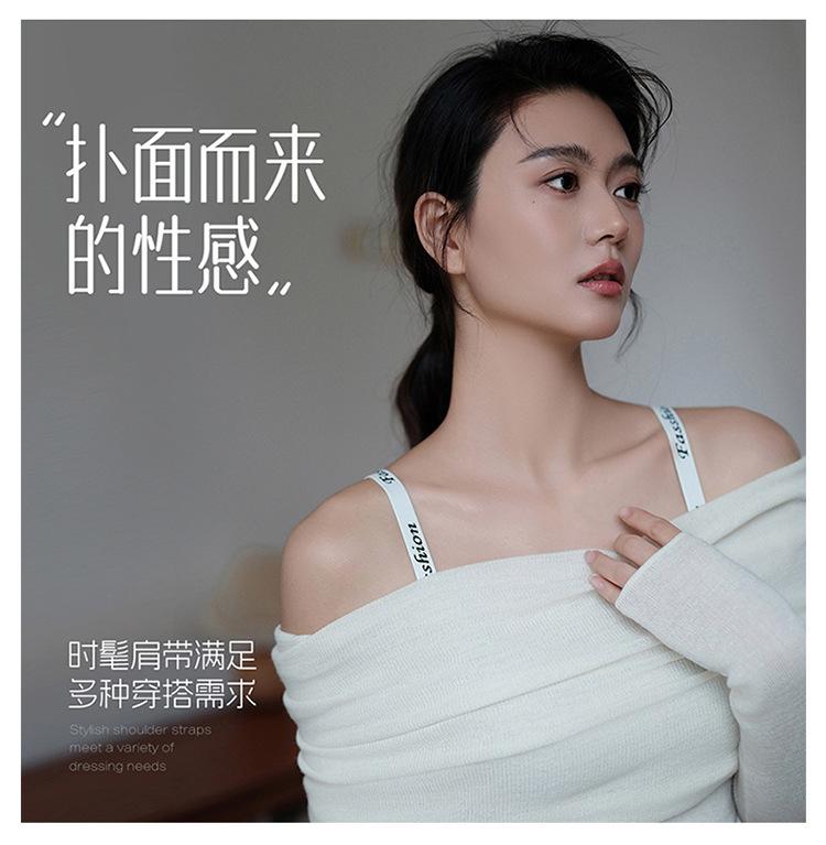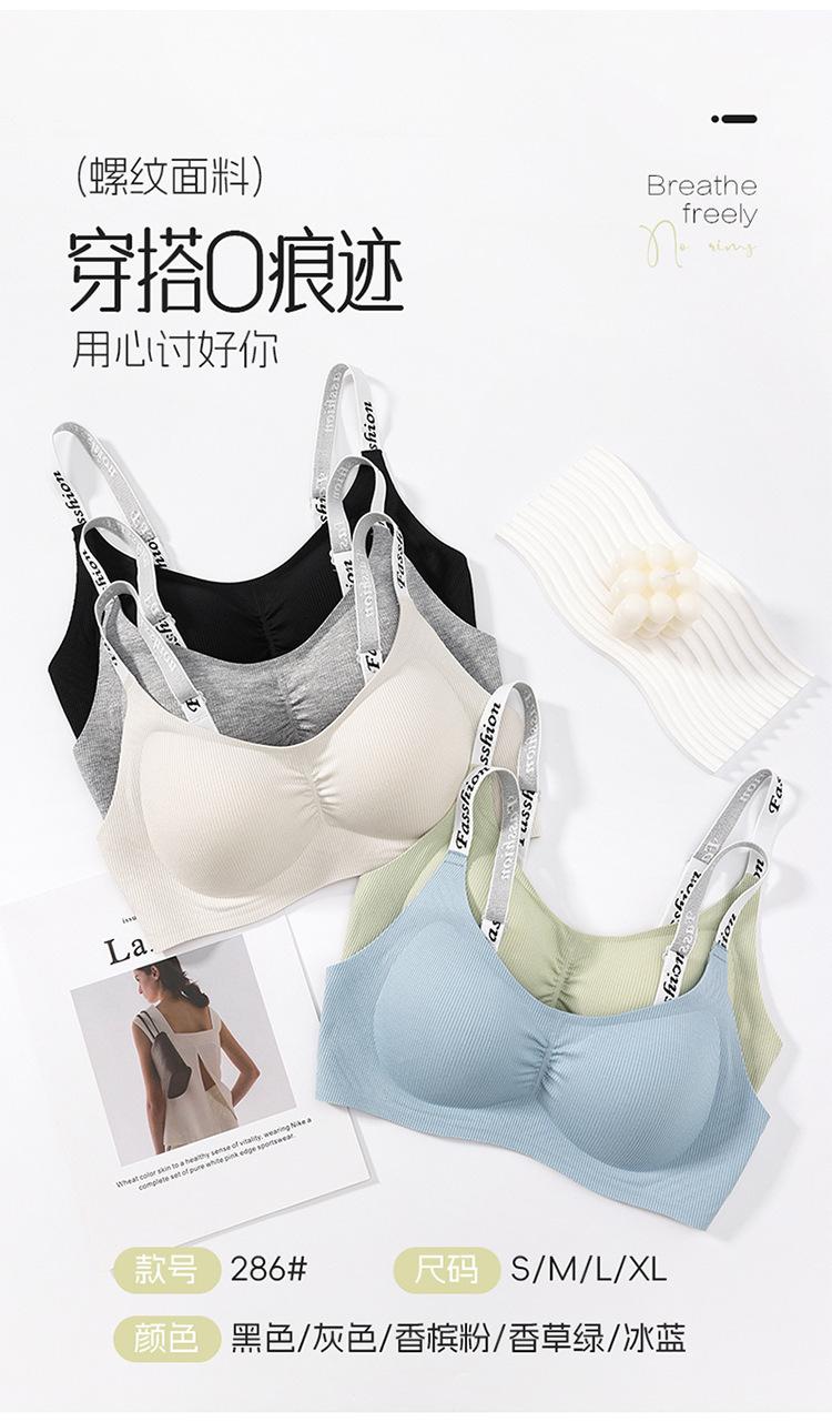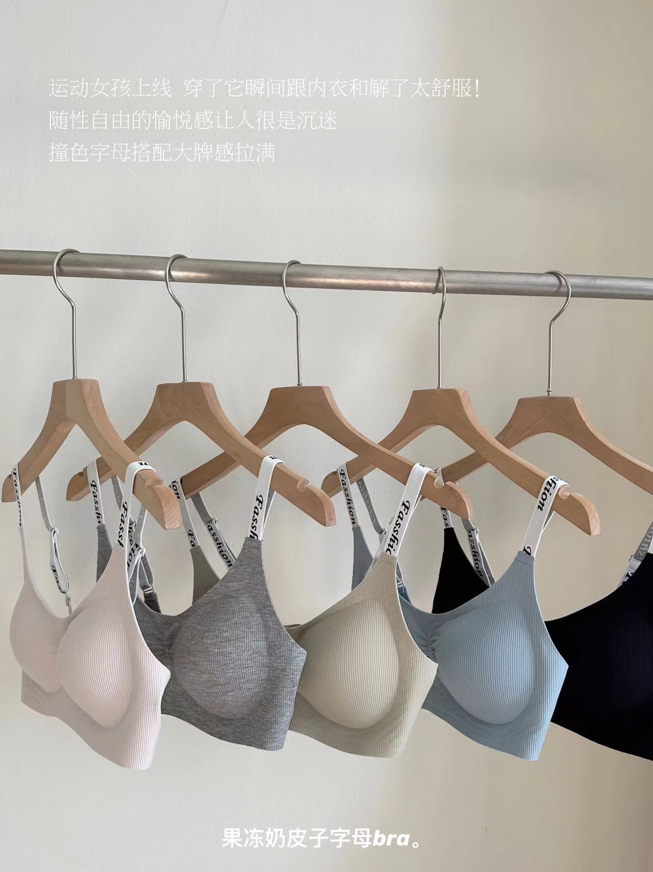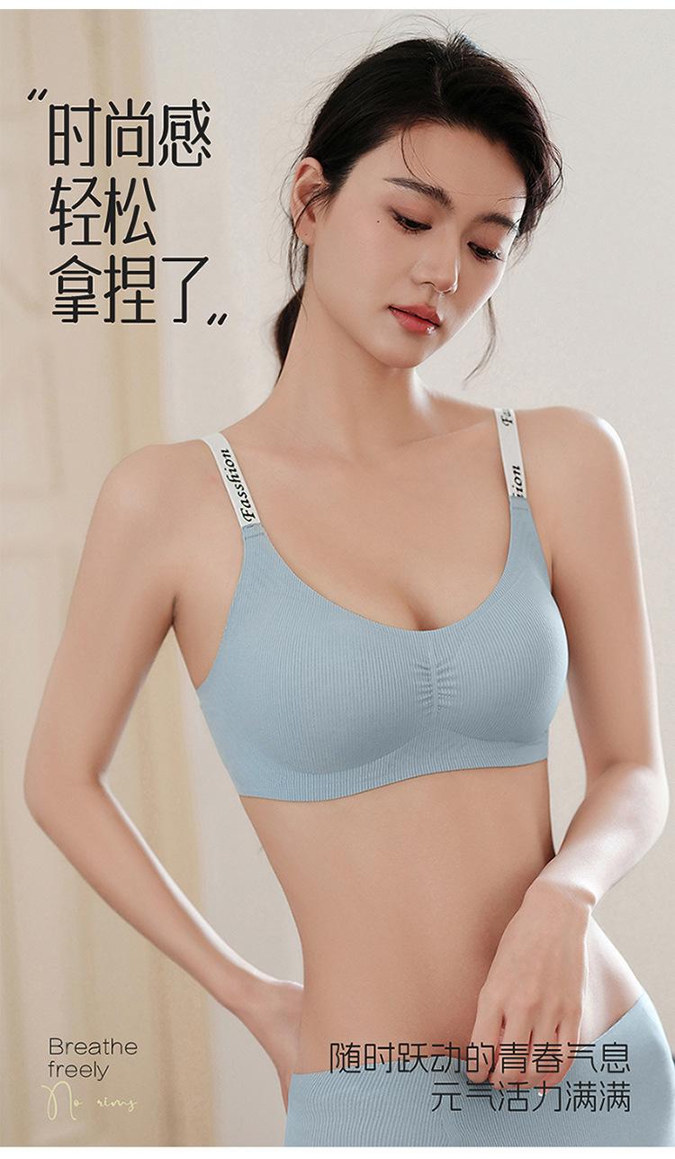 Ropa interior de letra de cuero de leche de gelatina para mujer, sin costuras, inalámbrica, cómoda, color nude, sujetador de copa fija cómodo