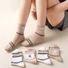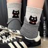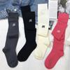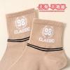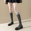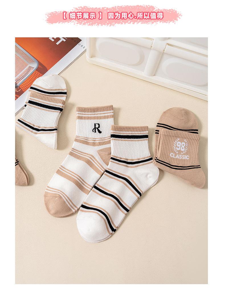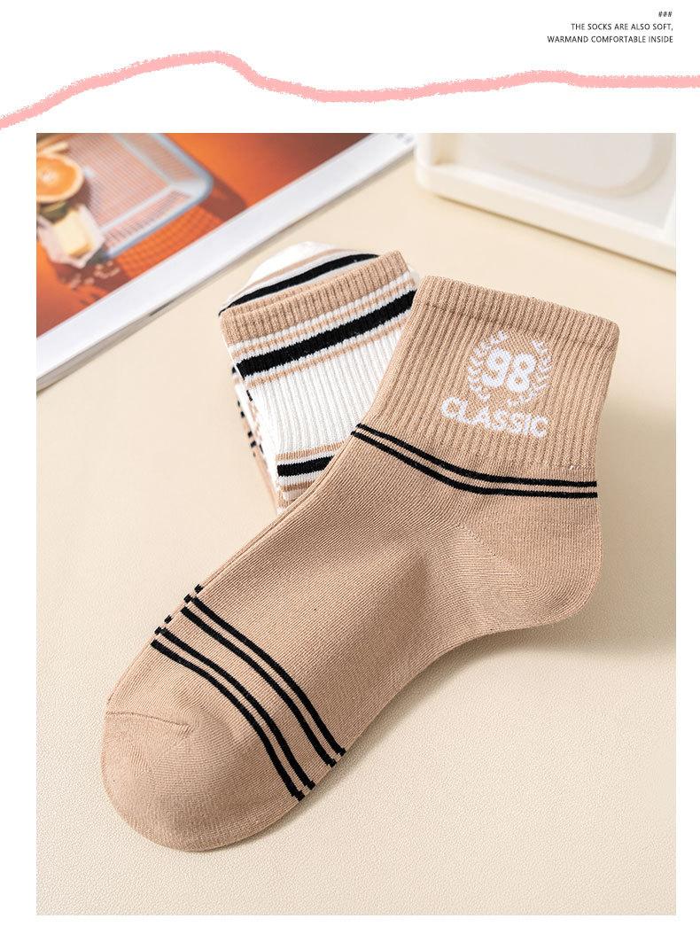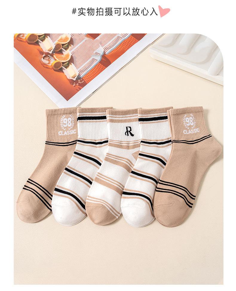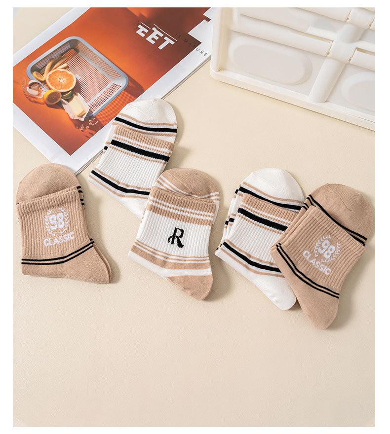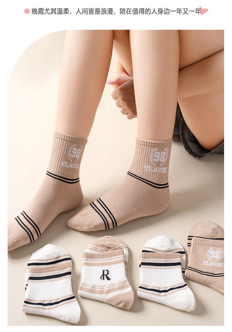 Calcetines de mujer otoño e invierno color caqui simple rayas estilo preppy calcetines de media pantorrilla para mujer letras Jacquard calcetines de algodón puro para mujer Venta al por mayor