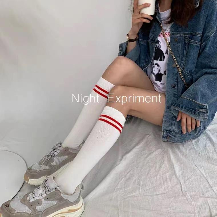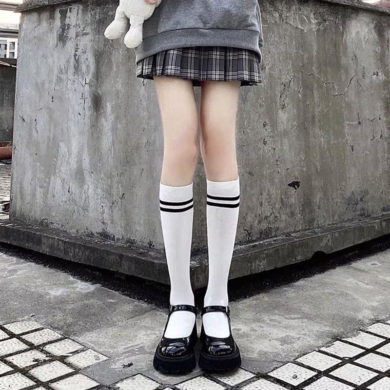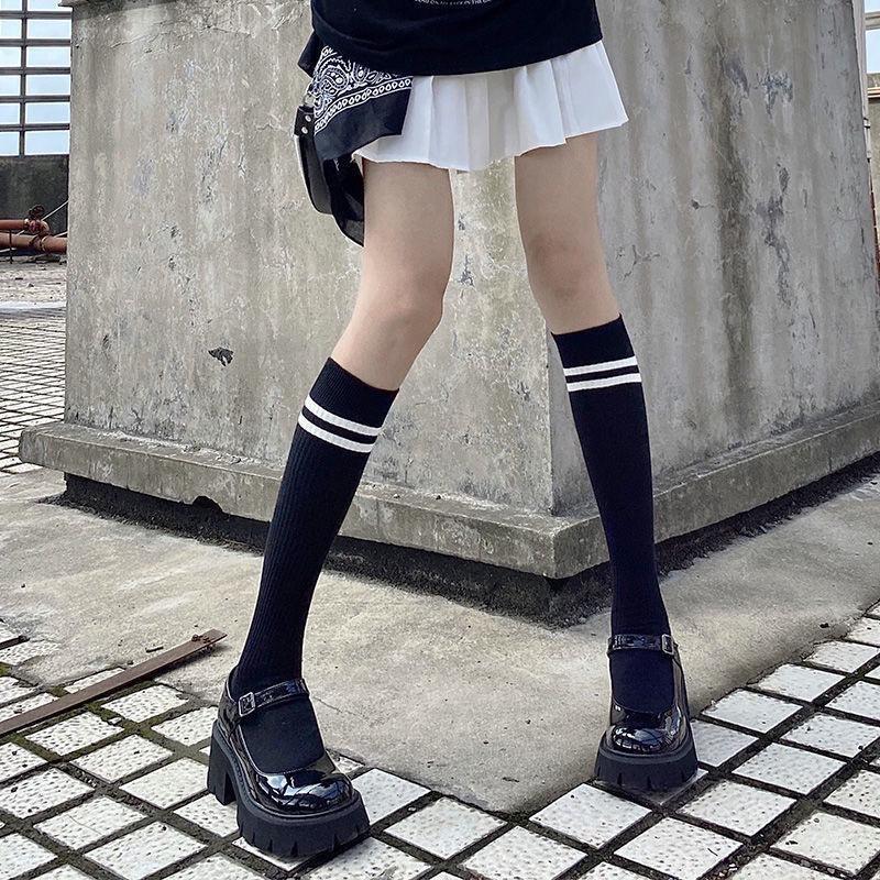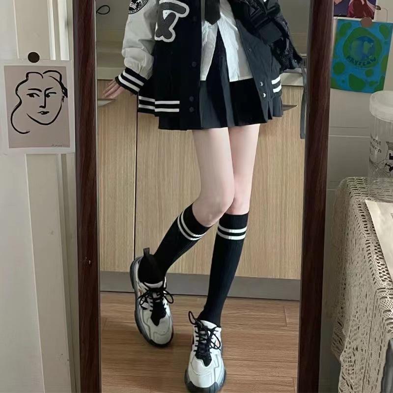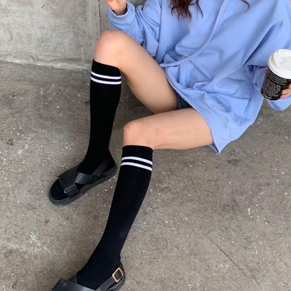 Calcetines de media pantorrilla de primavera y verano, calcetines hasta la rodilla a rayas, calcetines largos hasta la rodilla, para mujer, estilo coreano ins para mujer, largos, estilo universitario japonés, deportivos