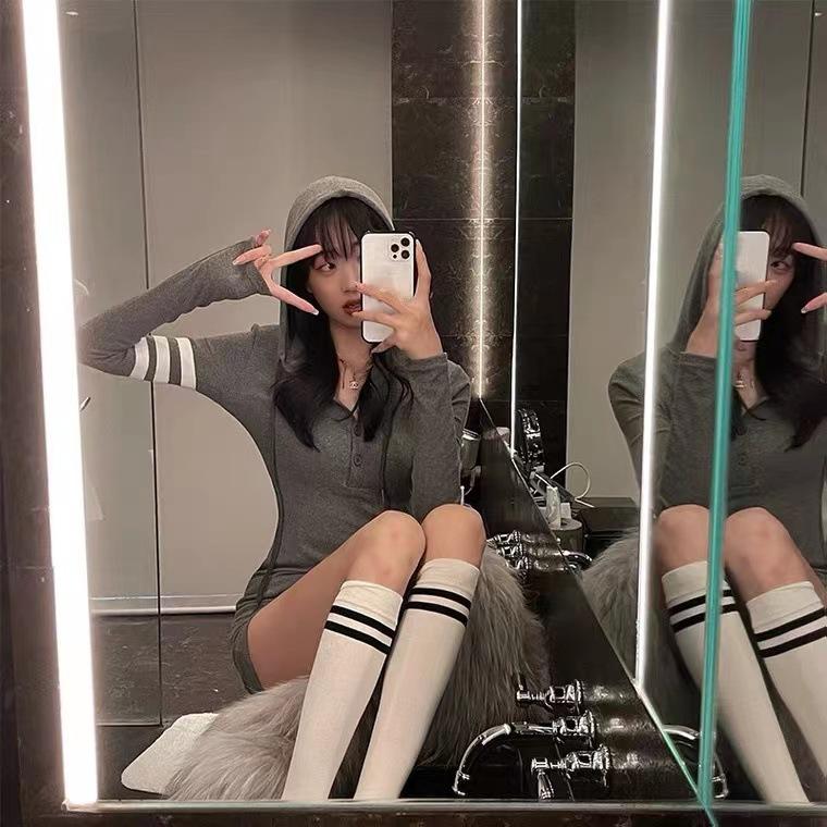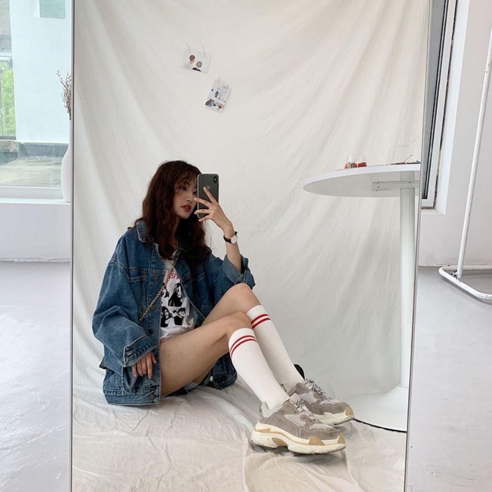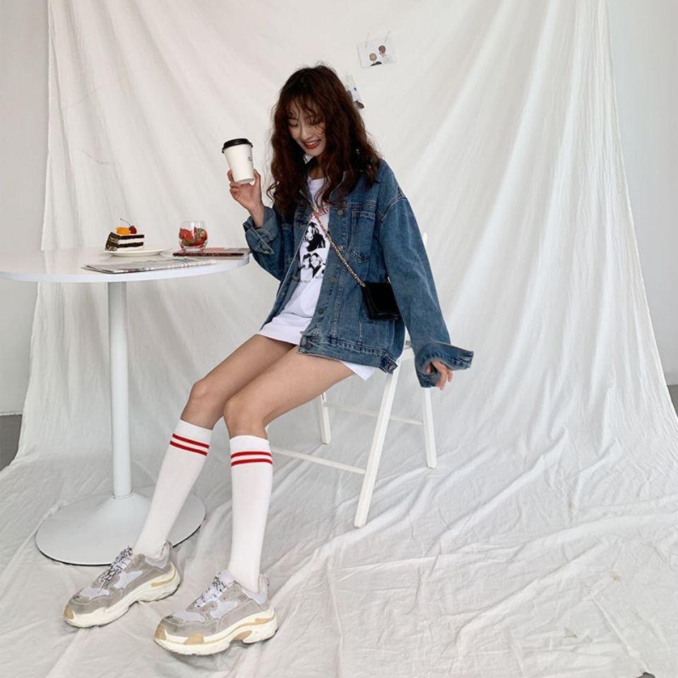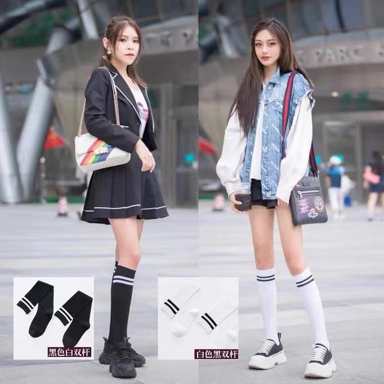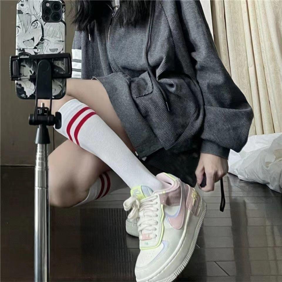 Calcetines de media pantorrilla de primavera y verano, calcetines hasta la rodilla a rayas, calcetines largos hasta la rodilla, para mujer, estilo coreano ins para mujer, largos, estilo universitario japonés, deportivos