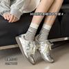 Calcetines de tubo medio con doble aguja para mujer, de algodón peinado a rayas, modernos calcetines urbanos para las cuatro estaciones, nuevos calcetines absorbentes del sudor, calcetines cortos de algodón transpirables para primavera y otoño.