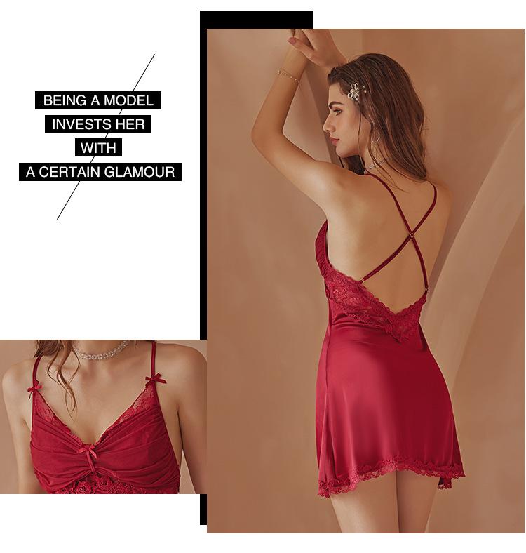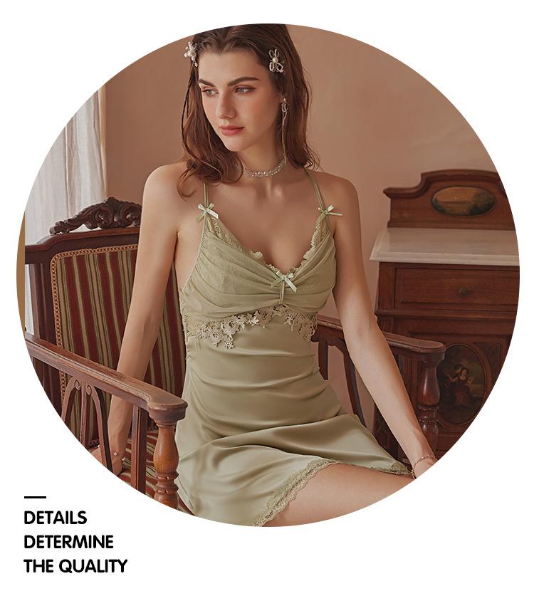 3096 Pijama Sexy para Mujer Primavera y Verano Deseo Puro Cruz Espalda Hermosa Camisón Entrada Francesa Lujo Estilo Hada Ropa de Exterior Ropa para el Hogar