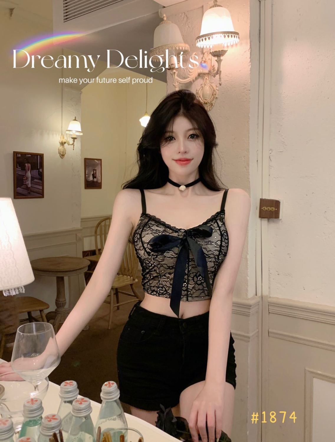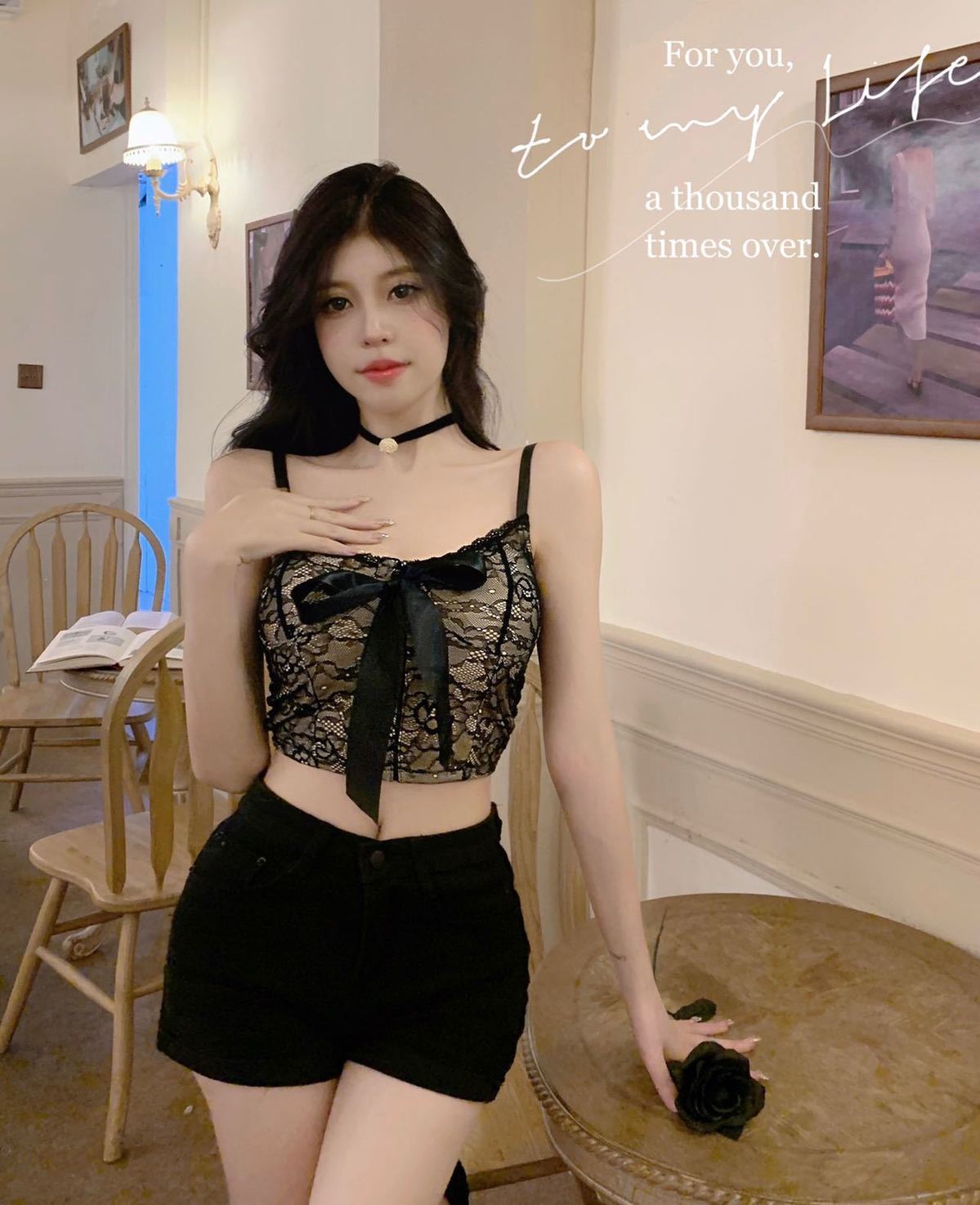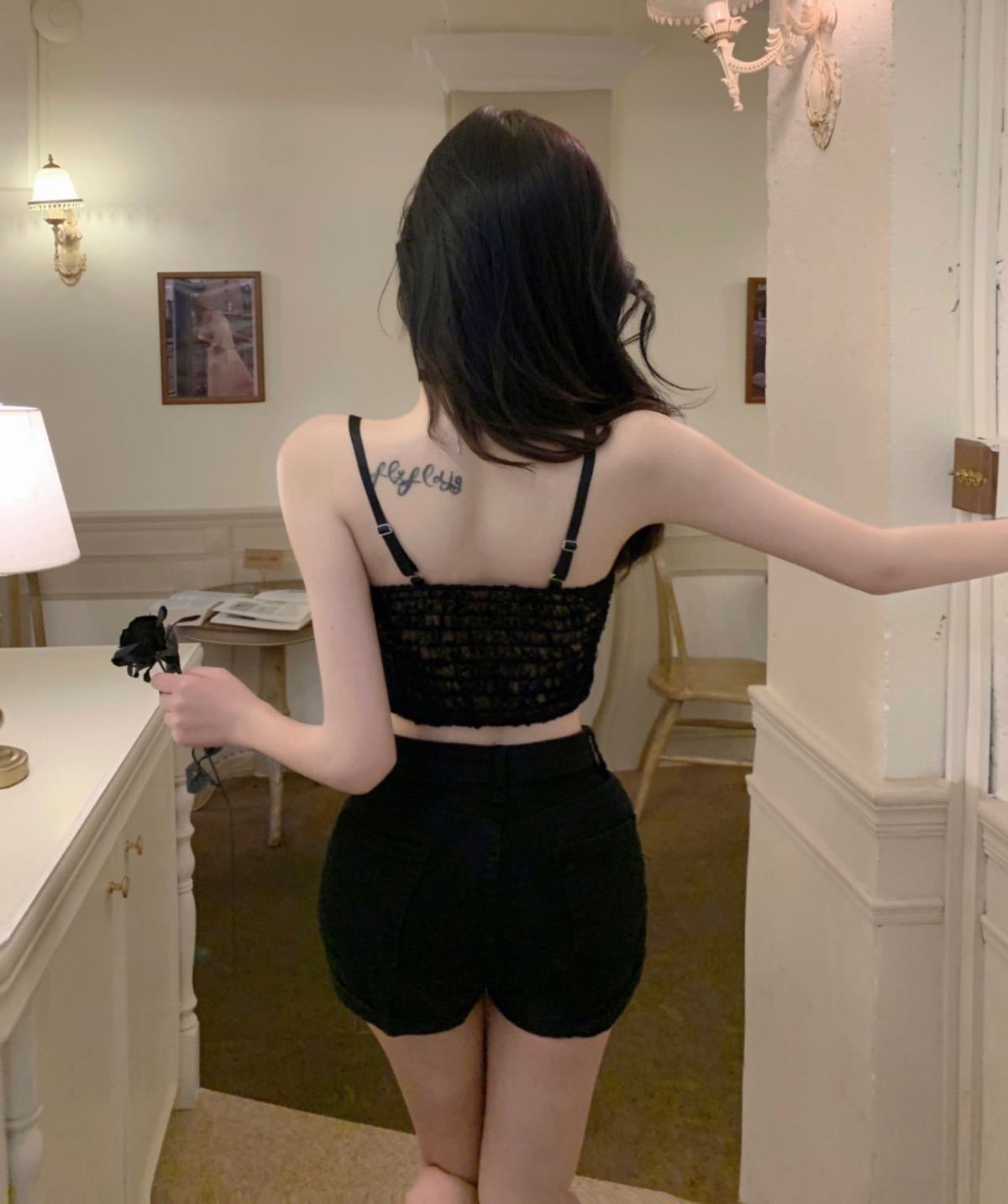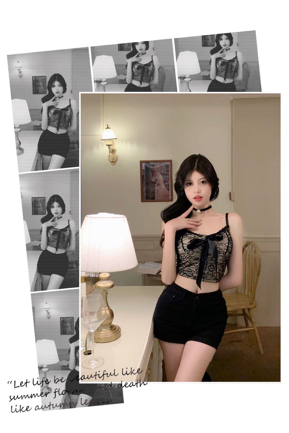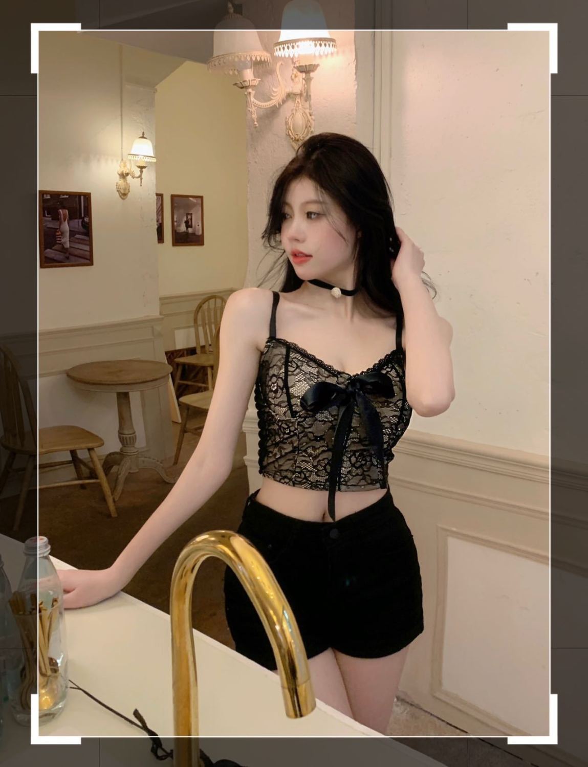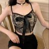 Camisola de encaje ajustada de estilo francés, ropa exterior de verano, parte inferior bonita, espalda cruzada, pecho, top corto sin mangas, ropa interior