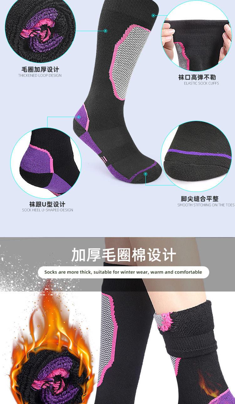 Calcetines de esquí para deportes al aire libre, de secado rápido, gruesos, para montañismo, con base de toalla, antideslizantes, de tubo largo, absorbentes del sudor, transpirables y cálidos.