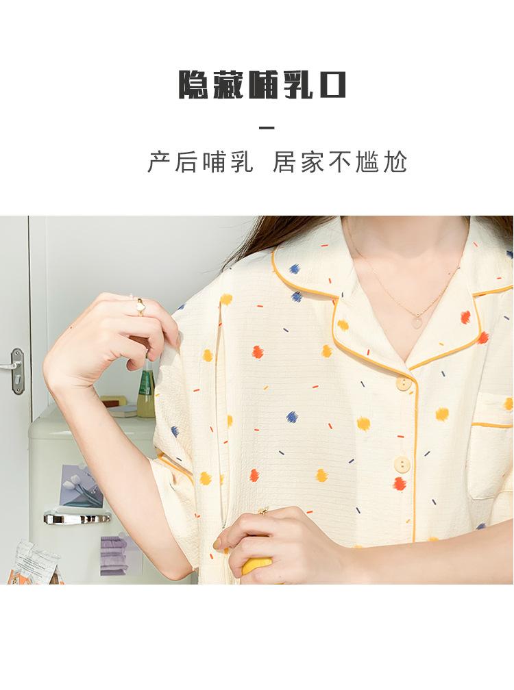 Pijama de algodón abullonado estampado para embarazadas, ropa de primavera y verano, de manga corta, para el posparto, el embarazo y la enfermería.