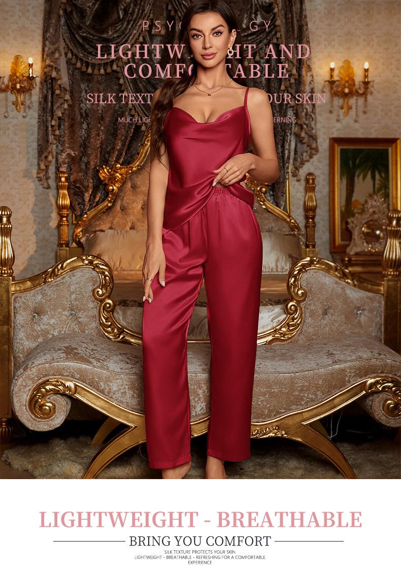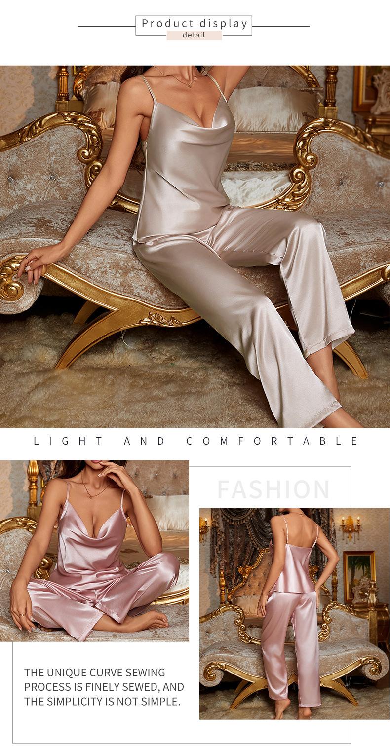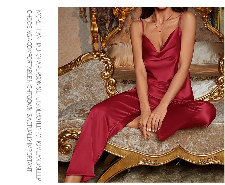 Pijamas de seda helada para mujer, estilo europeo y americano, transpirables, finos, para el hogar, ropa interior sexy de moda, camisón con tirantes, novedad de verano