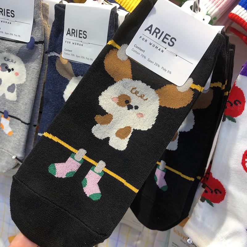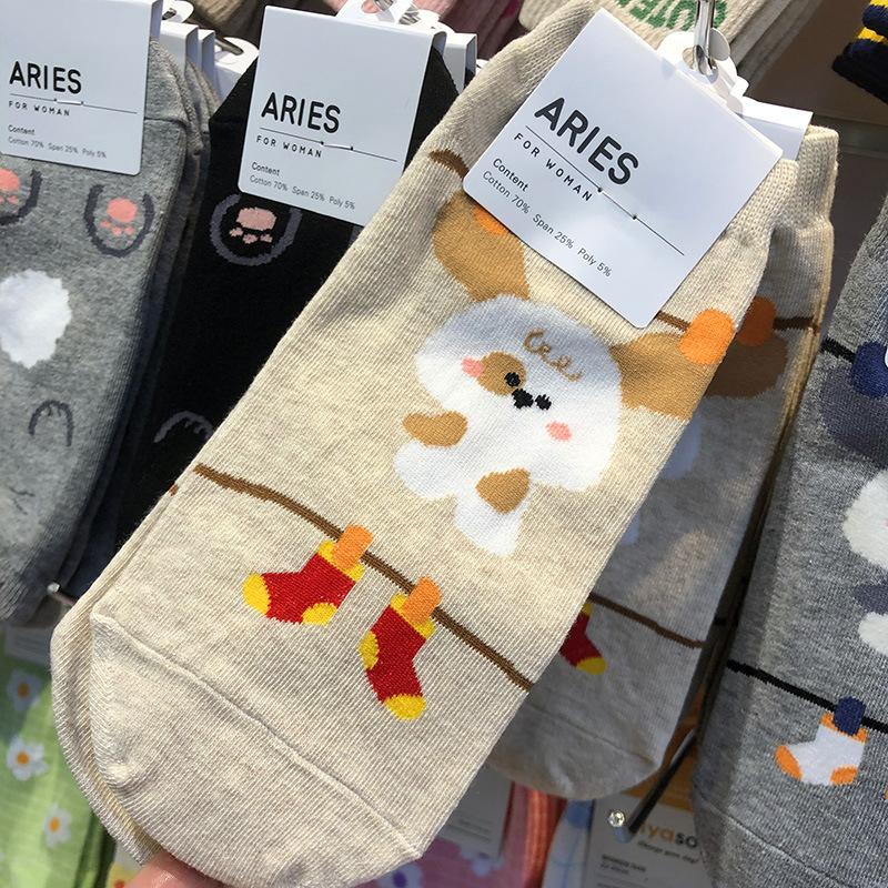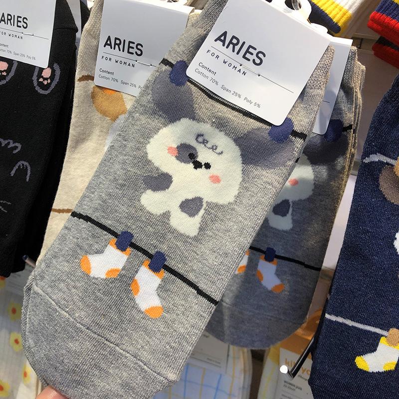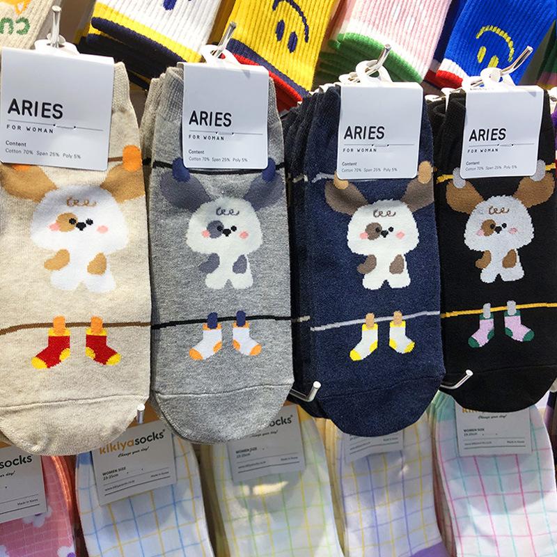 Calcetines importados de Corea del Sur ARIES, nuevos calcetines de primavera y verano para mujer, calcetines pequeños de dibujos animados japoneses, calcetines de cintura baja para mujer, calcetines de algodón