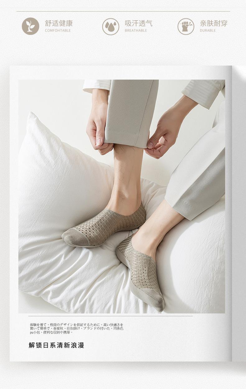 Talón de malla grande con costuras, suela de toalla profunda, invisible para hombre