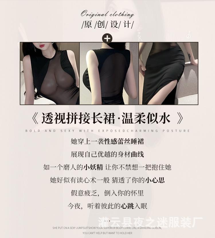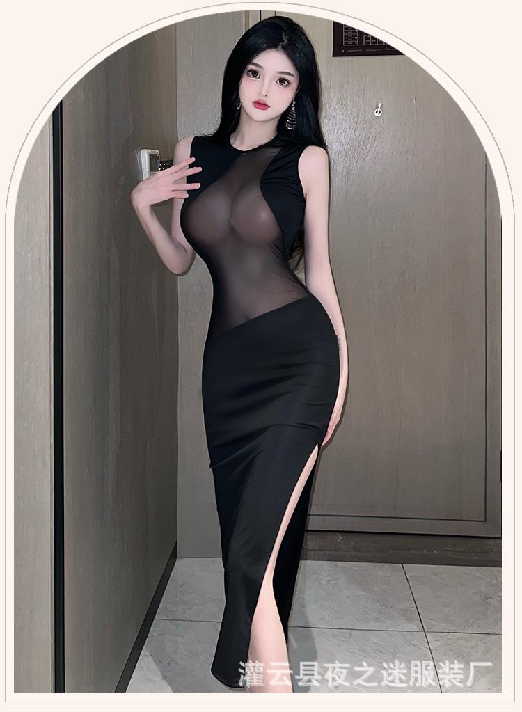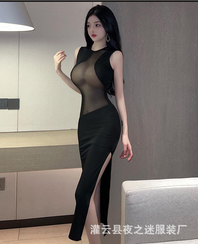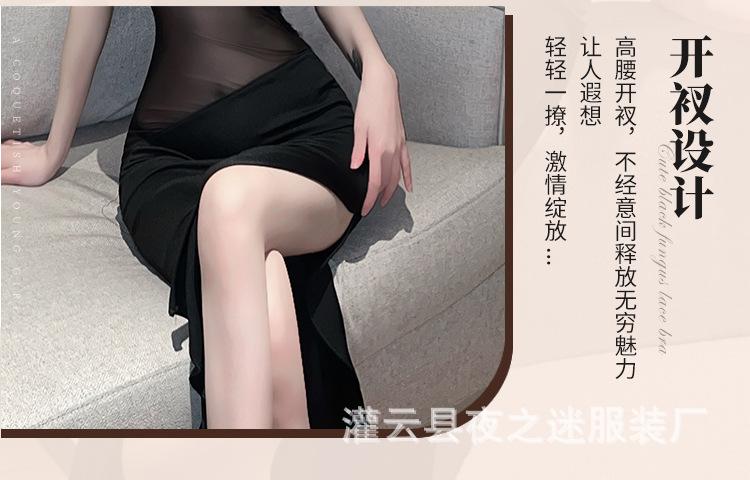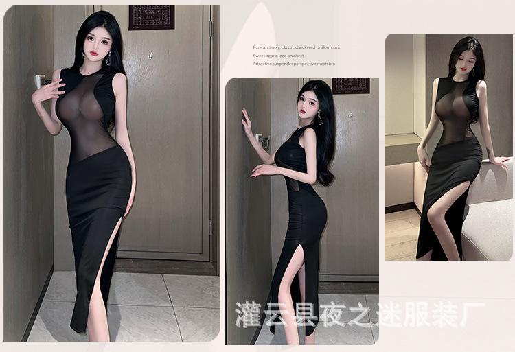 Ropa Interior Sexy Vestido Sexy de Perspectiva para Mujer Costuras de Malla Abertura en la Pierna Ajustado Adelgazante Tentación de Cabello 1228