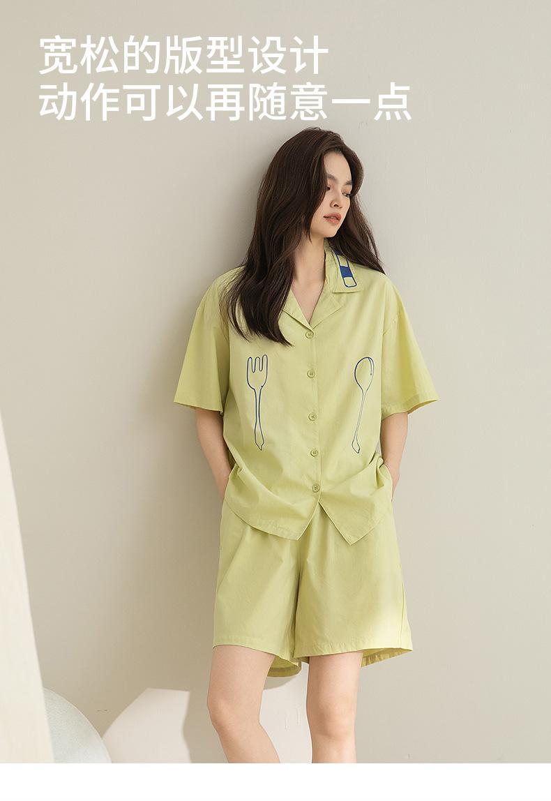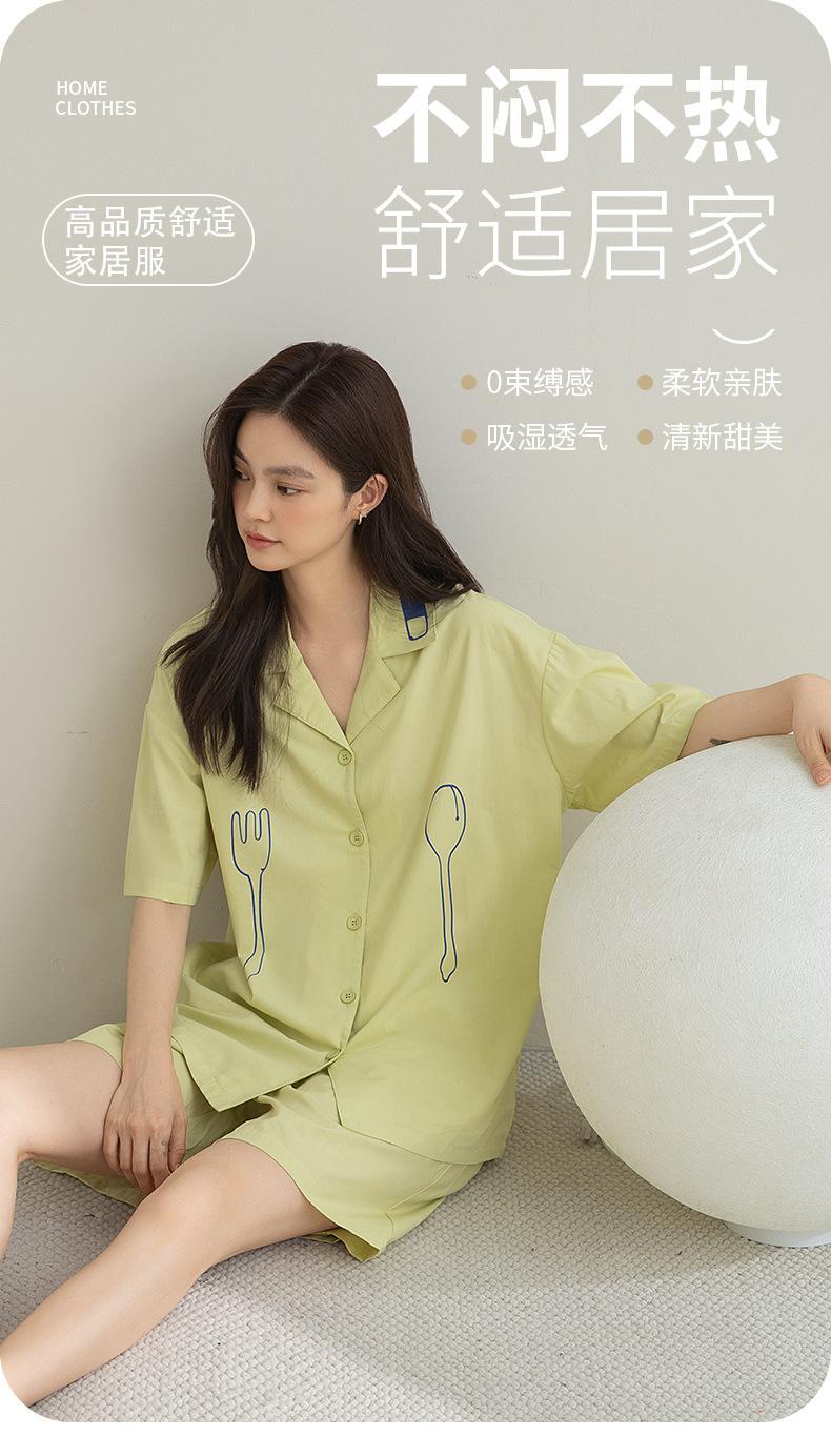 Ropa de casa modal suave y cómoda de primavera y verano, cárdigan con patrón de tenedor simple, traje de manga corta Lapp que se puede usar