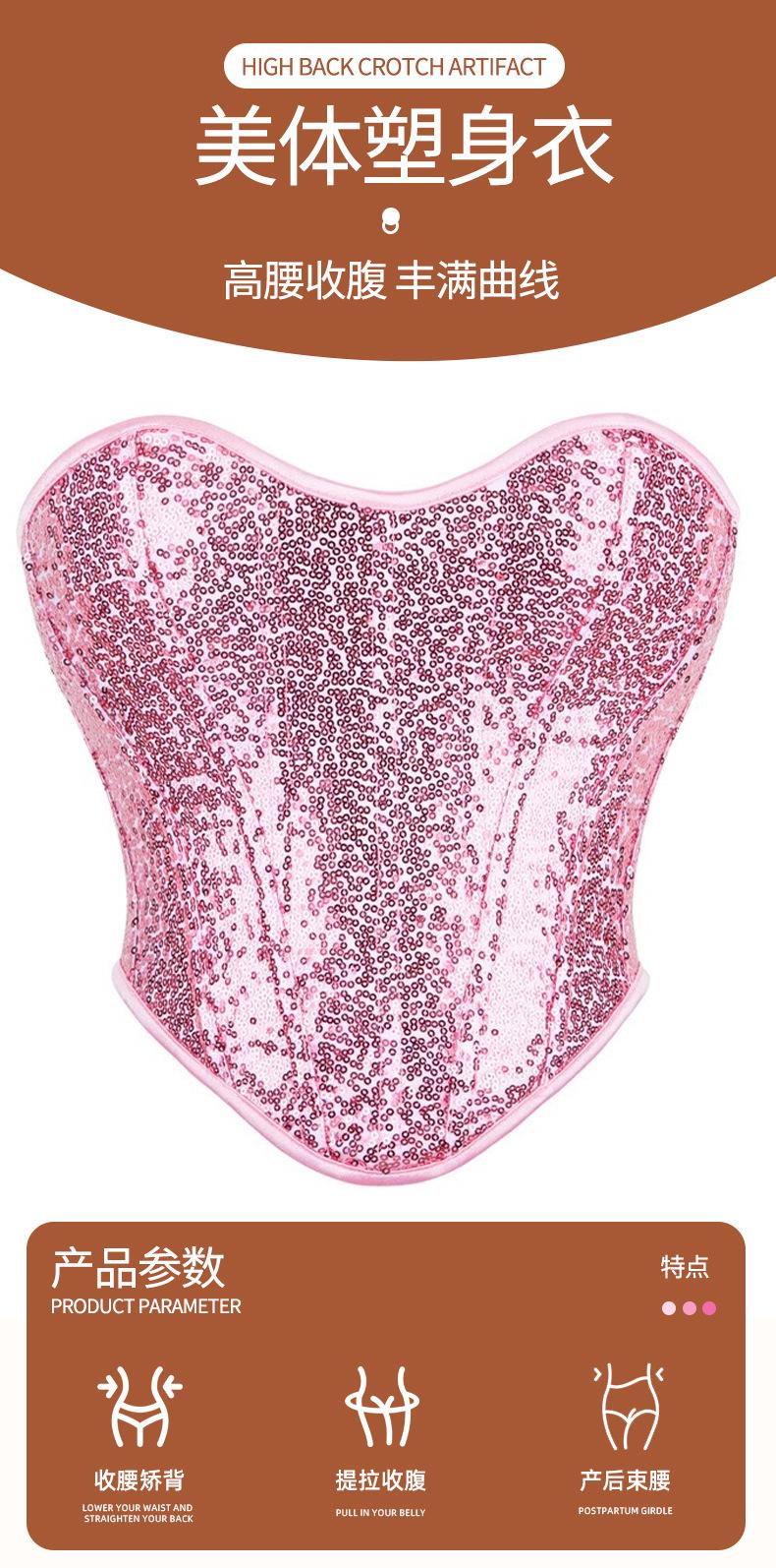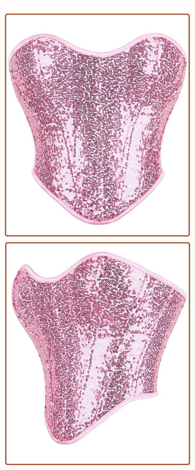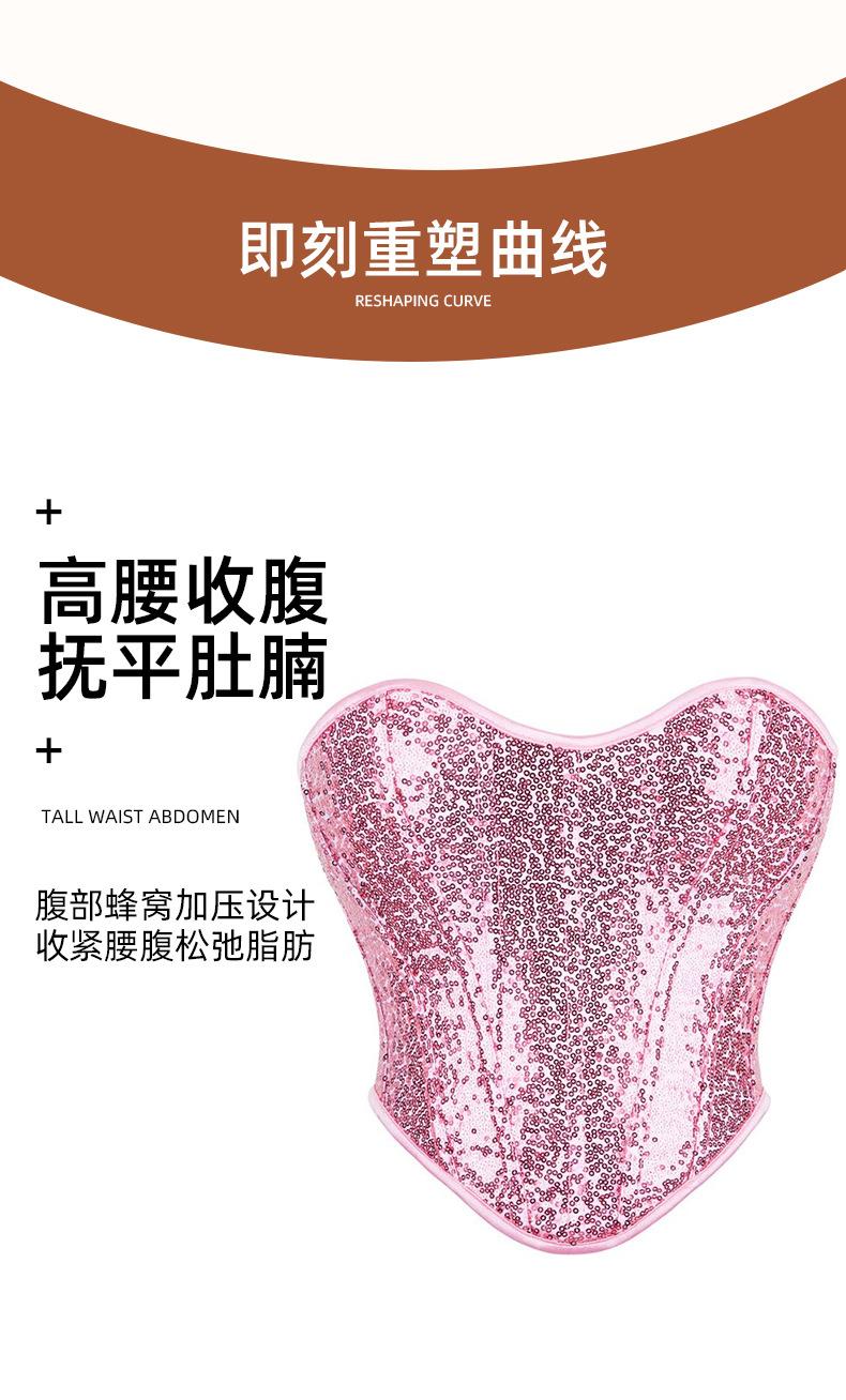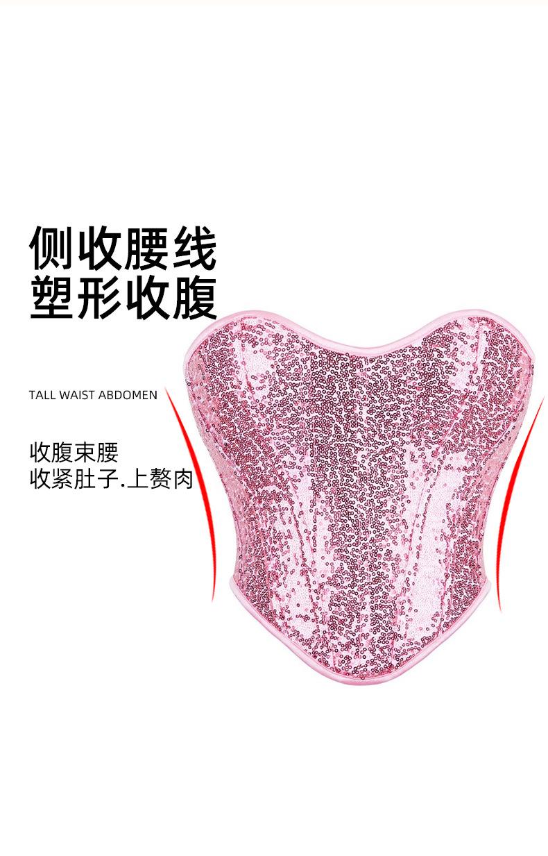 Serie Palace Rosa Lentejuelas Círculo Pequeño Top Strapless Moldeador de Cuerpo para Mujer Strapless Pecho Push-up Ropa Moldeadora de Cuerpo Palacio