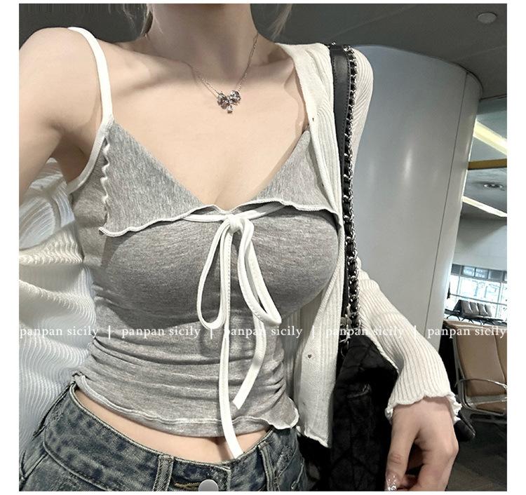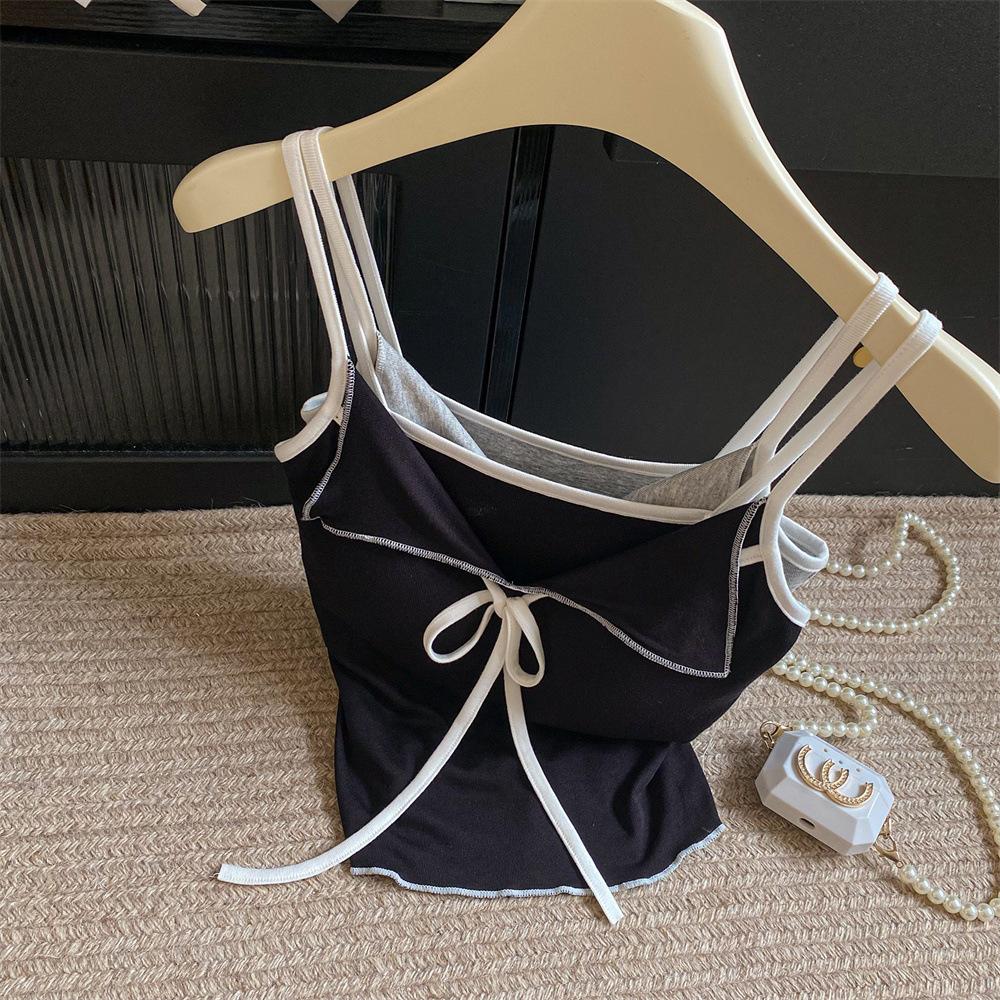 Nuevo estilo de correa de lazo Spice Girl, puro, sexy, color de contraste, pequeño cabestrillo con cómodo y transpirable hermoso chaleco trasero con almohadilla para el pecho