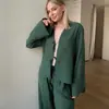Conjunto de Dos Piezas de Pijama Cardigan Sexy Verde Primavera Europeo y Americano 2026 Suelto Casual Manga Larga Pantalón Largo Ropa de Casa para Mujer