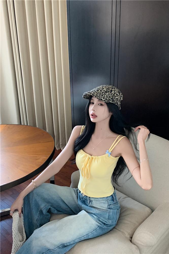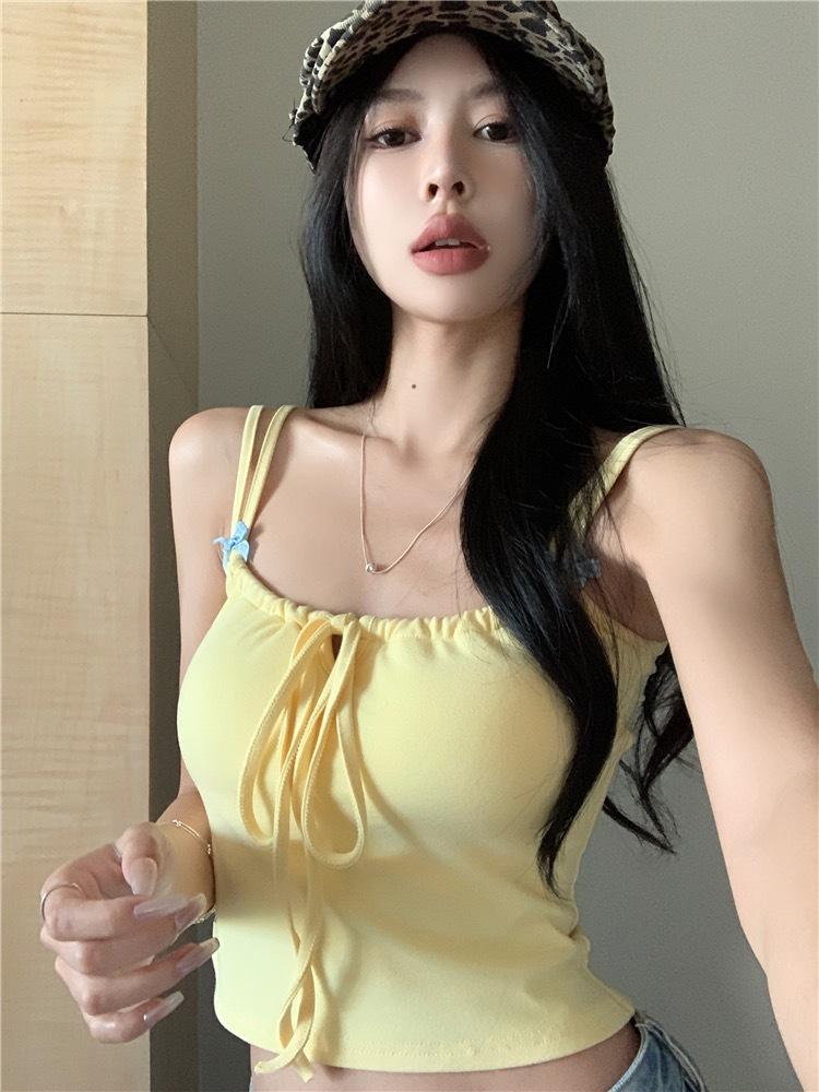 Camisola sexy amarilla de Pure Desire para mujer, de verano, con almohadilla para el pecho, corta, para chica sexy, a la moda