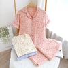 Pijama de verano de manga corta para mujer, con solapa fina, de algodón crepé, holgado, cómodo y transpirable, para el hogar