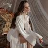 Dz Guiruo Deseo Puro Pijama Sexy Cárdigan Caliente Tentación Bata Larga con Cordones Ropa para el Hogar Traje de Mujer 4378