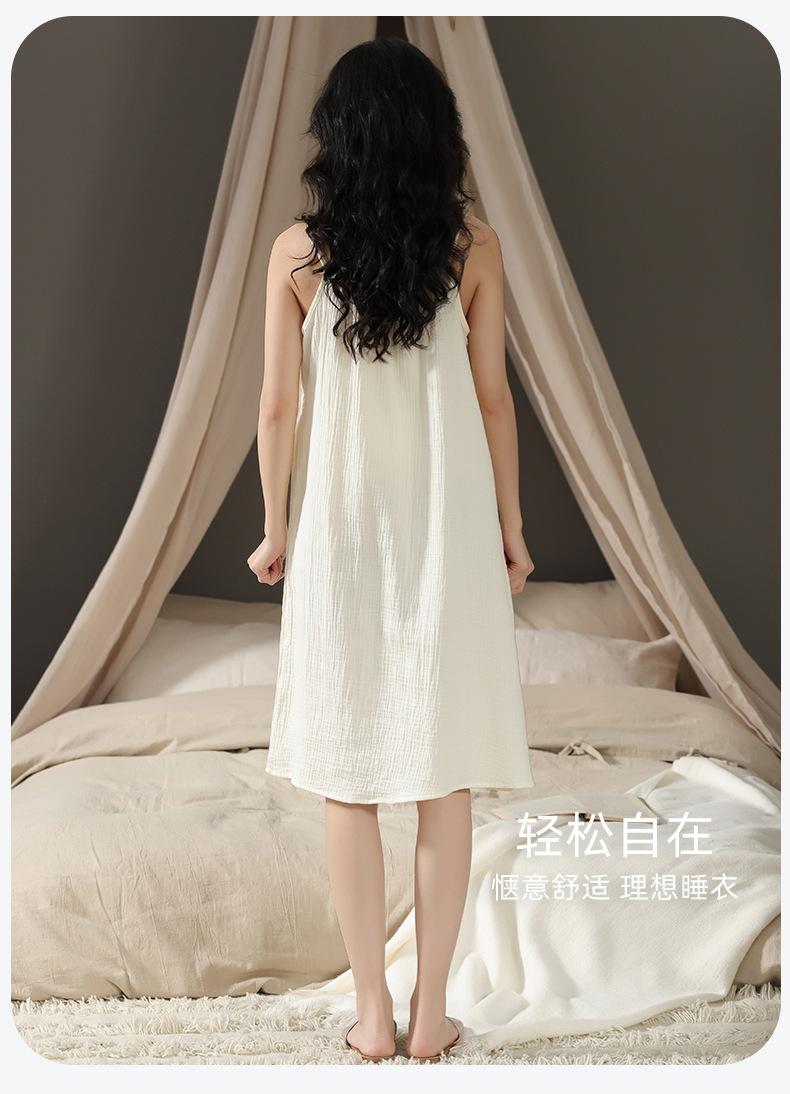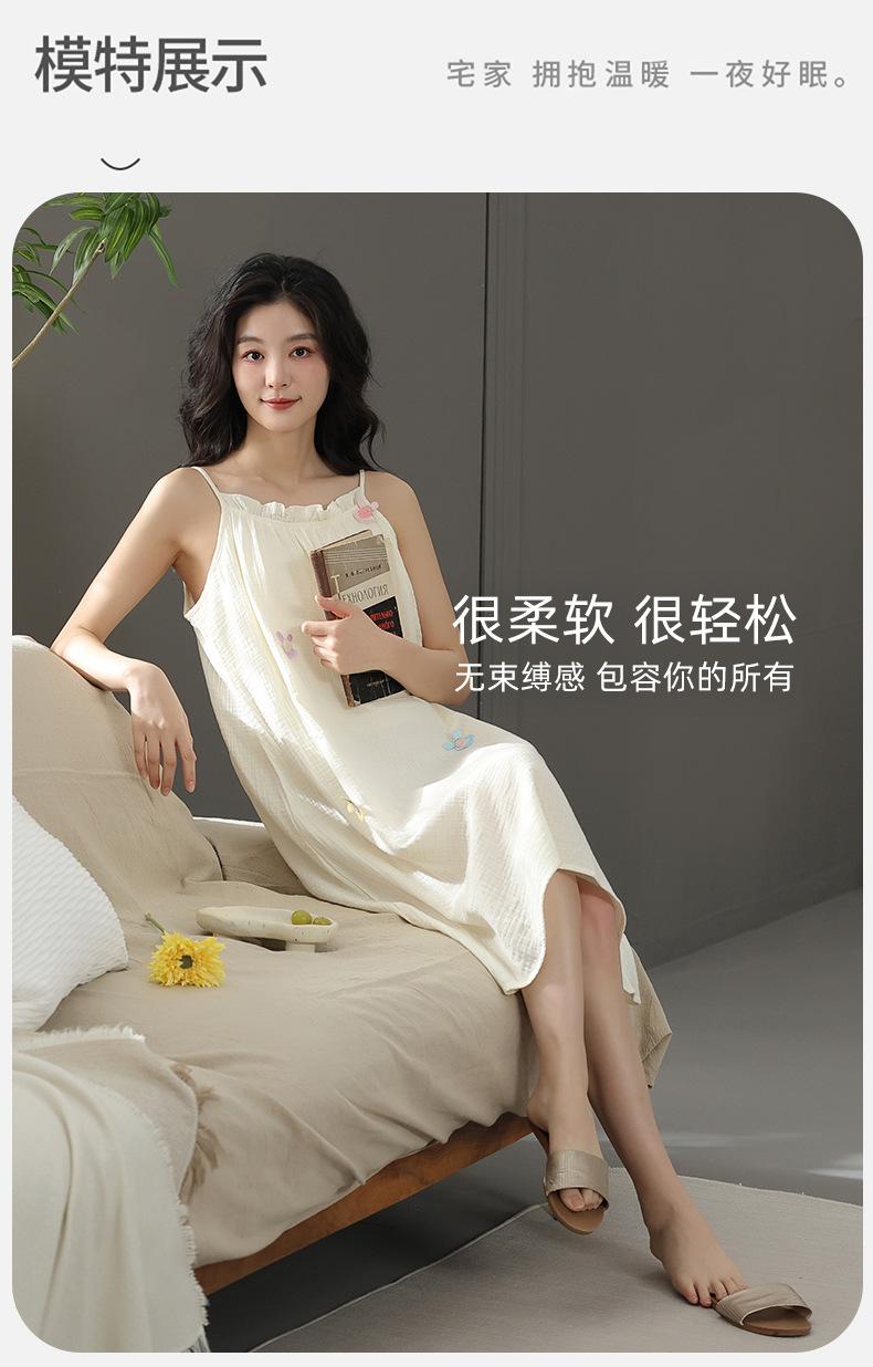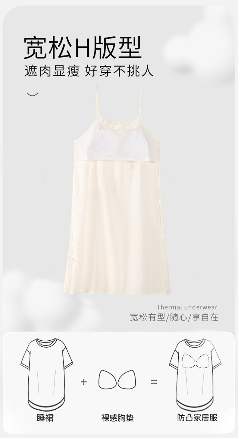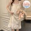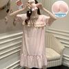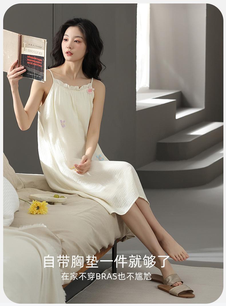 Camisón de Verano Nuevo de Algodón Puro, Estilo Dulce y Lindo para Mujer, Falda a Media Pierna con Almohadillas para el Busto, Ropa para el Hogar, Vestido de Pijama que se Puede Usar Afuera