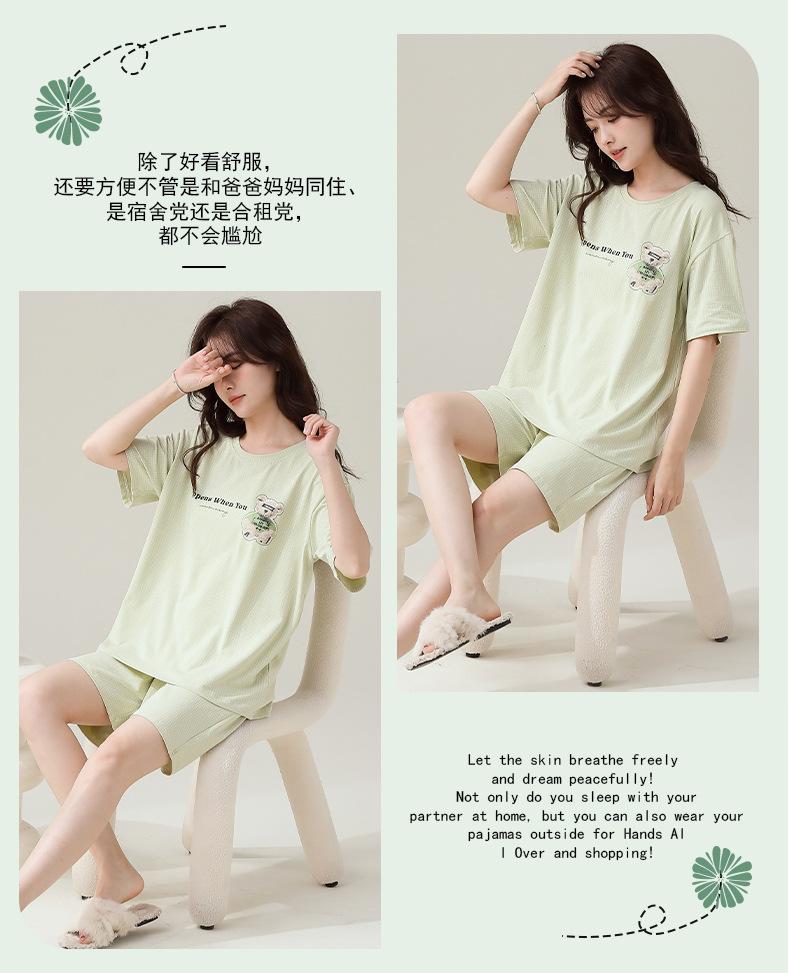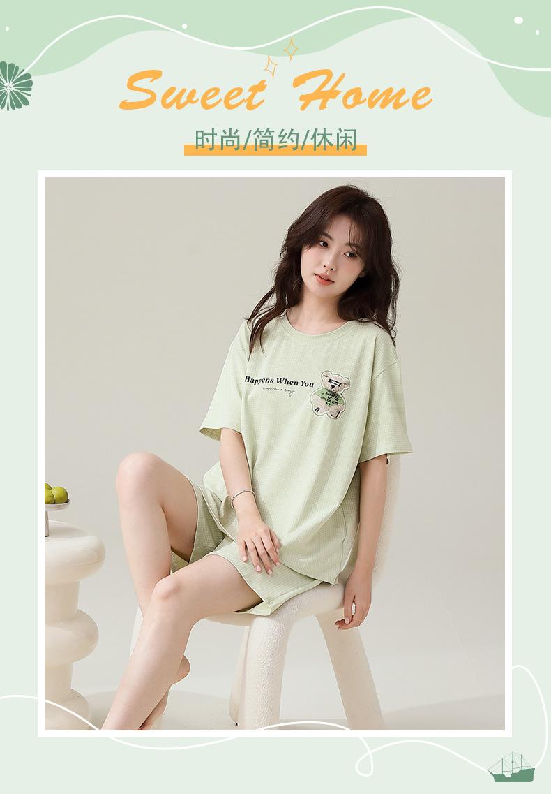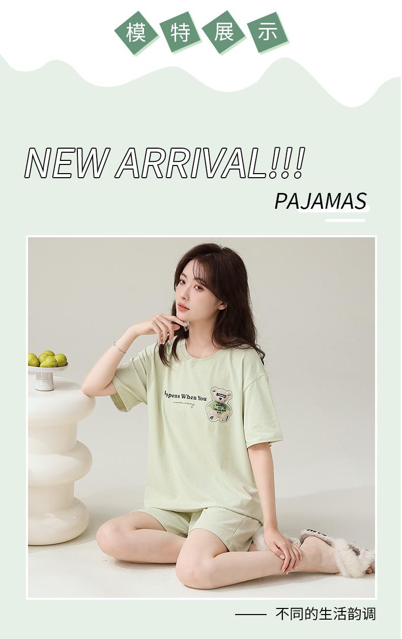 Pijama de algodón de manga corta, traje fino para mujer, ropa de verano para el hogar, pantalones cortos de algodón de verano, jersey de algodón fresco