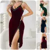 Bata de Noche de Terciopelo con Tirantes para Mujer Otoño e Invierno con Ribete de Encaje y Abertura Alta, Ropa de Dormir Sexy, Estilo de Lujo Ligero, Se Puede Usar Afuera como Ropa de Casa 341