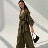 2024 Europeo y Americano Nuevo Suelto Cómodo Suave Tejido Manga Larga Pantalones Pijama de Verano Ropa de Casa Transfronteriza para Mujer Venta al por Mayor