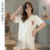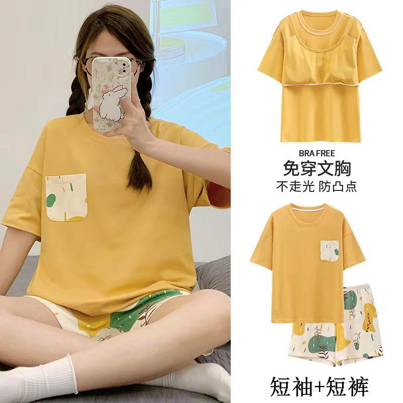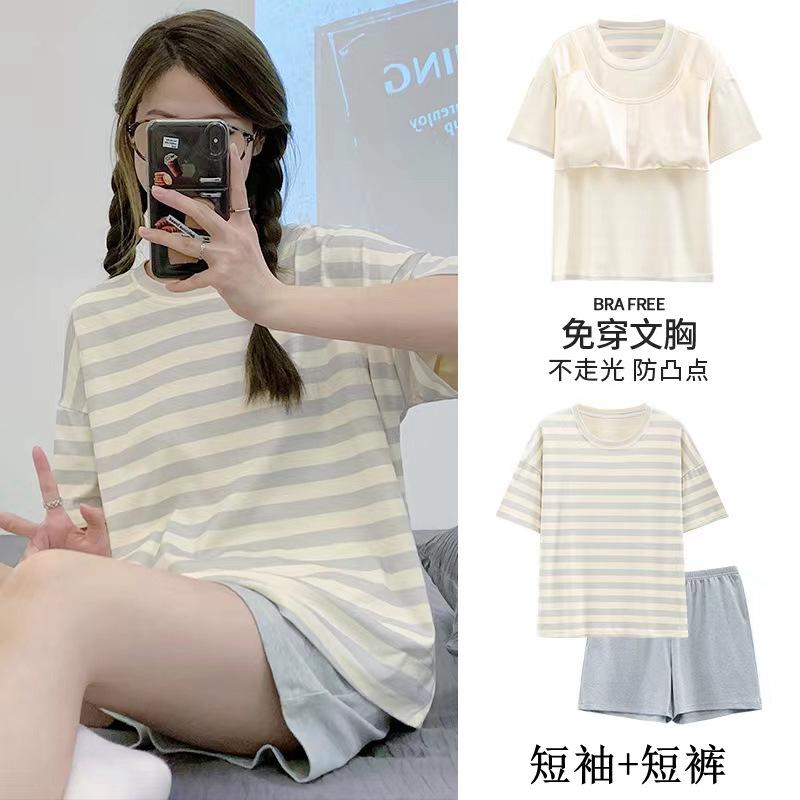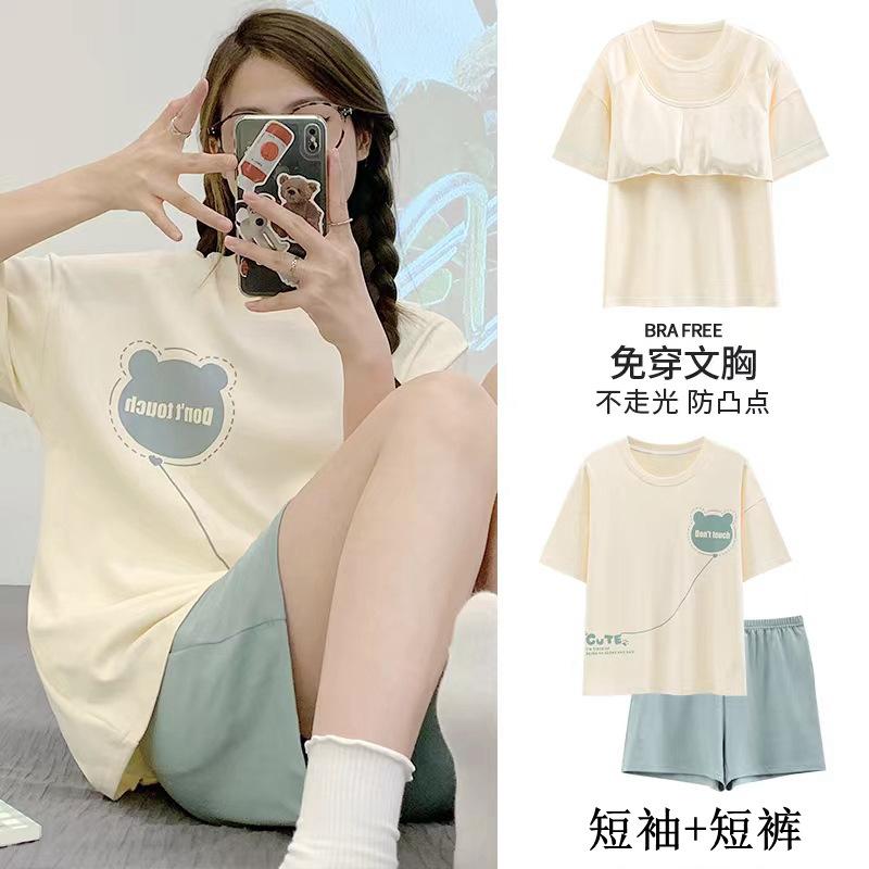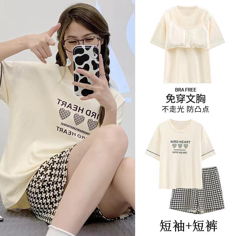 Pijama de mujer con almohadilla para el pecho para verano de 2024. Nuevo pantalón corto de una pieza de manga corta para uso exterior. Estilo coreano. Bonito traje de mujer.
