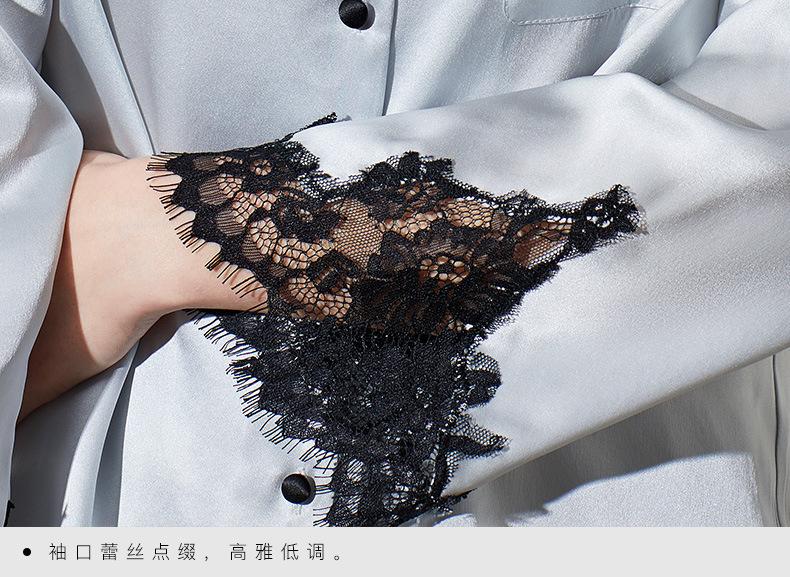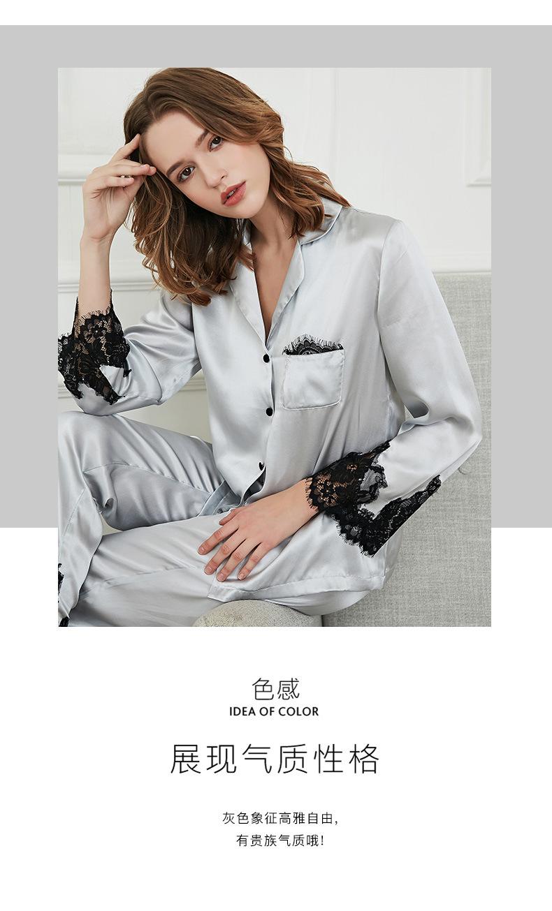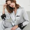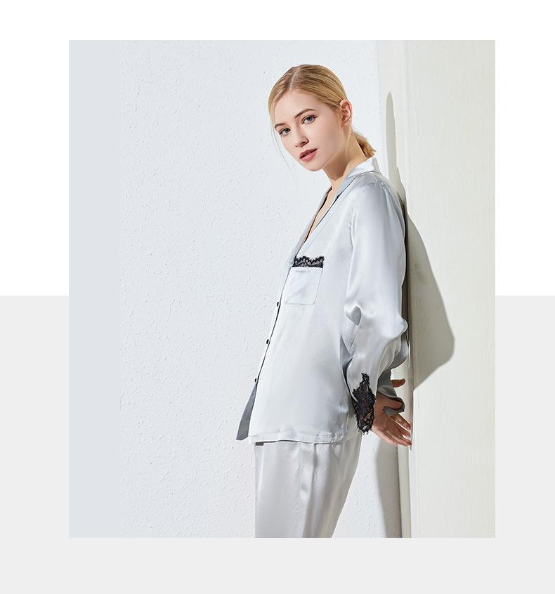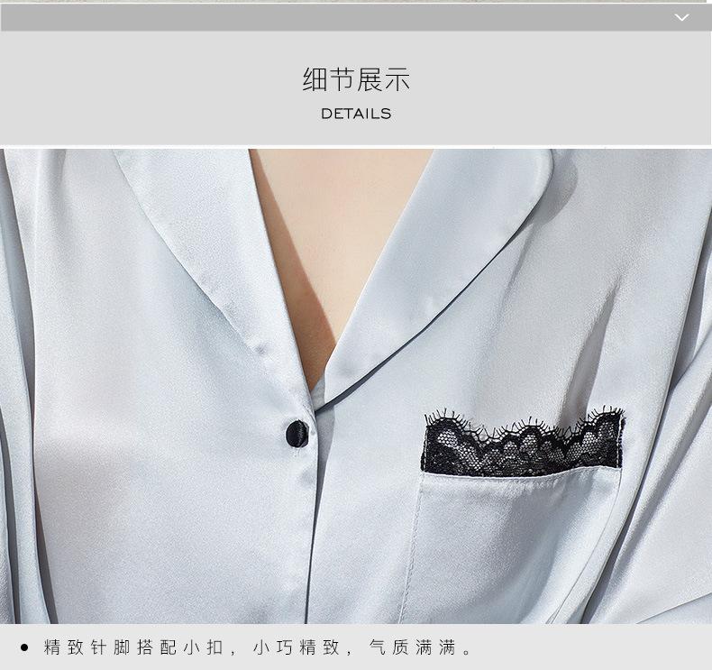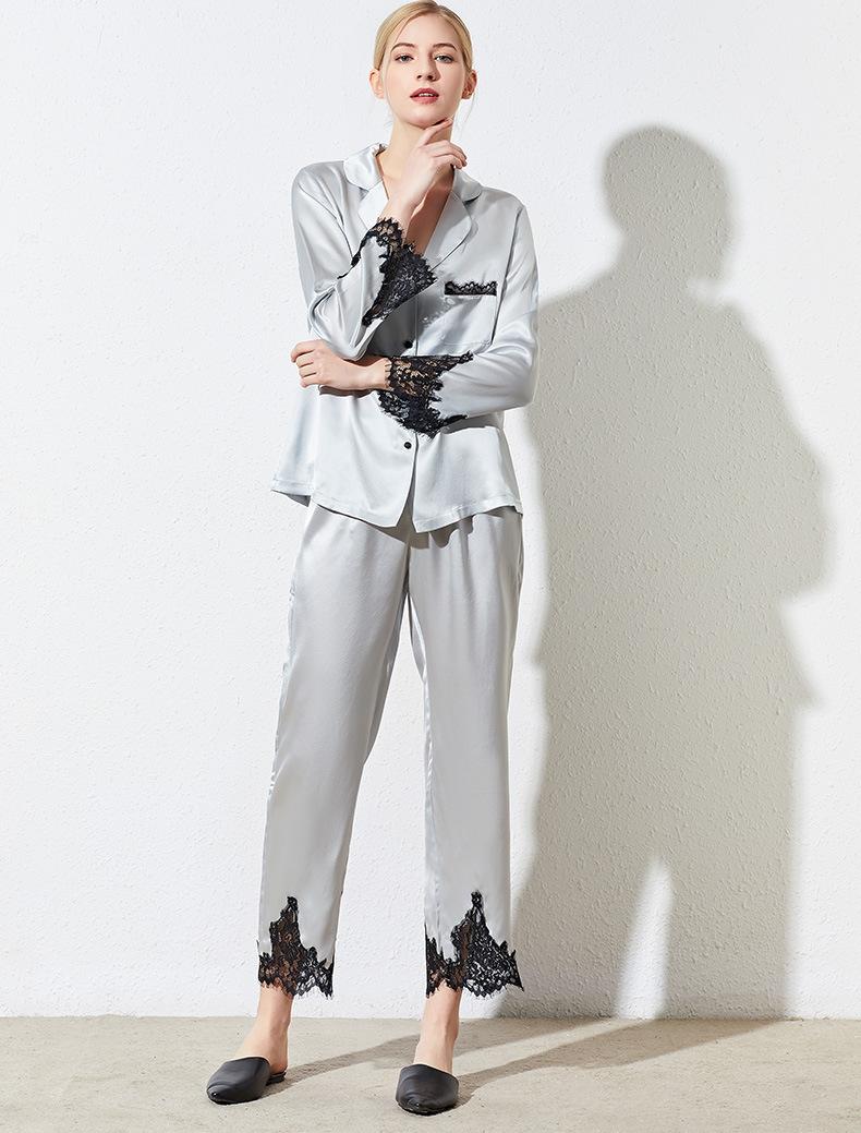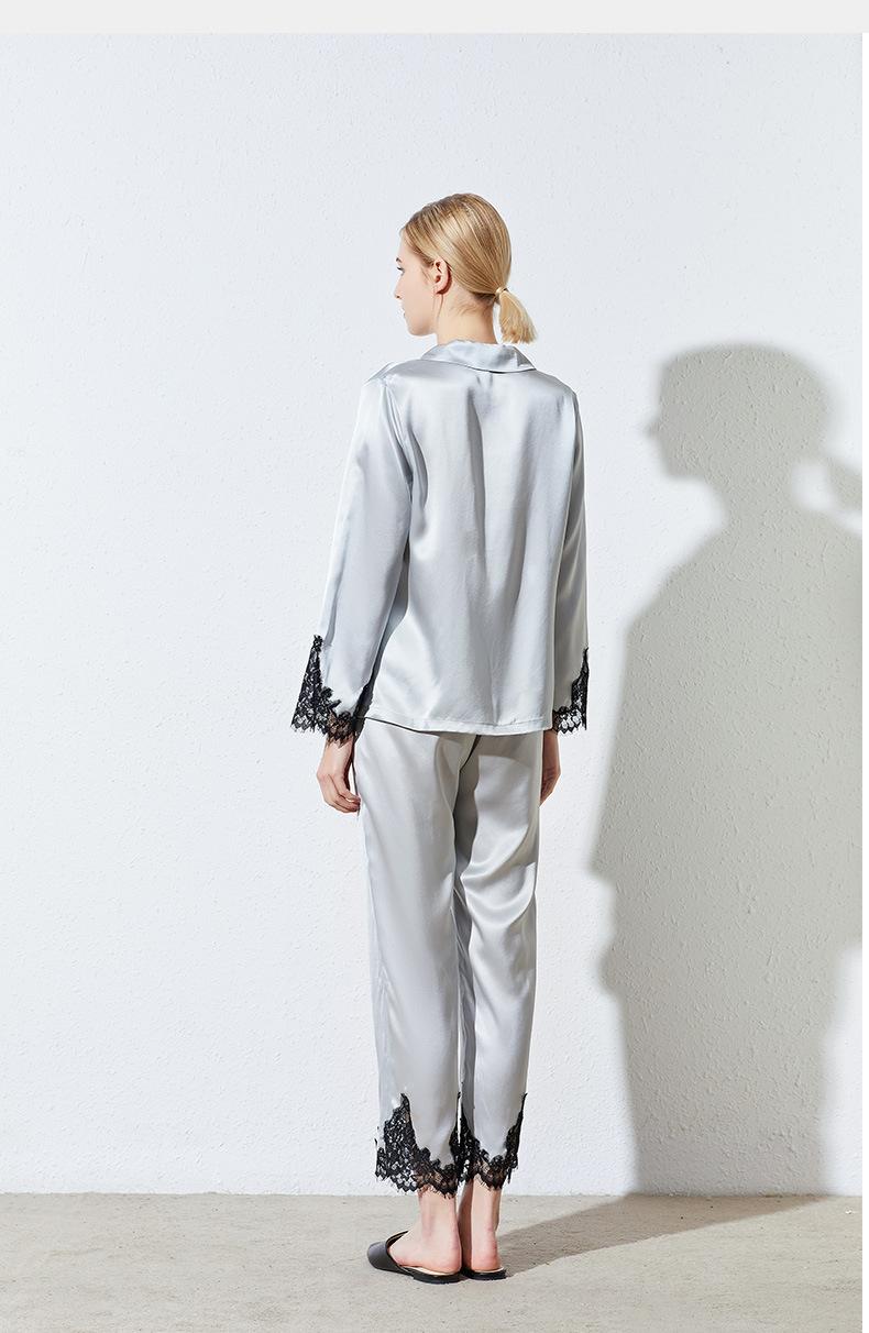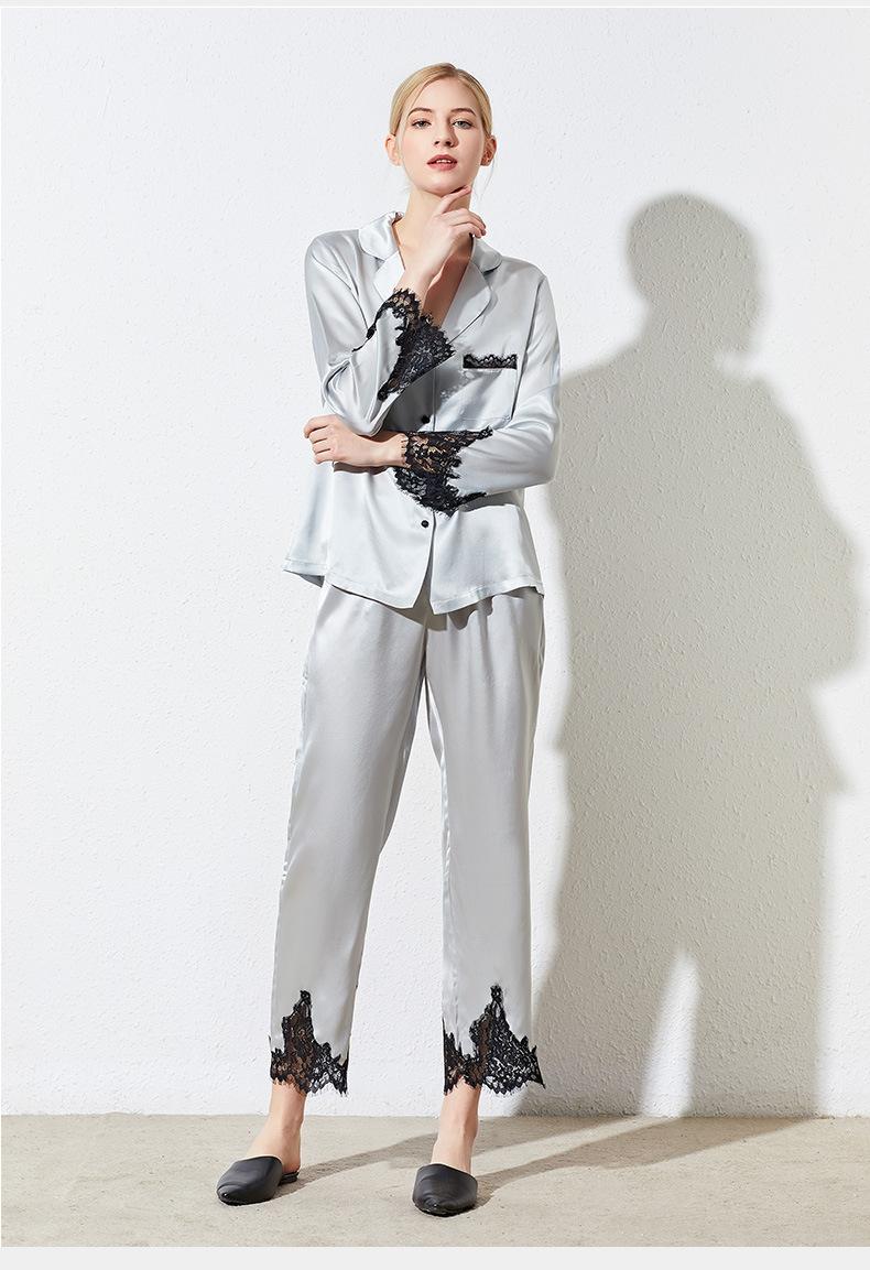 Conjunto de Pijama de Seda para Mujer Verano 19mm Seda de Morera Gris Conjunto de Dos Piezas de Manga Larga Lujo Accesible de Alta Gama Ropa para el Hogar
