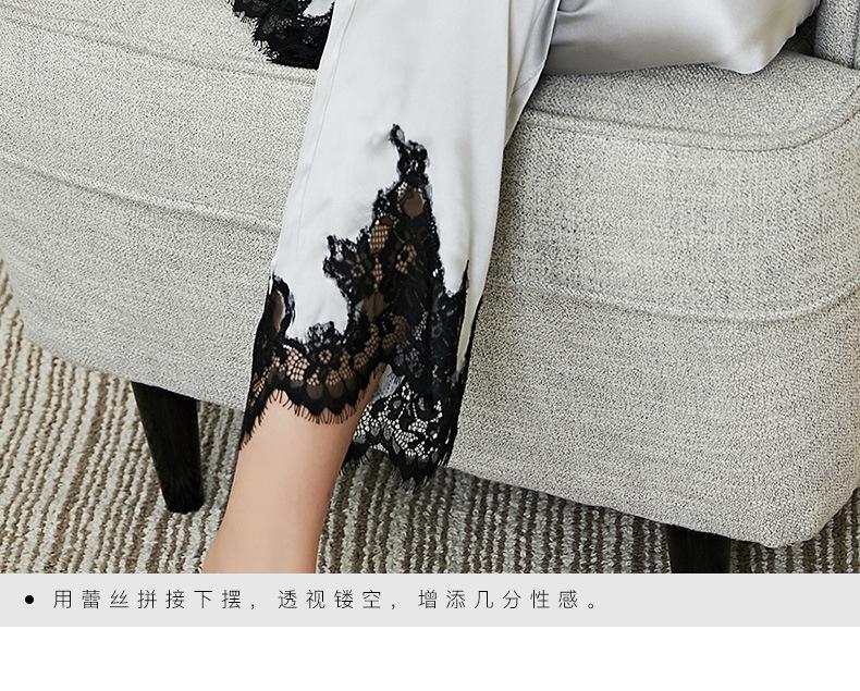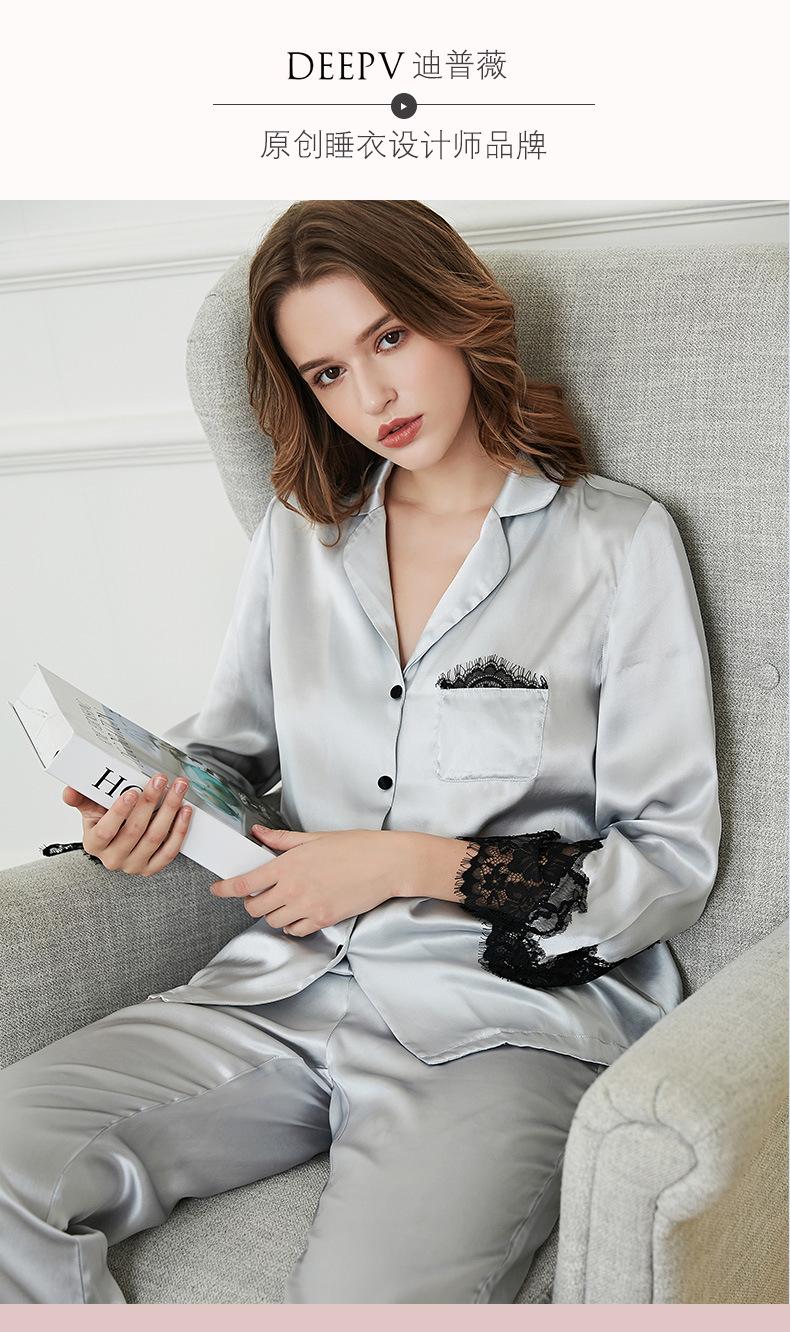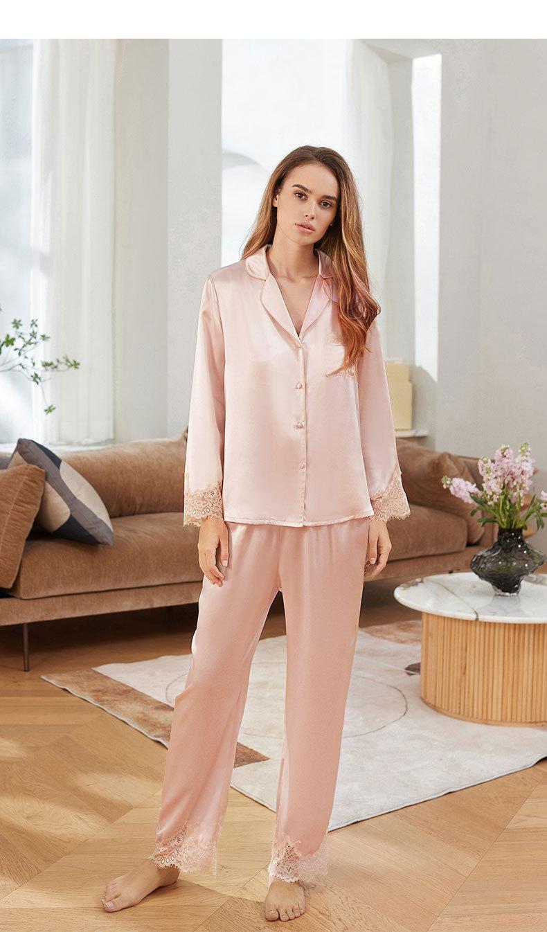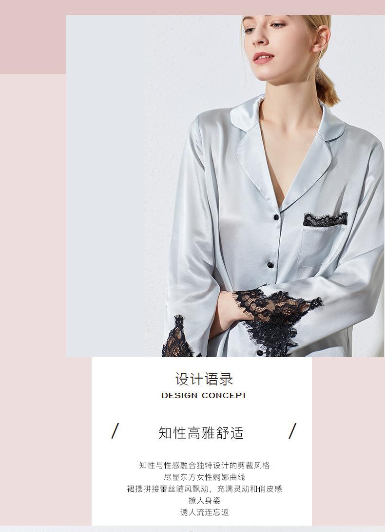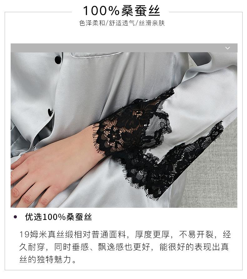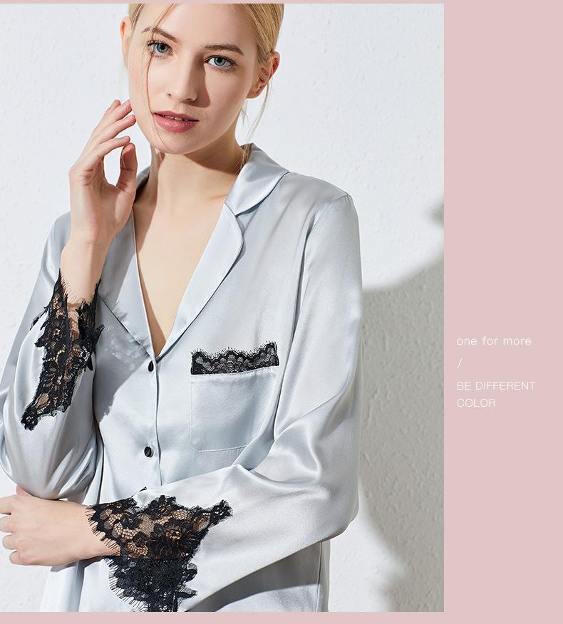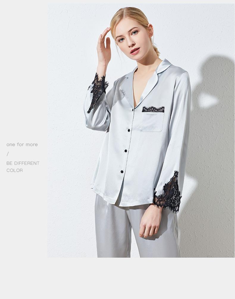 Conjunto de Pijama de Seda para Mujer Verano 19mm Seda de Morera Gris Conjunto de Dos Piezas de Manga Larga Lujo Accesible de Alta Gama Ropa para el Hogar