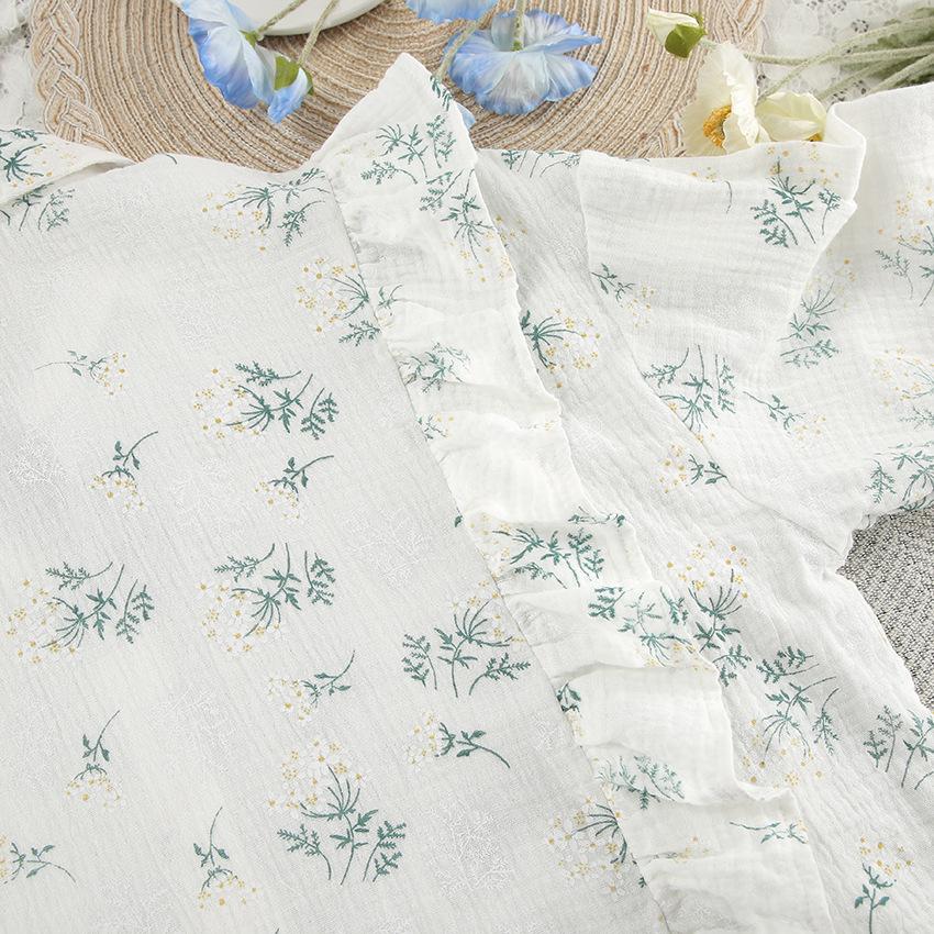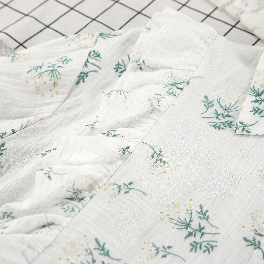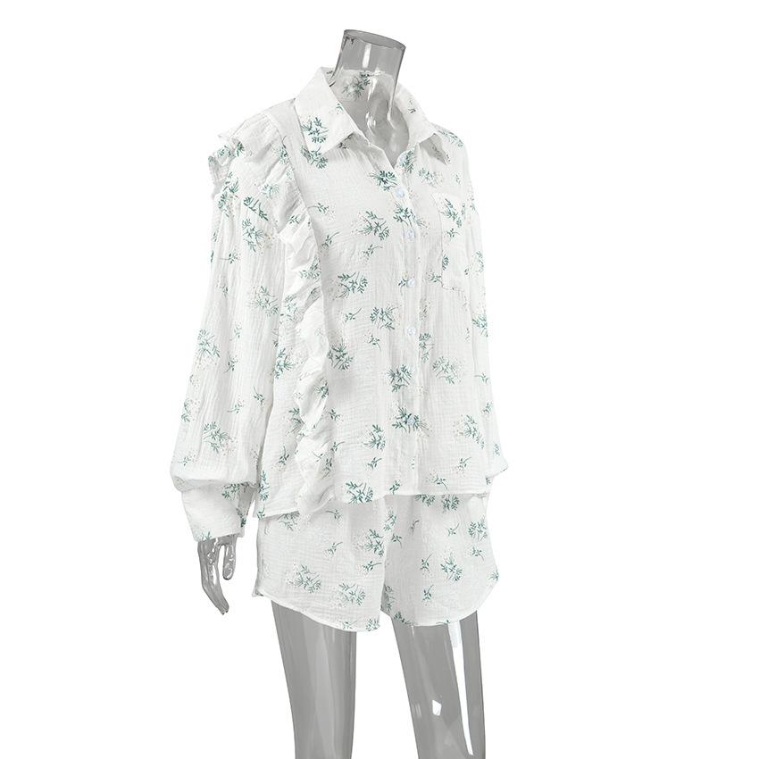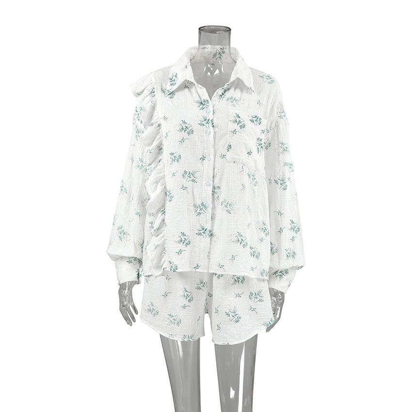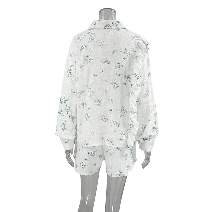 Pijamas de algodón estampado de verano 2024, transpirables y cómodos, con volantes, de manga larga y manga corta, ropa de hogar europea y americana para mujer, venta al por mayor