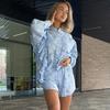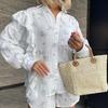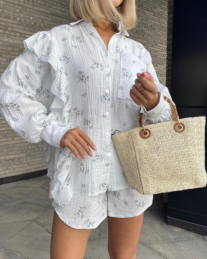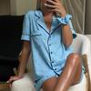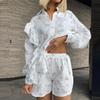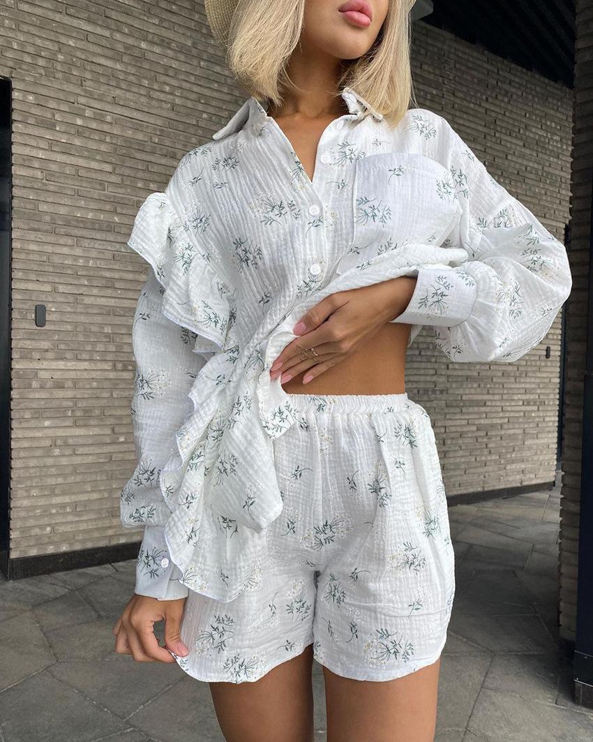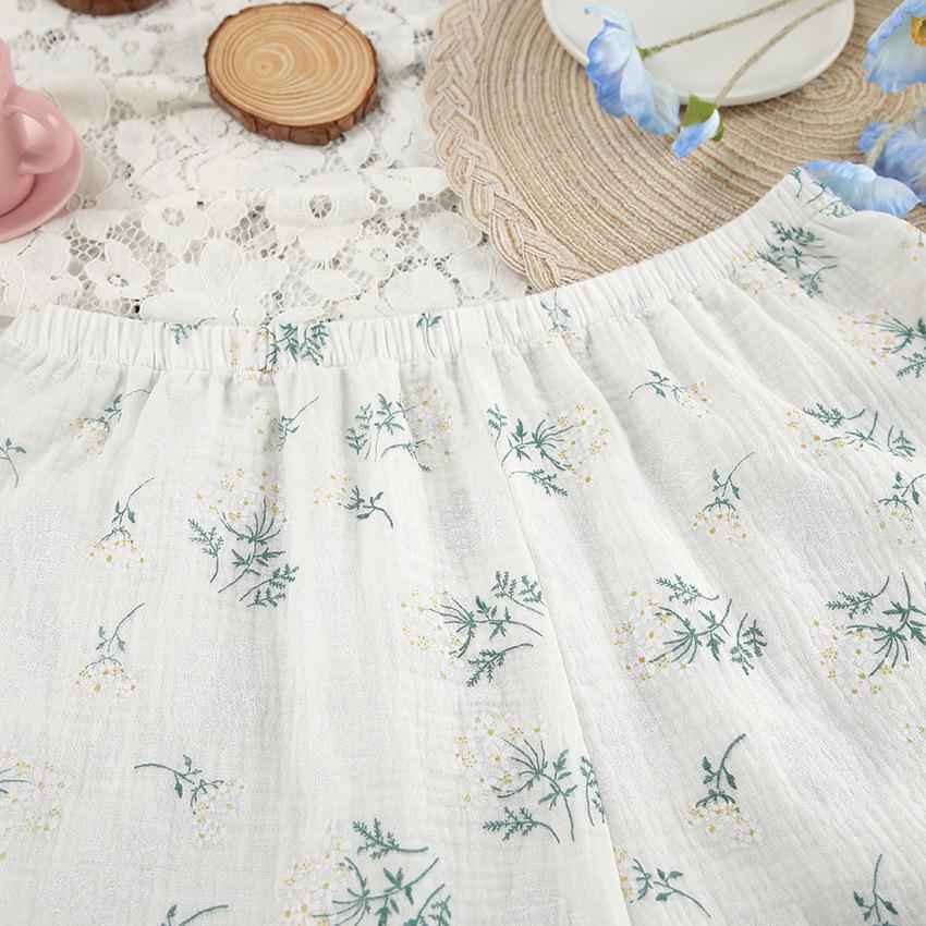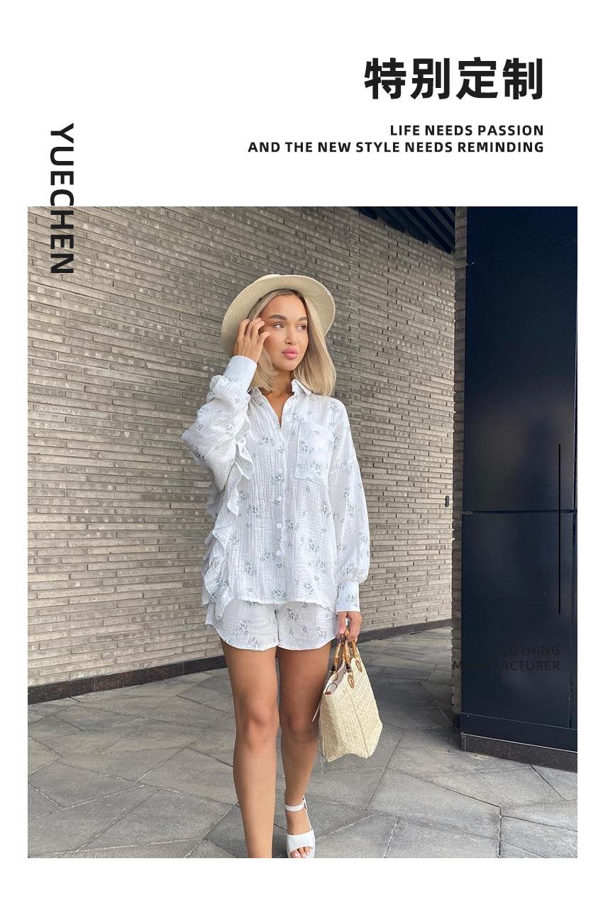 Pijamas de algodón estampado de verano 2024, transpirables y cómodos, con volantes, de manga larga y manga corta, ropa de hogar europea y americana para mujer, venta al por mayor