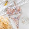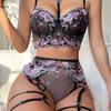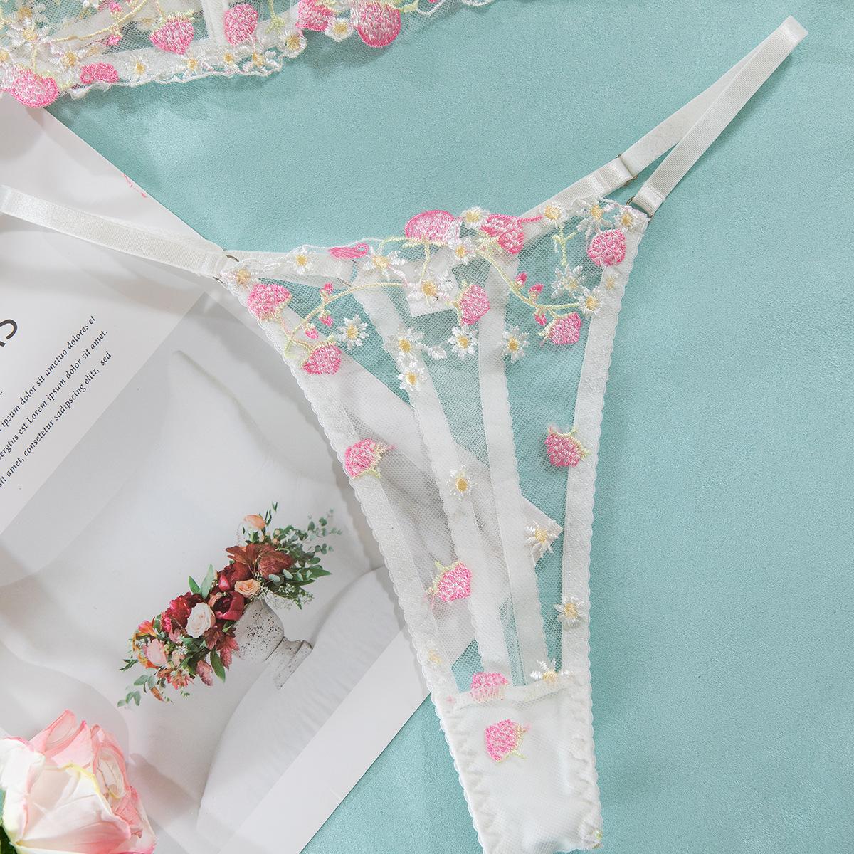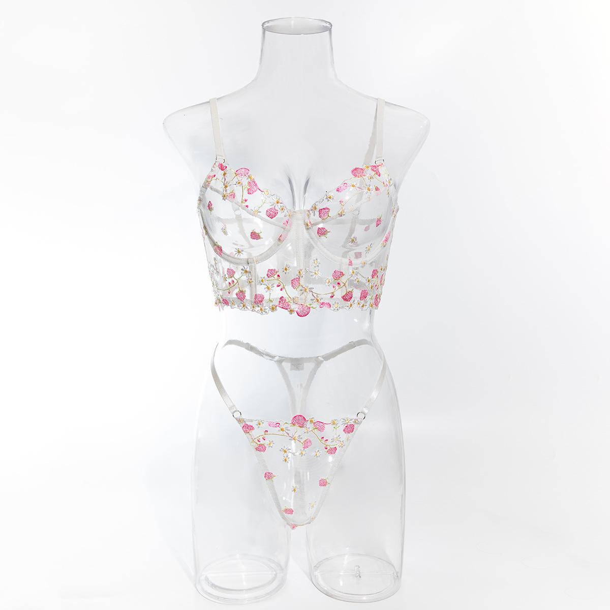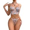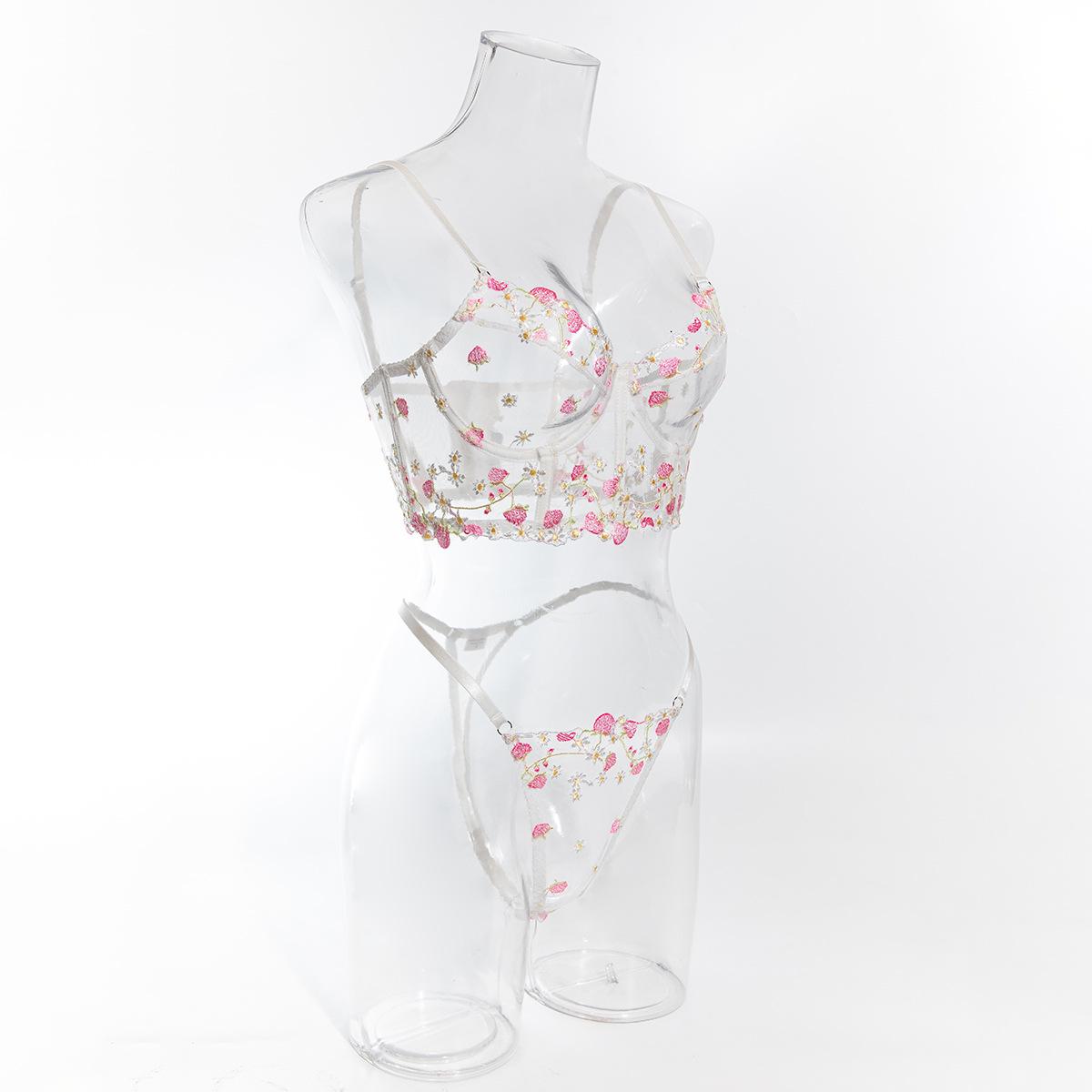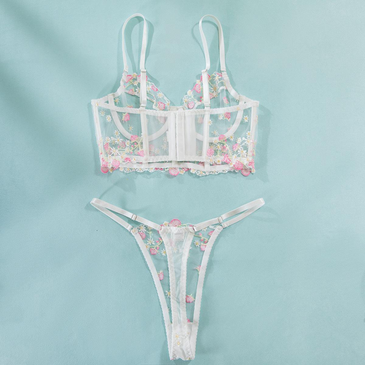 Lencería Sexy Malla Transparente Bordada Flor Multicolor Ballena Pequeño Chaleco Aro de Acero Push-up Bra Set de Dos Piezas
