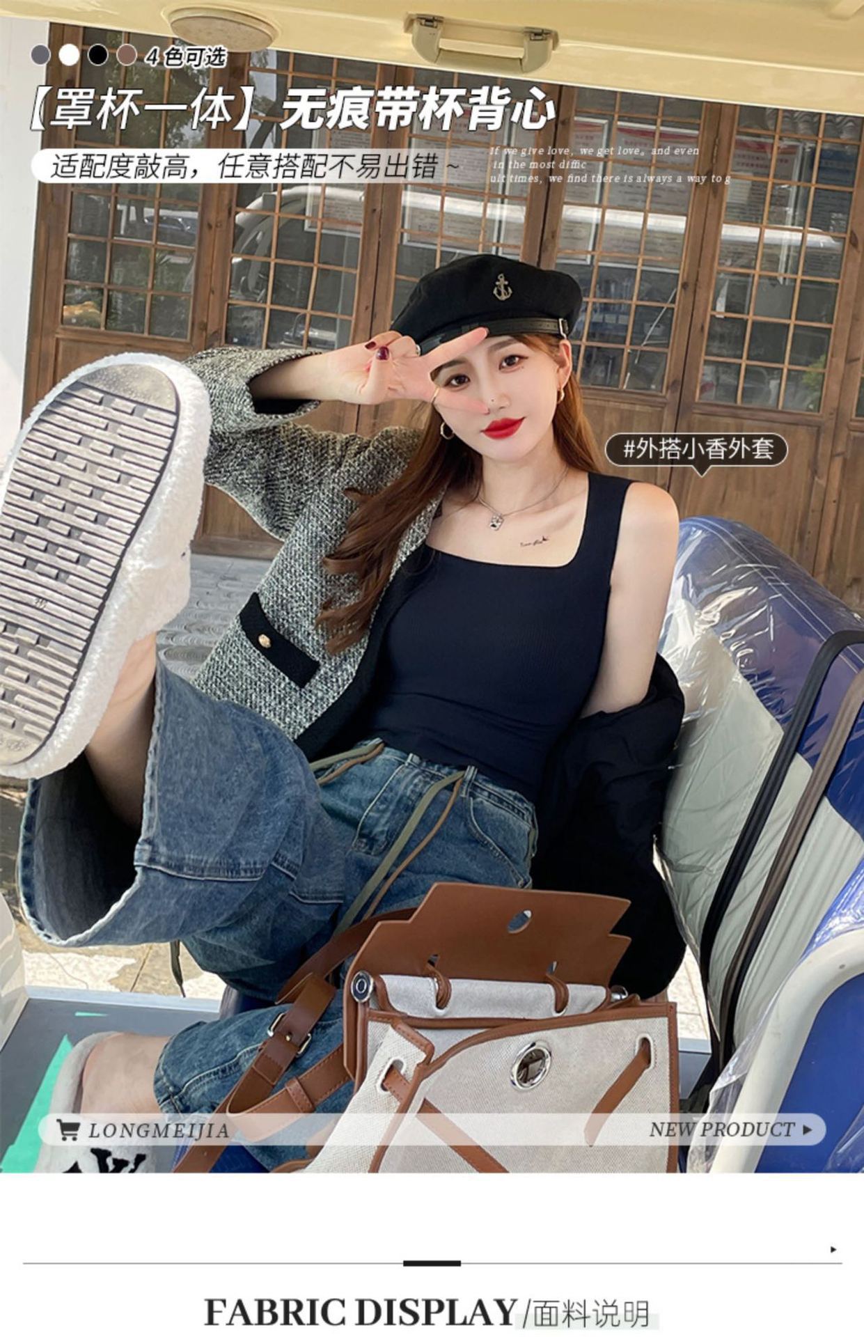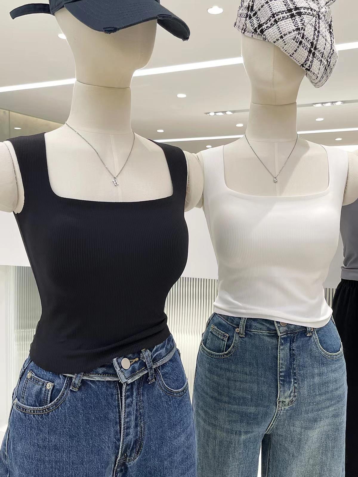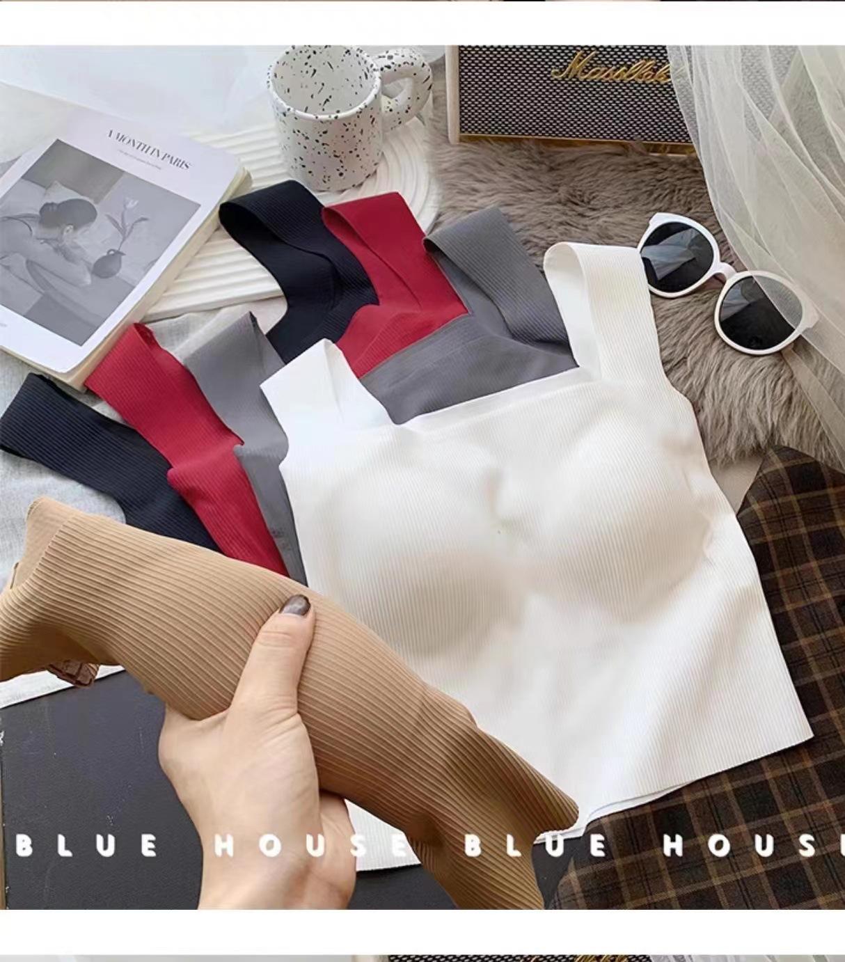 Camisola de cuello cuadrado con almohadilla para el pecho, ropa interior de mujer, ropa exterior, hermoso sujetador de espalda, ropa interior de una pieza, base de tubo blanca.