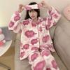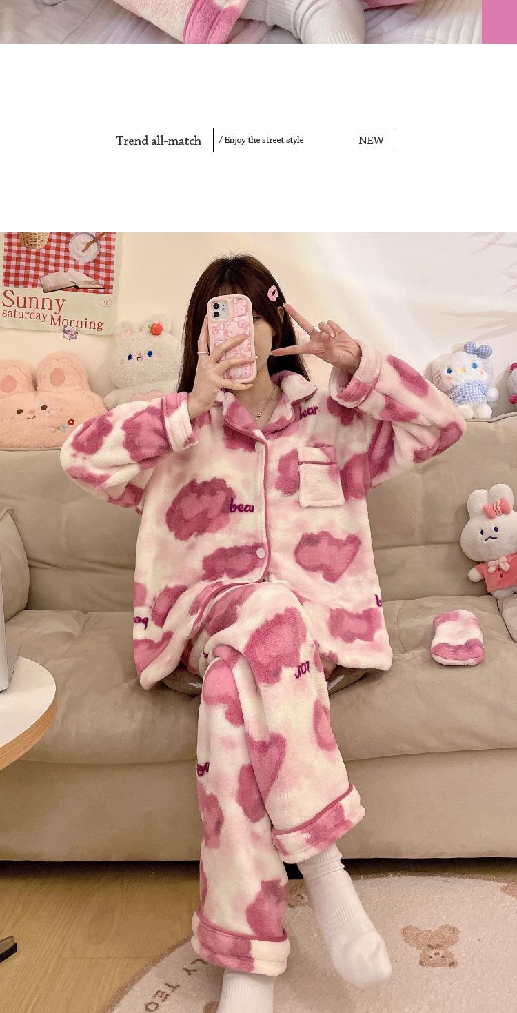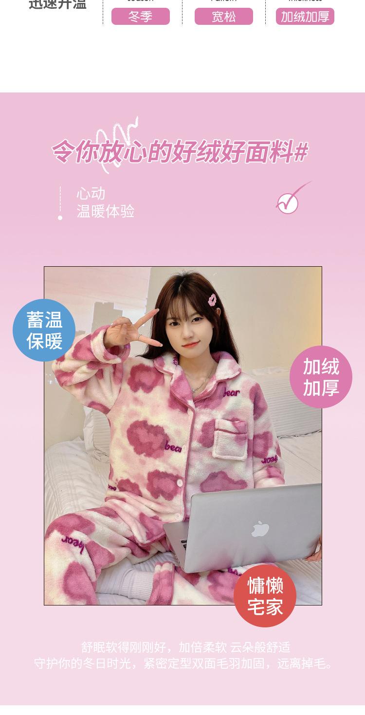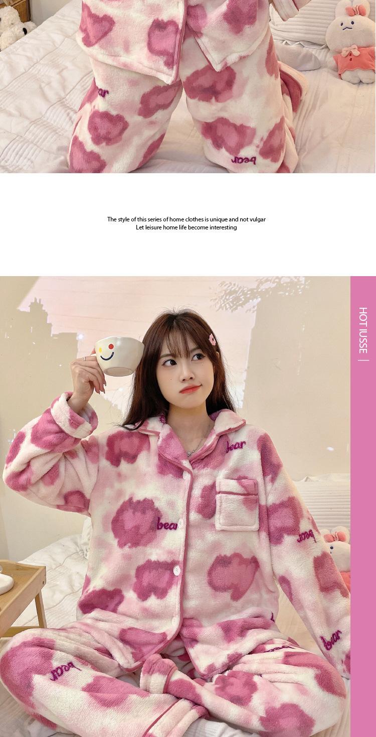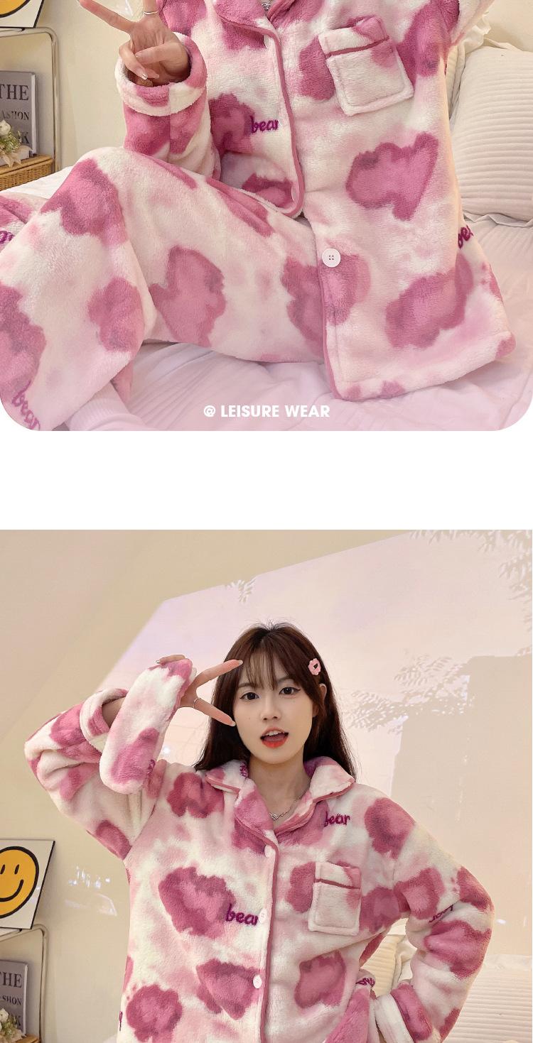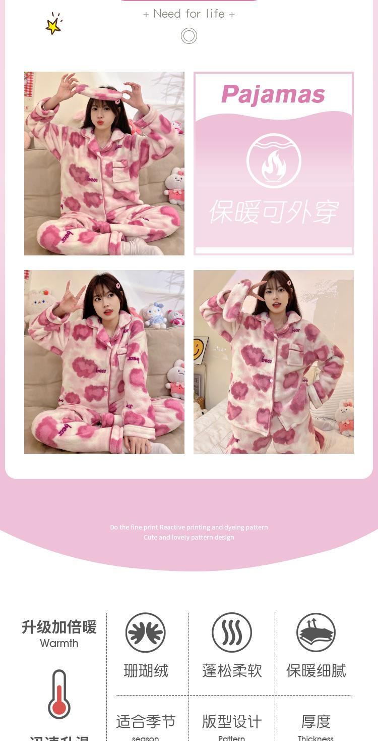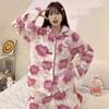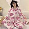 Pijamas de lana coral, pijamas para mujer, otoño e invierno, nuevos, dulces, florecientes, forrados con vellón, franela gruesa, ropa para el hogar, traje al por mayor