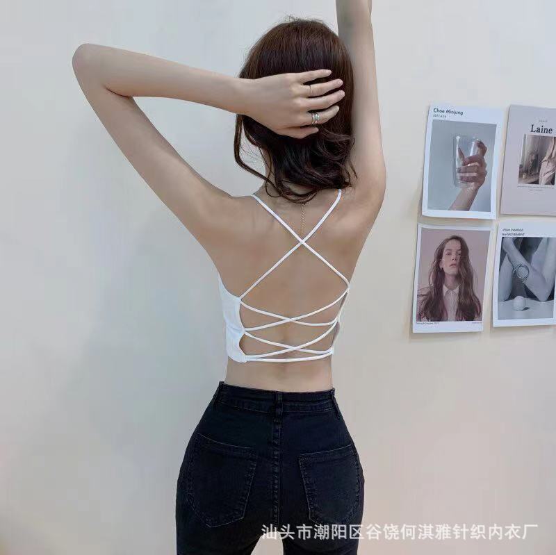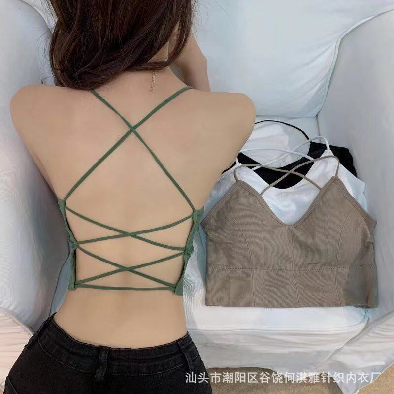 Nuevo Sexy Crossover Hermoso Espalda Camisola Sin Costuras Chaleco Espalda Descubierta Ajustado Ropa Exterior Antirozaduras Ligero Base Envolvente Ropa Interior para Mujer