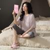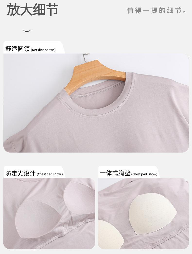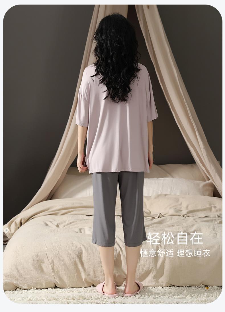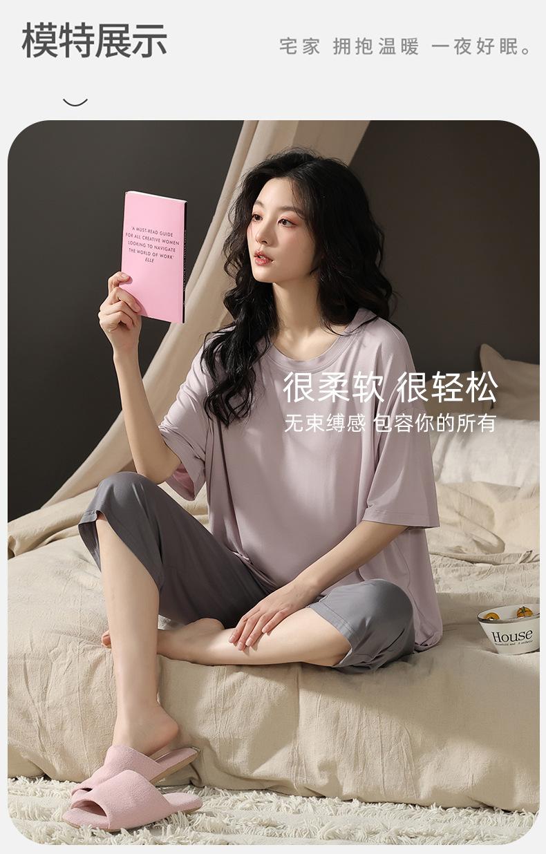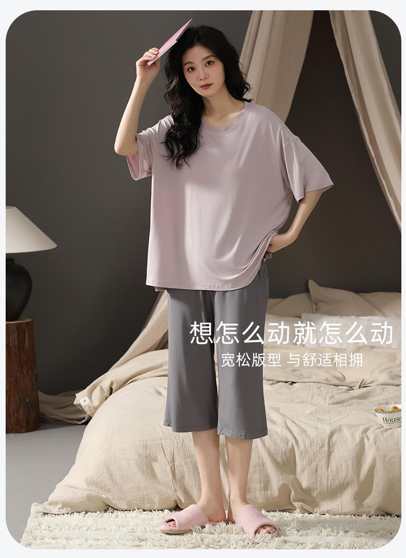 Pijama de modal con almohadilla para el pecho para mujer, pantalón capri fino de verano de manga corta, ropa informal sencilla de color liso para el hogar