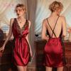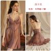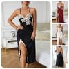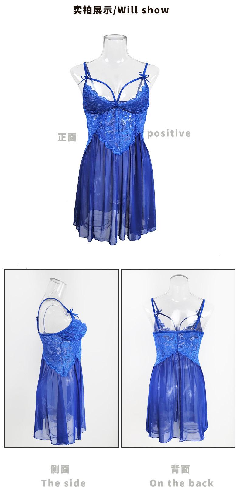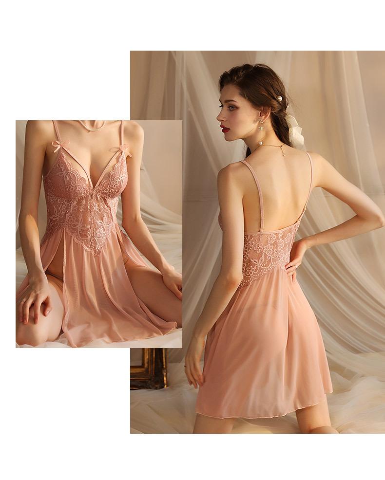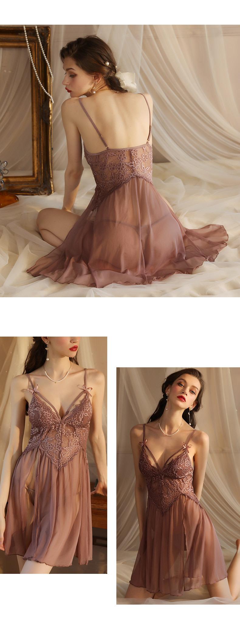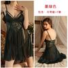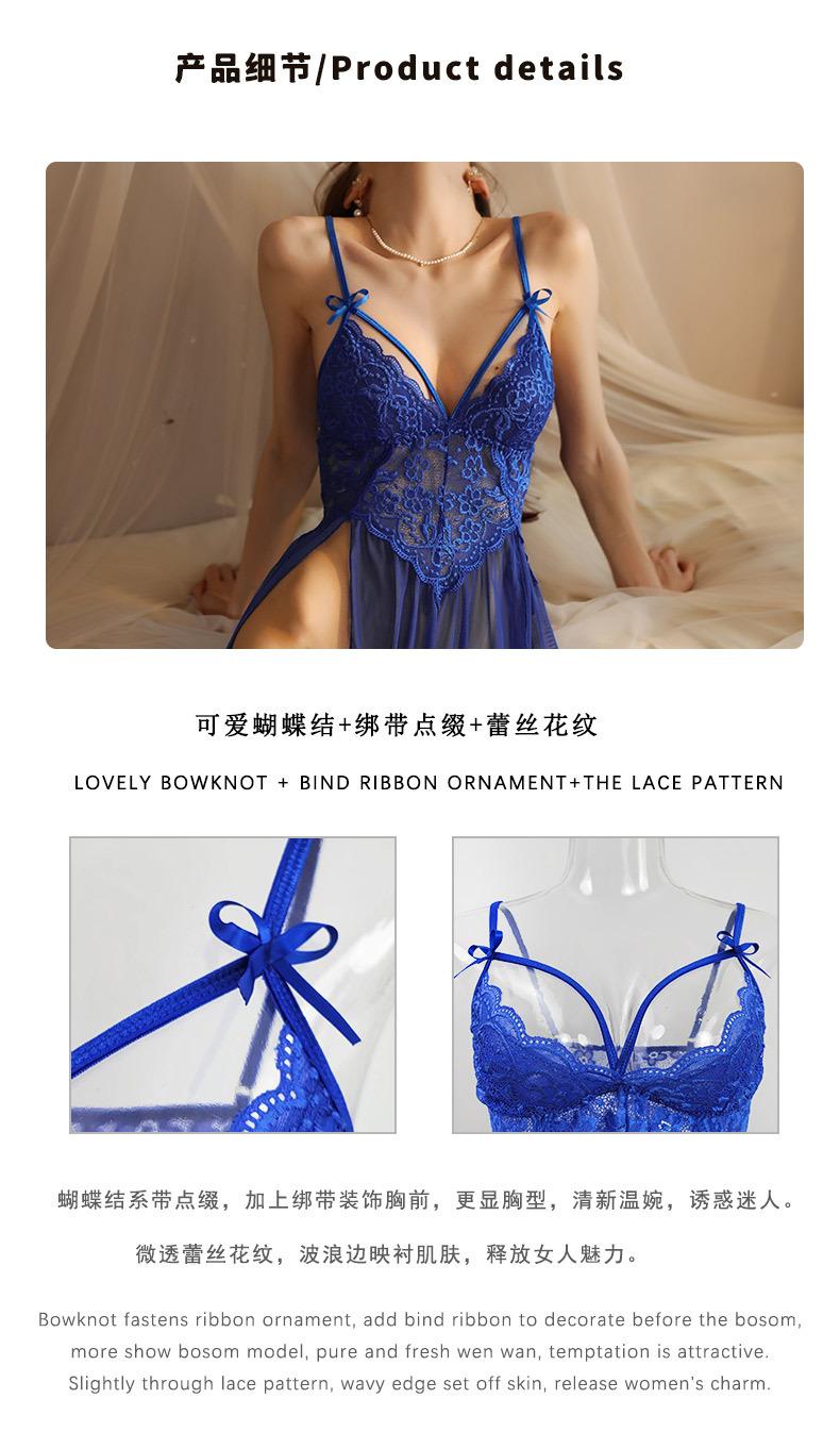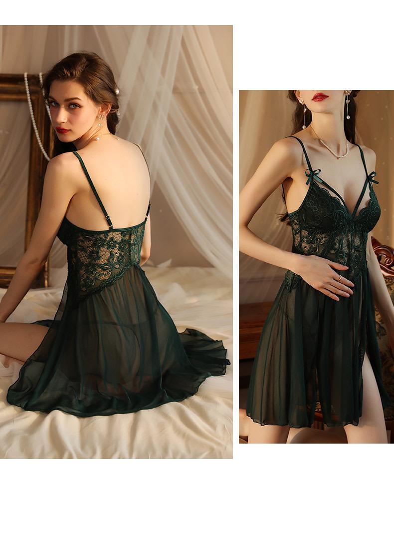 Nuevo Pijama Sexy de Malla con Encaje de Escote en V Profundo Falda con Tirantes y Abertura Lateral Tentación Ropa de Casa Camisón Traje de Mujer 311