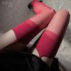Medias de seda sexys con liguero de encaje sexy, color rojo puro, contraste de lado rojo, tubo largo sin removible.