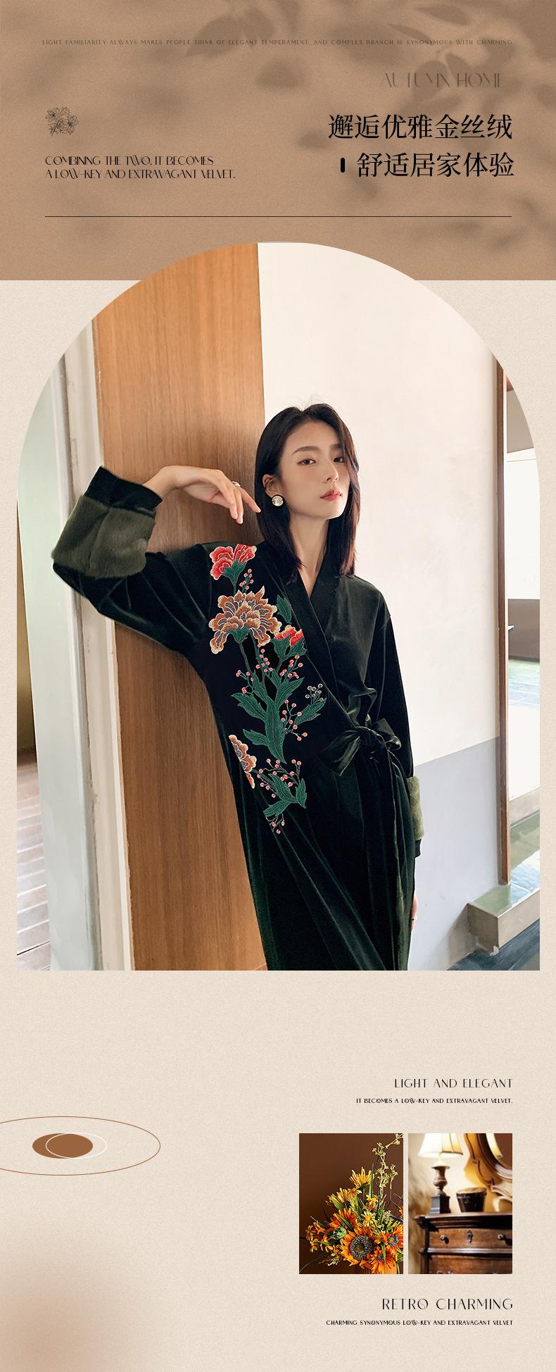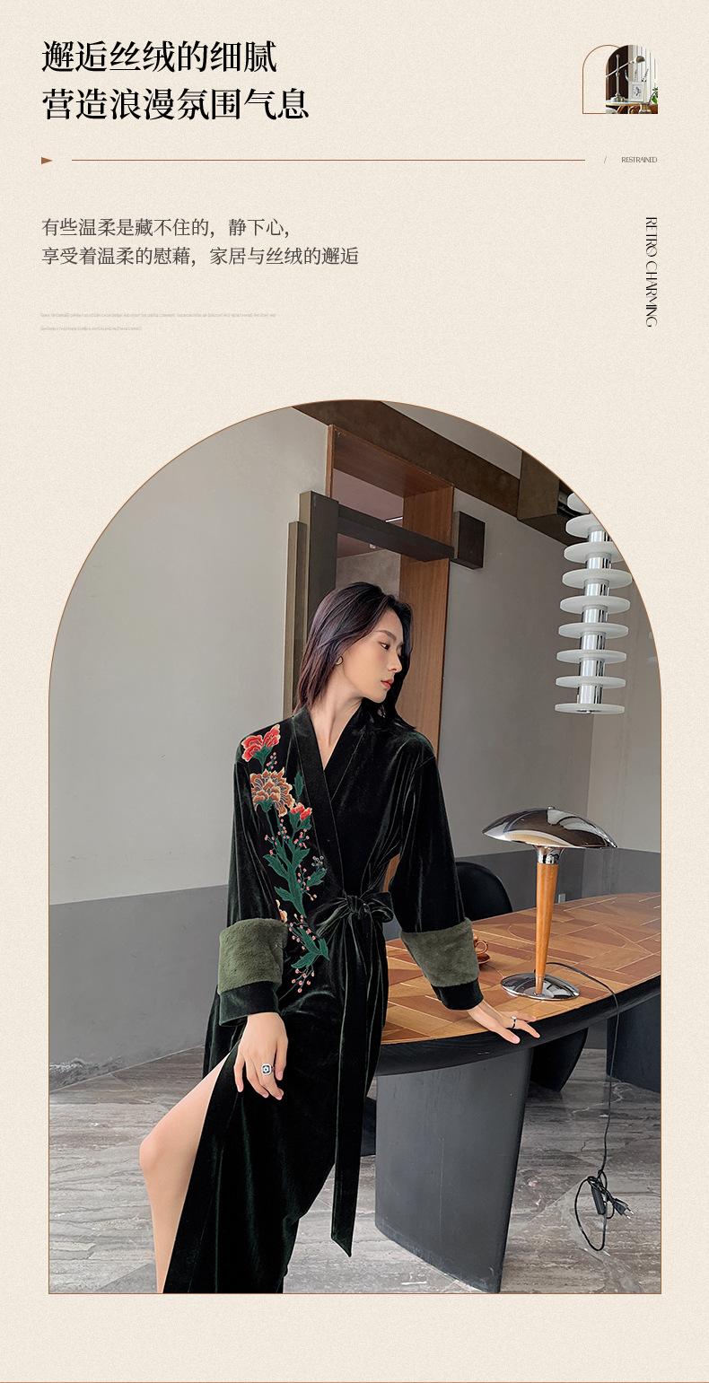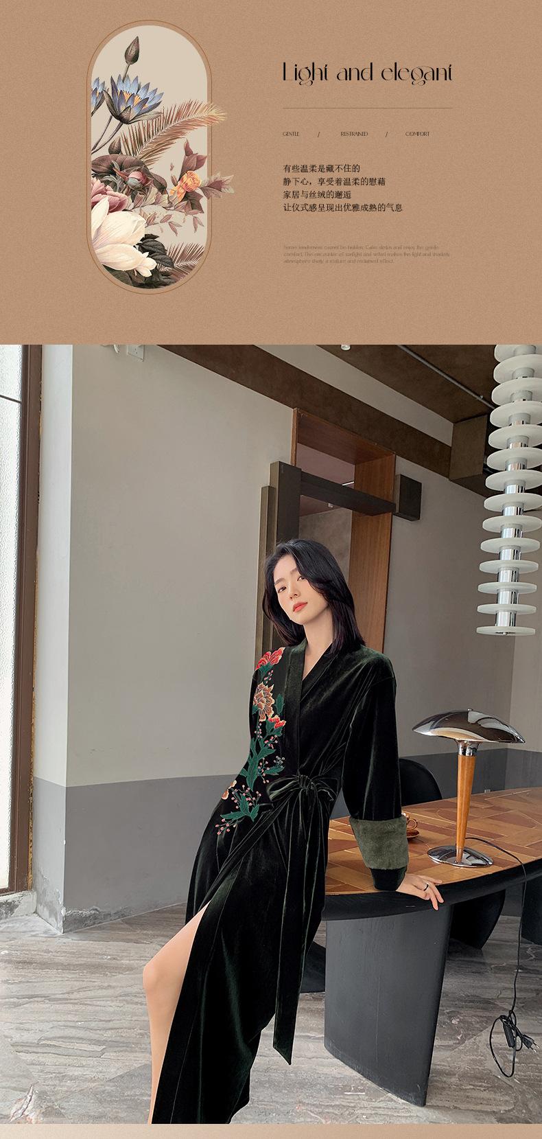 Pijama de Terciopelo Dorado Yao Ting para Mujer Otoño e Invierno Manga Larga Largo Batín Camisón de Mujer Sensación de Alta Gama Ropa para el Hogar Invierno Mujer