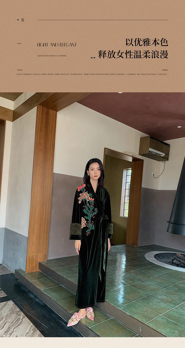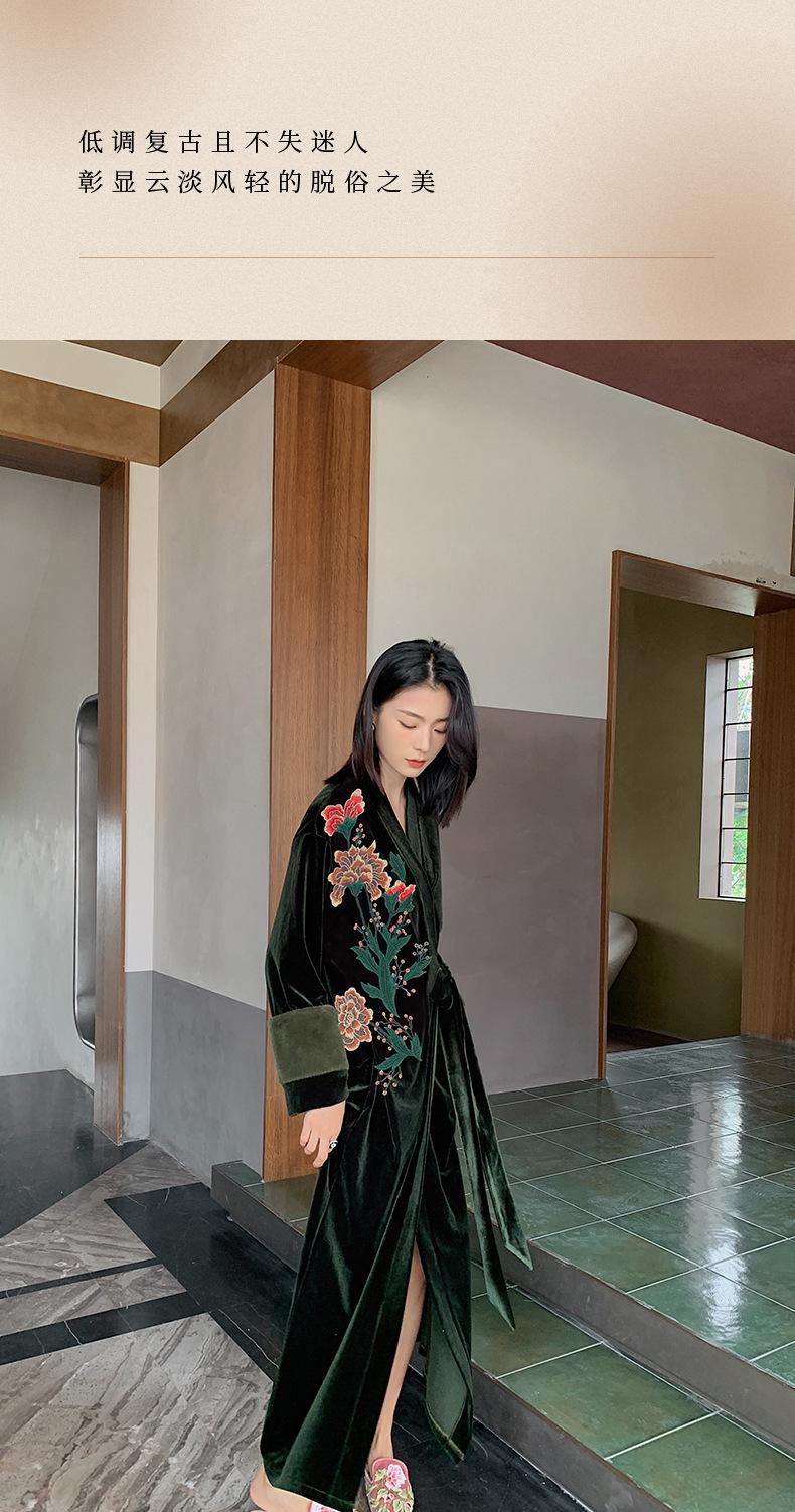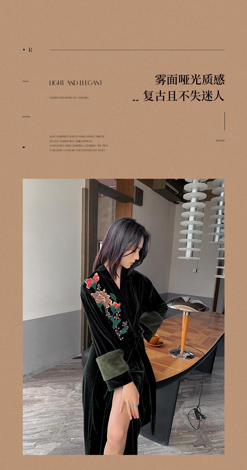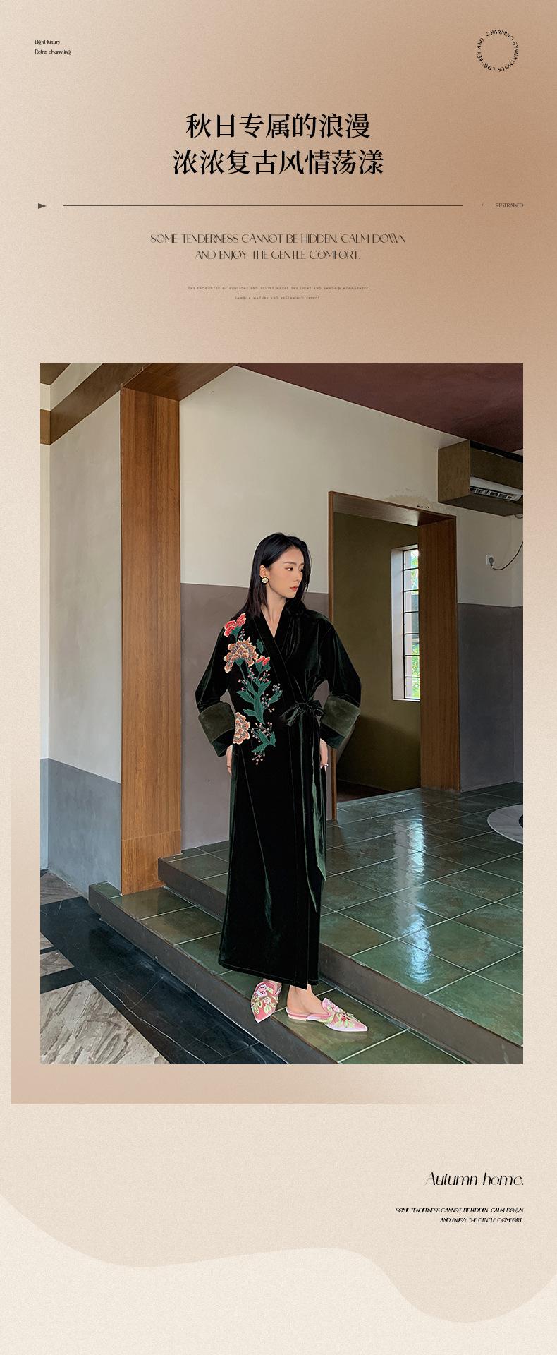 Pijama de Terciopelo Dorado Yao Ting para Mujer Otoño e Invierno Manga Larga Largo Batín Camisón de Mujer Sensación de Alta Gama Ropa para el Hogar Invierno Mujer