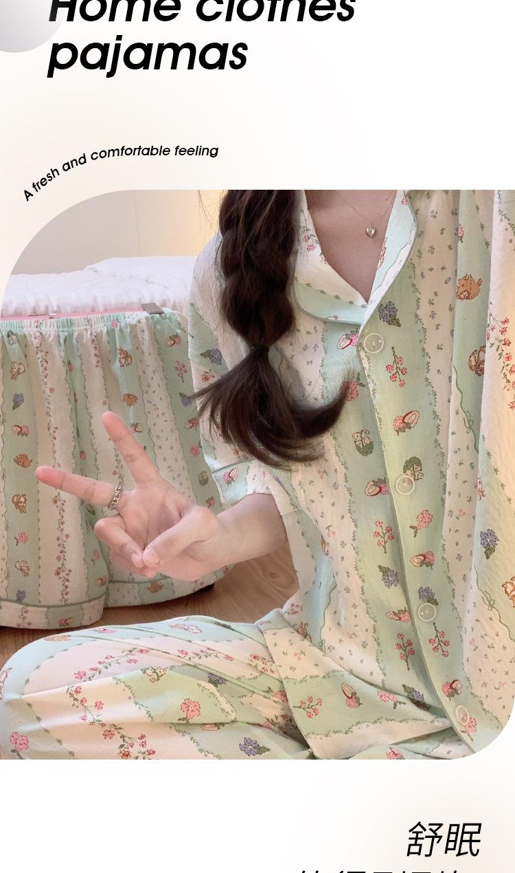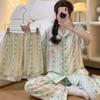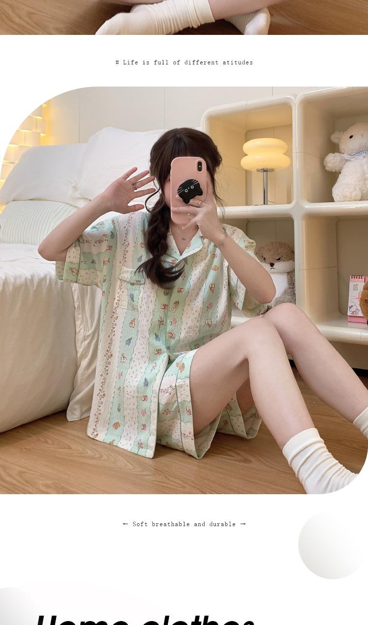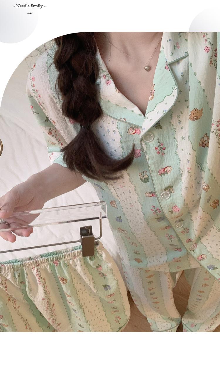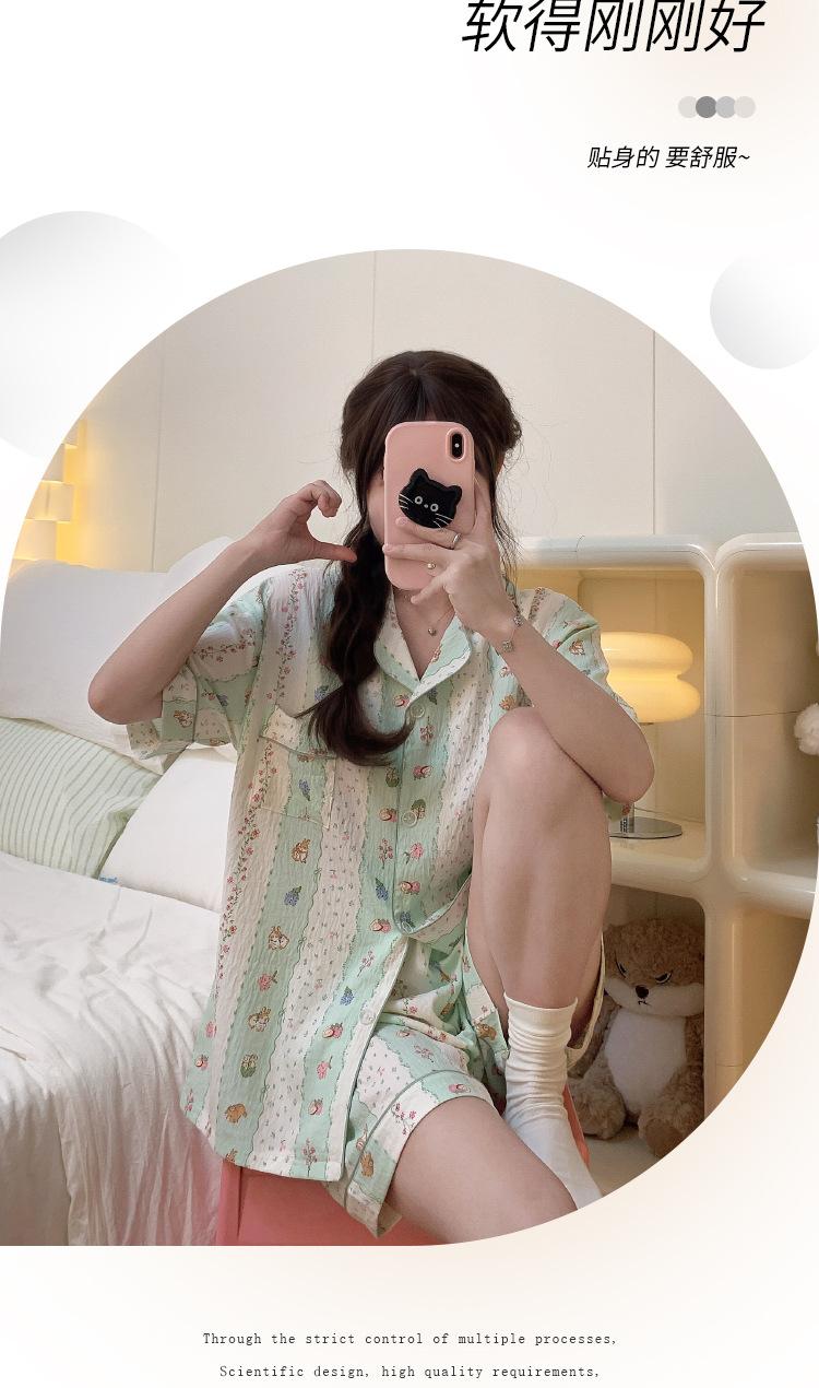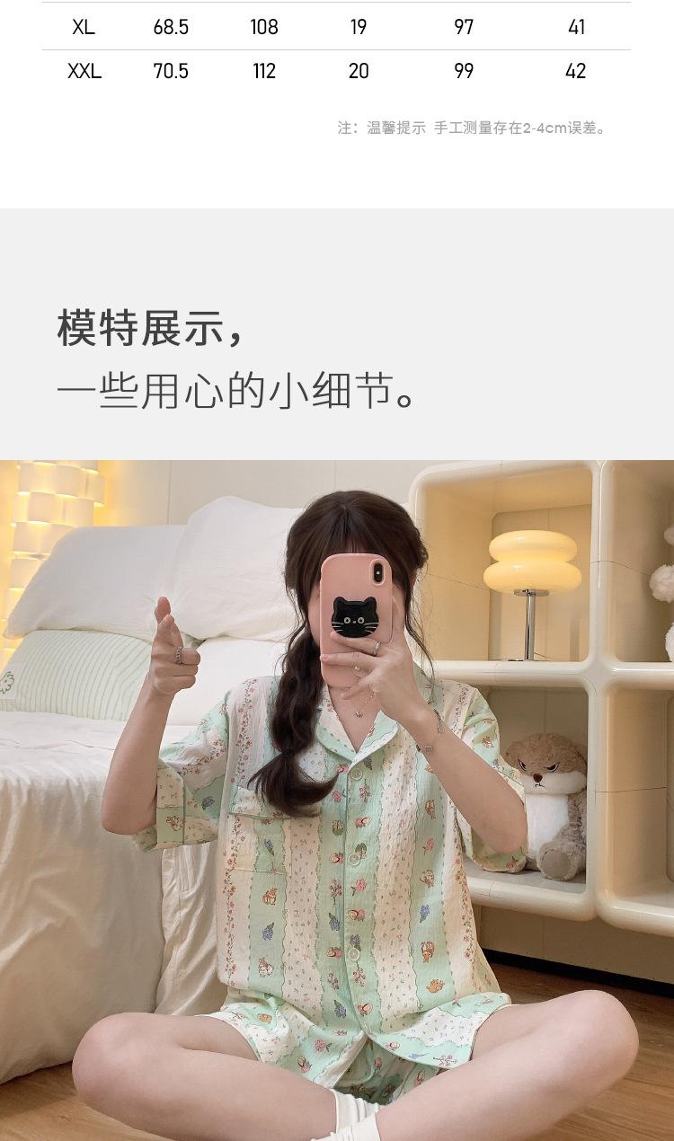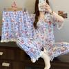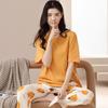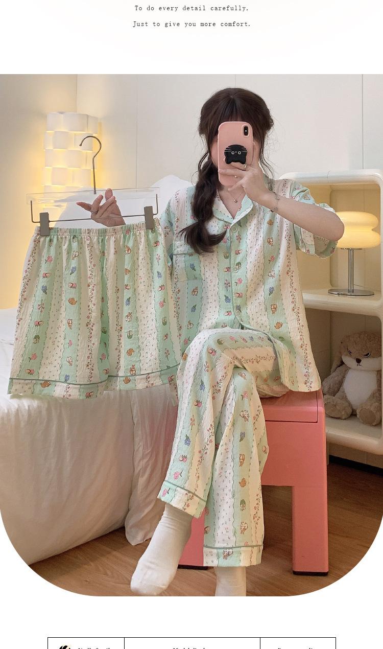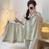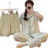 Pijama con estampado de gato y rayas florales para mujer, ropa de verano para el hogar, conjunto de tres piezas de algodón con mangas cortas, venta al por mayor