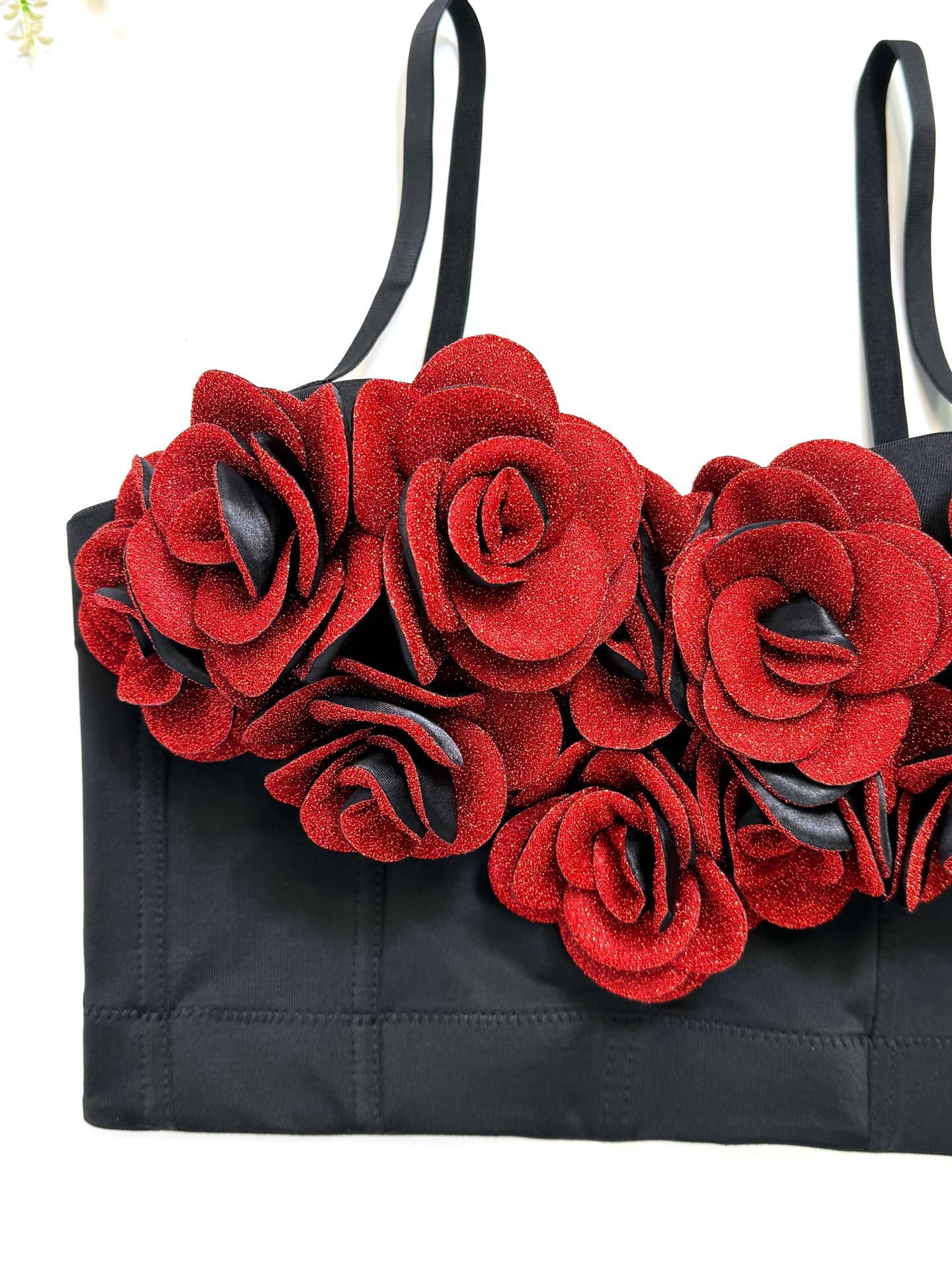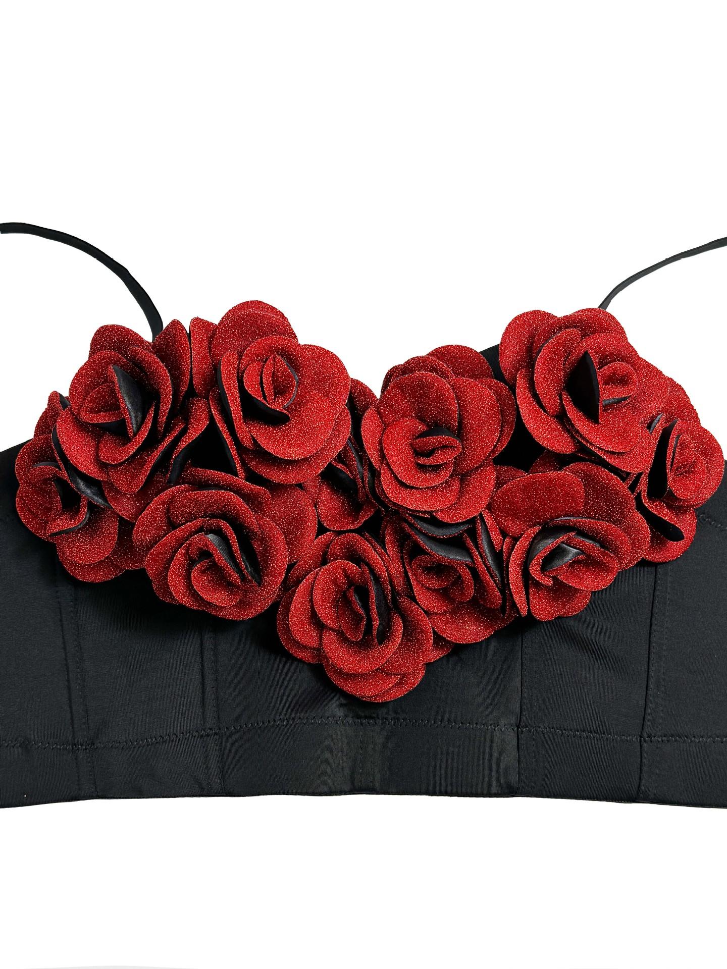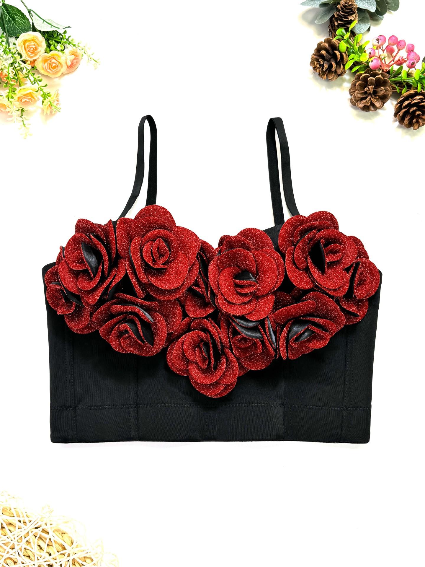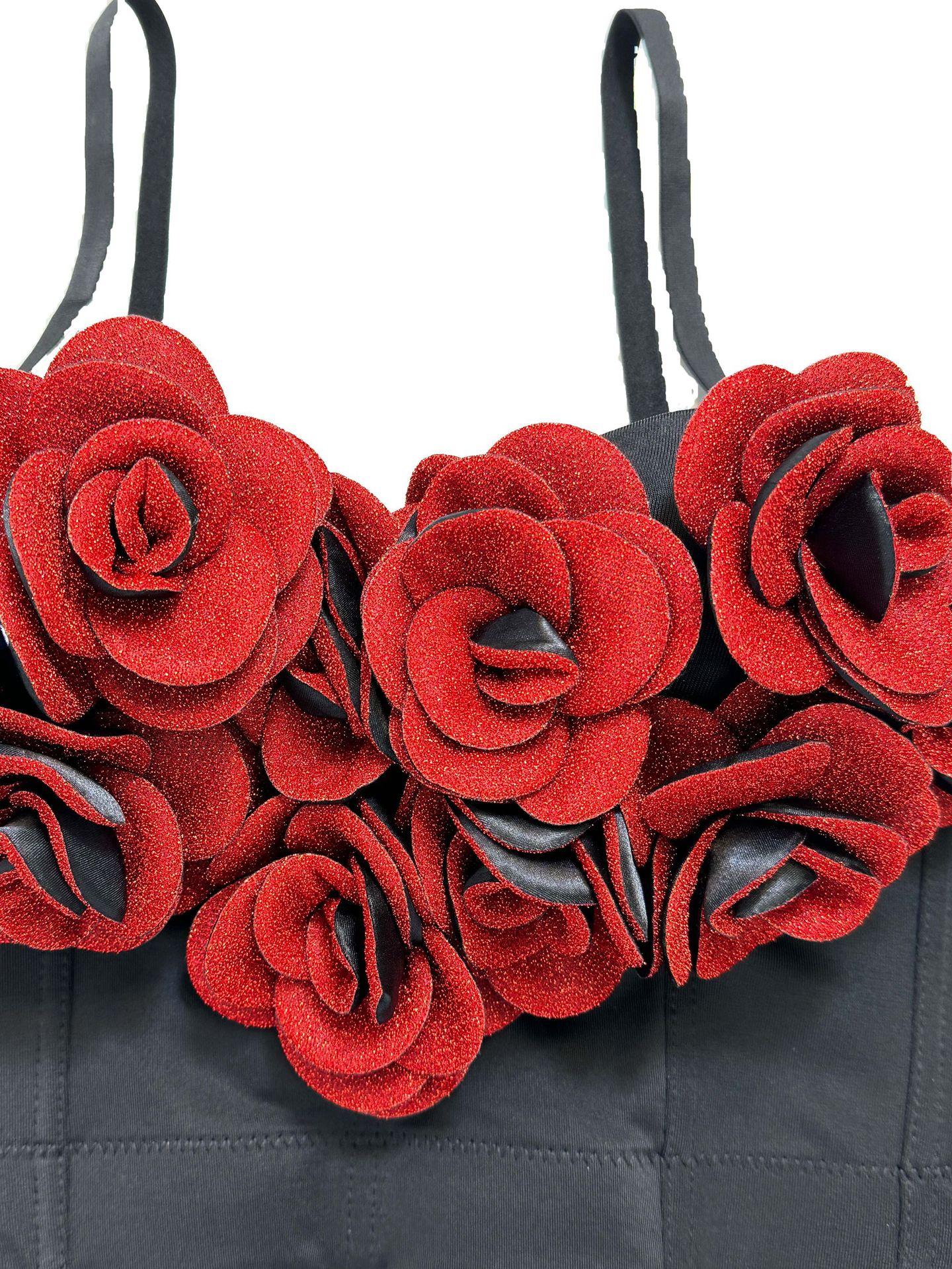 Corsé moldeador de cuerpo con correa de cabestrillo sexy para interior y exterior de alto nivel con rosas tridimensionales de color rojo vino para San Valentín