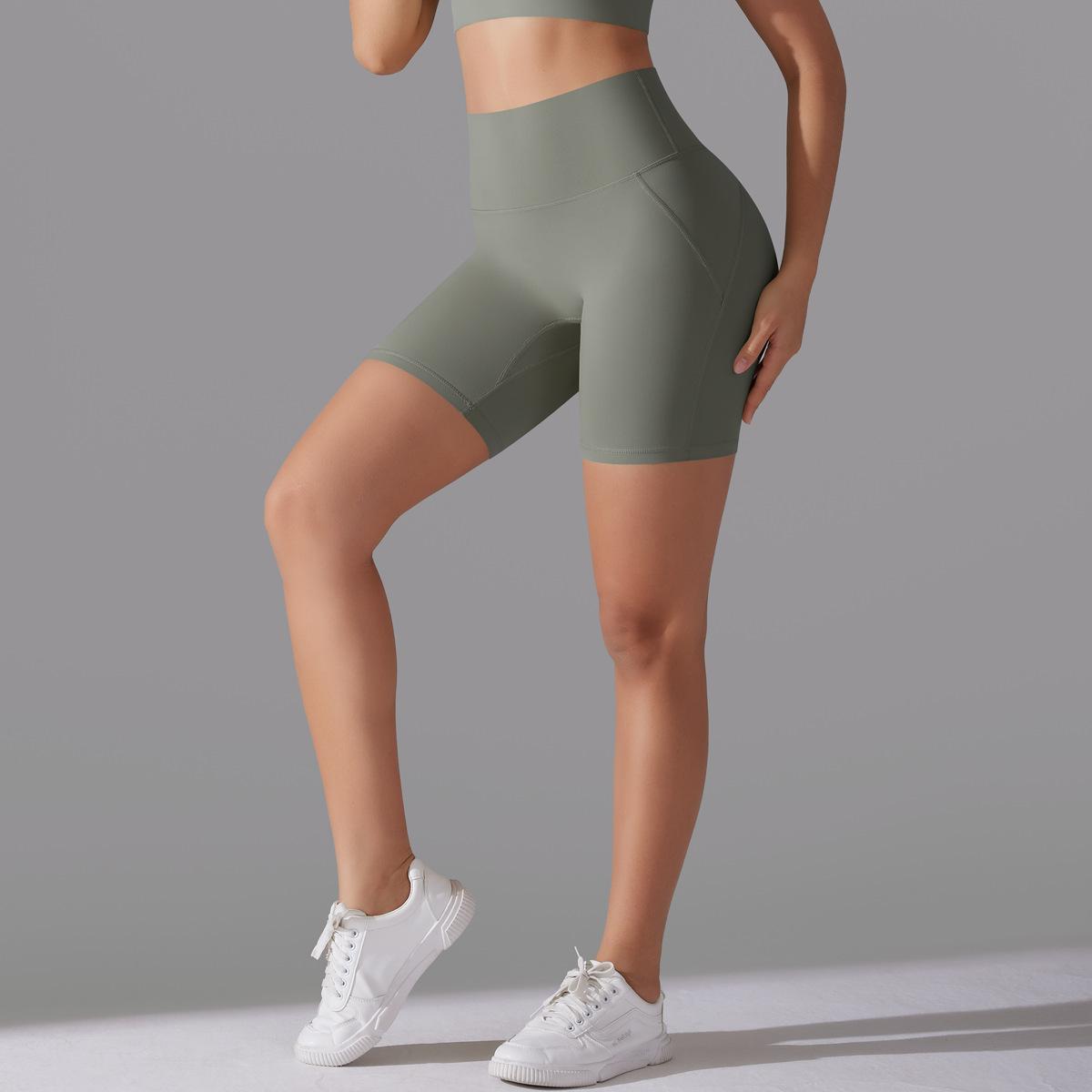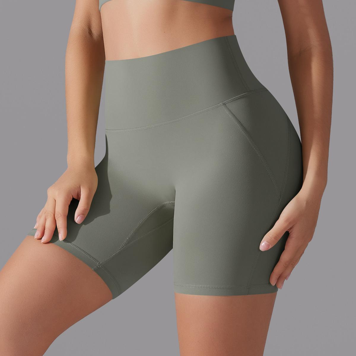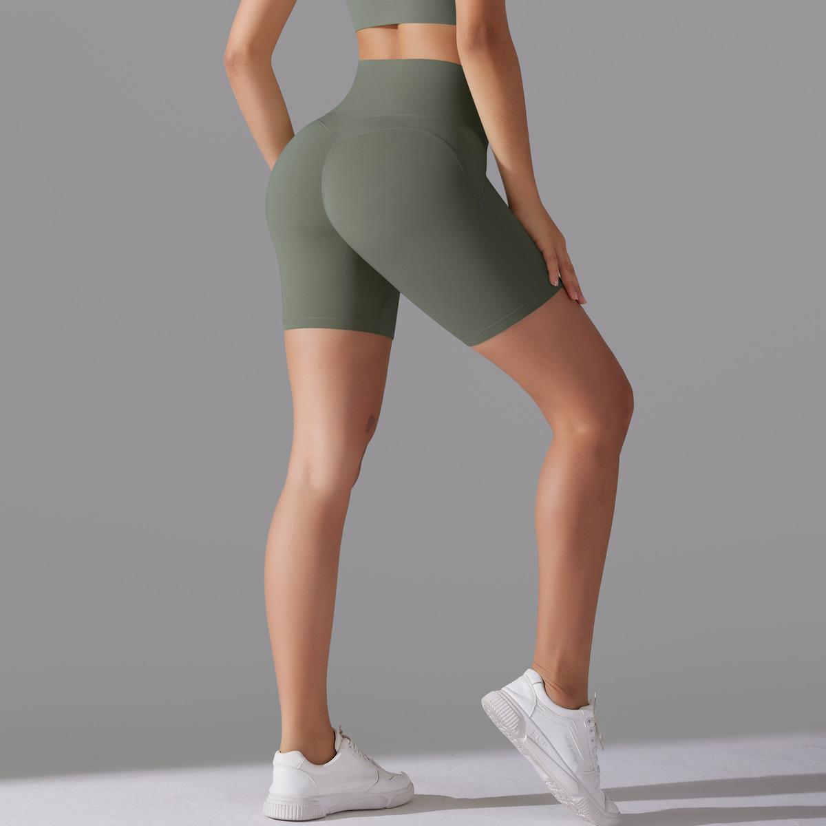 Pantalones Cortos Calientes de Cintura Alta Levanta Caderas de Celebridad de Internet Sin Ropa Interior Sin Línea Embarazosa Pantalones Cortos Deportivos para Correr Fitness Yoga para Mujer