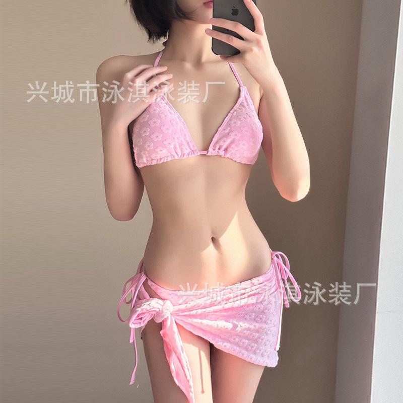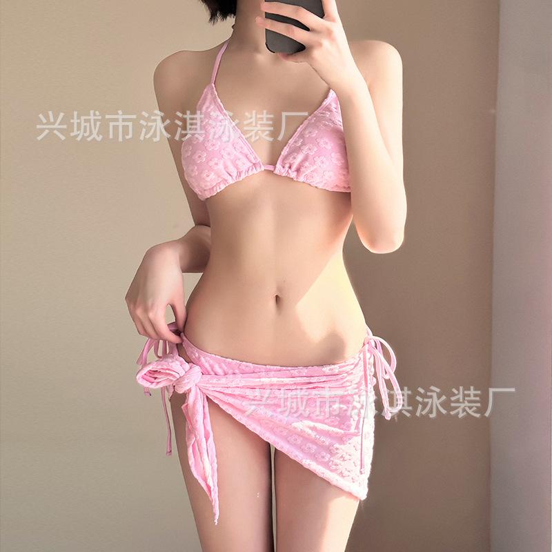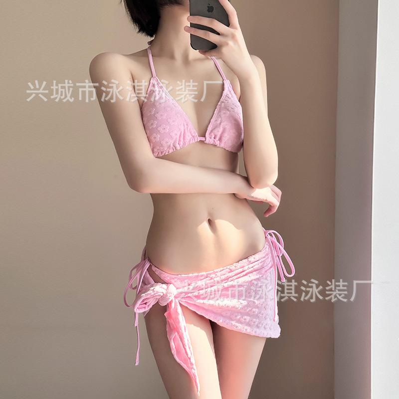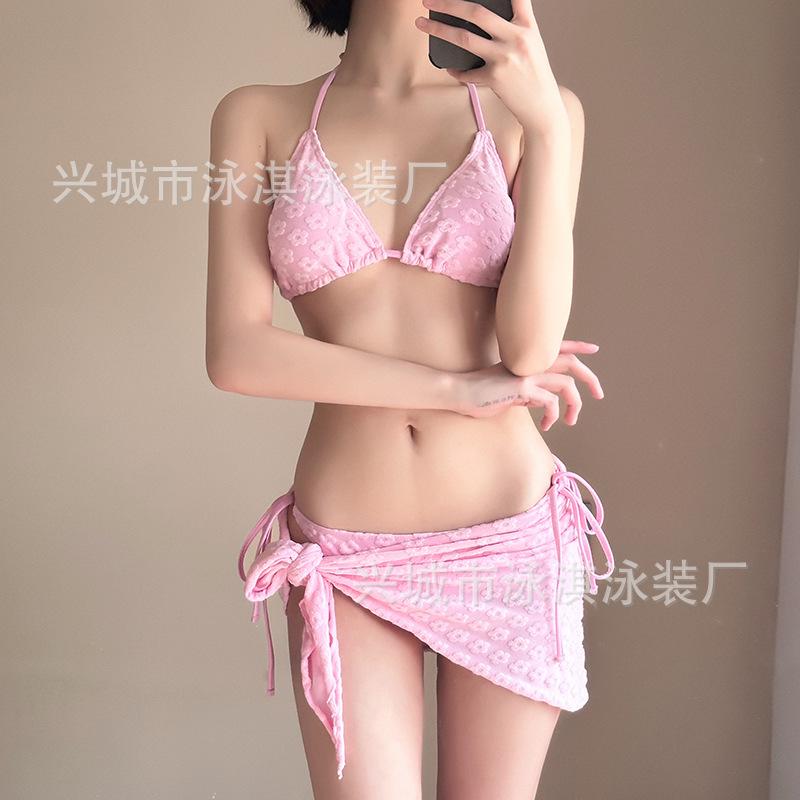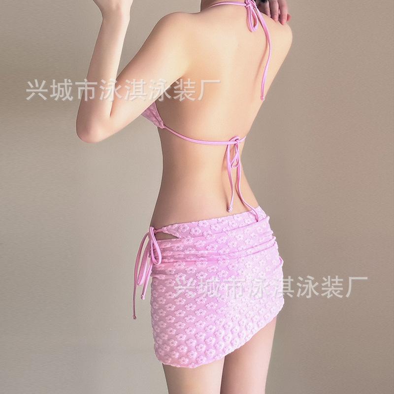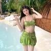 Deseo Puro Chica Estilo Floral Fragante Sexy Caliente Bikini de Tres Piezas Falda Bikini Traje de Baño Dividido para Mujer