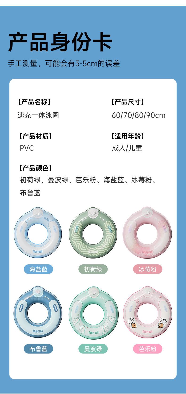 Flotador inflable para niños doble pvc adulto engrosado adulto salvavidas para exteriores con asa