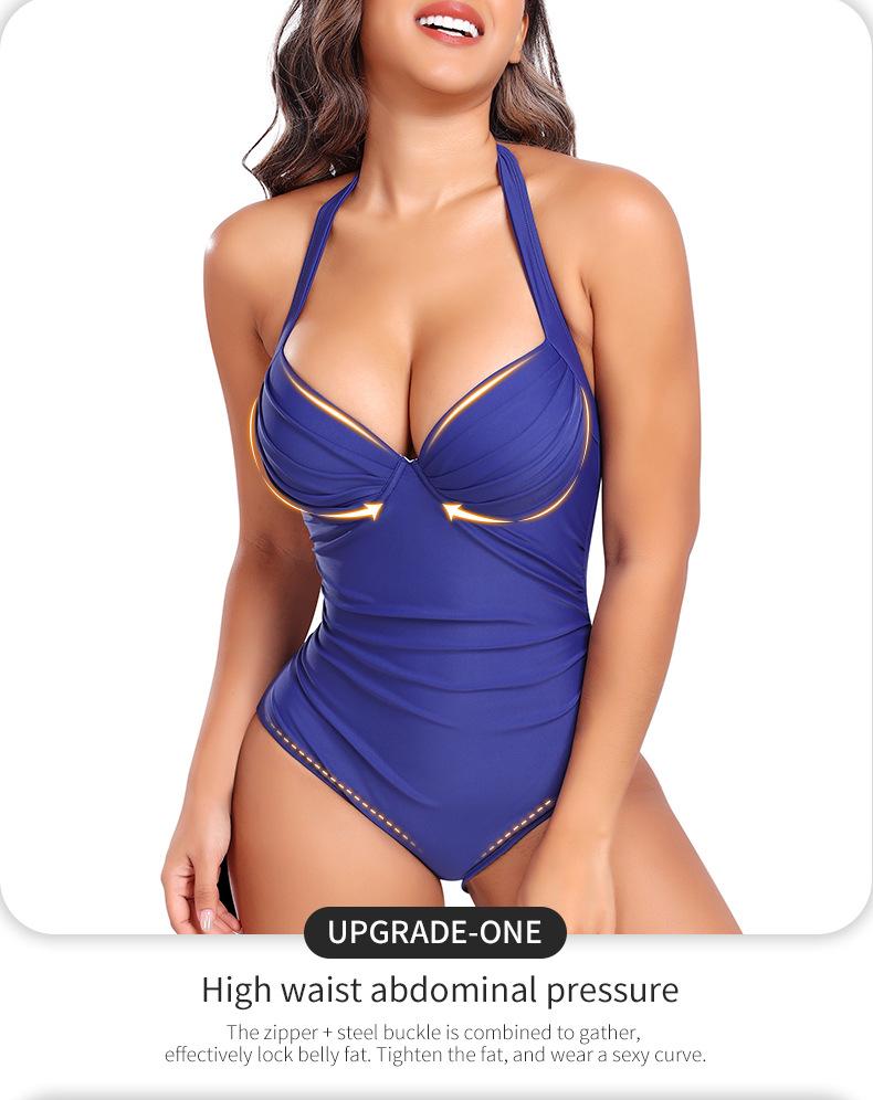 Traje de baño de una pieza moldeador de cintura alta, estilo europeo y americano, sexy, push-up, sin espalda, S1060