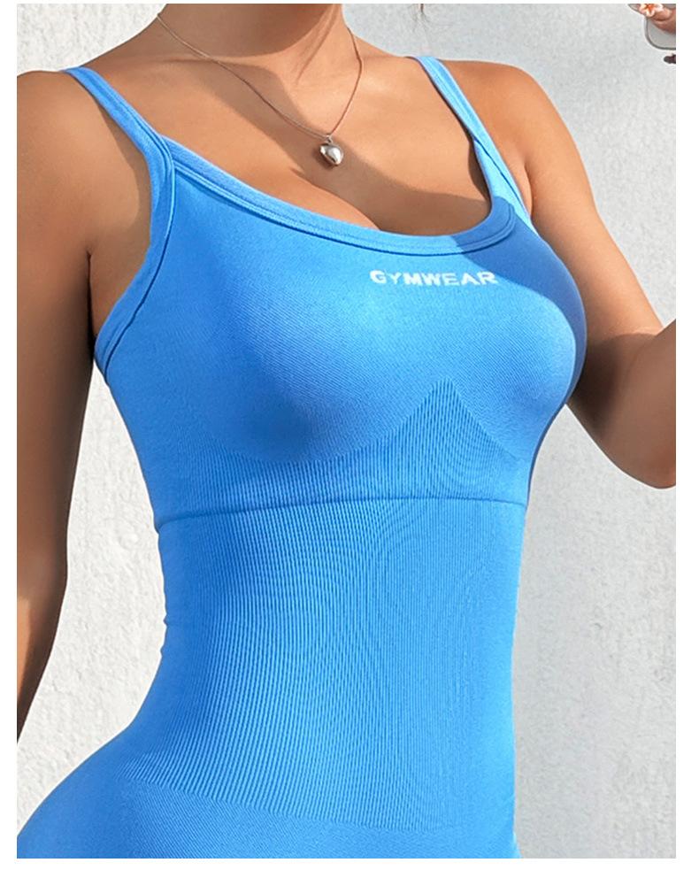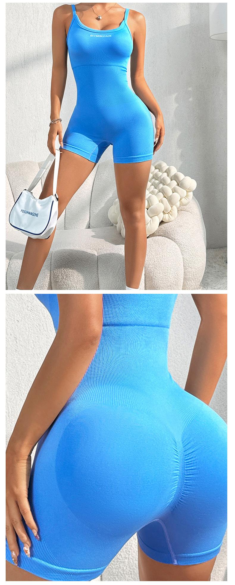 Traje de fitness de una pieza sin costuras europeo y americano para mujer, de secado rápido, con hilo de melocotón en la cadera, traje de yoga de una pieza, deportivo, de belleza, ajustado en la espalda.