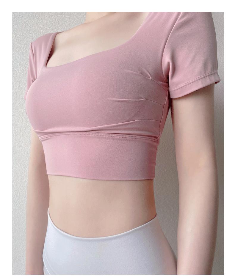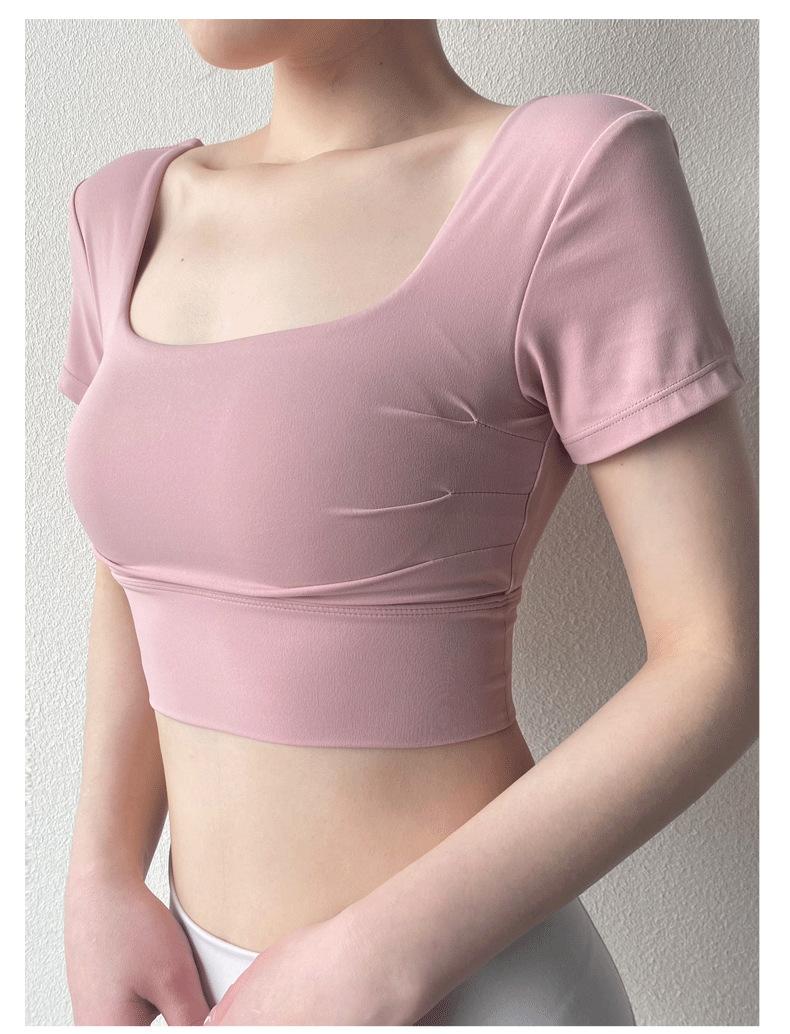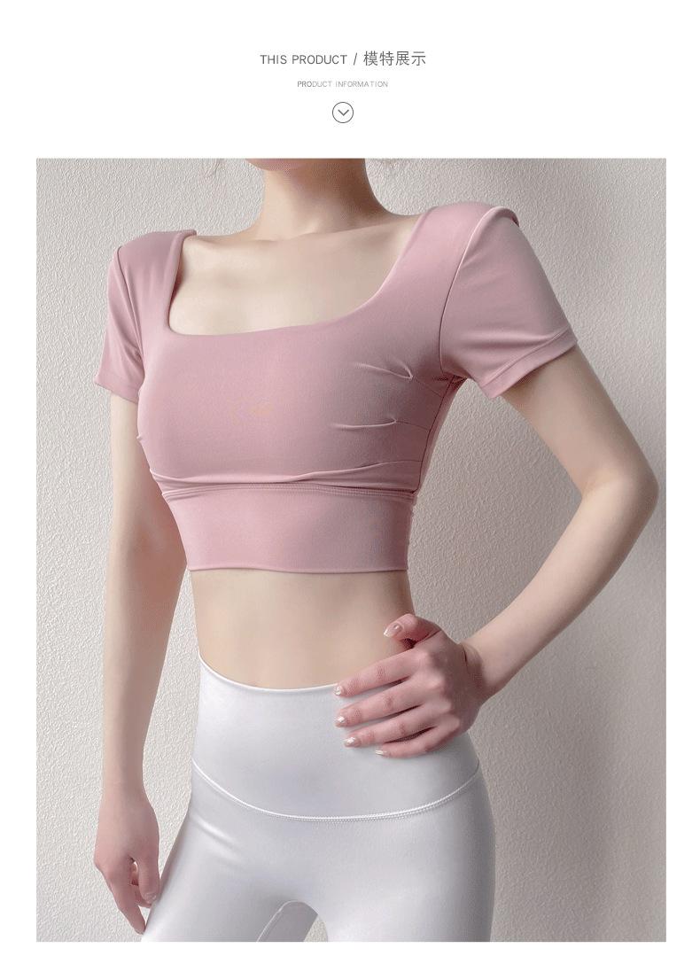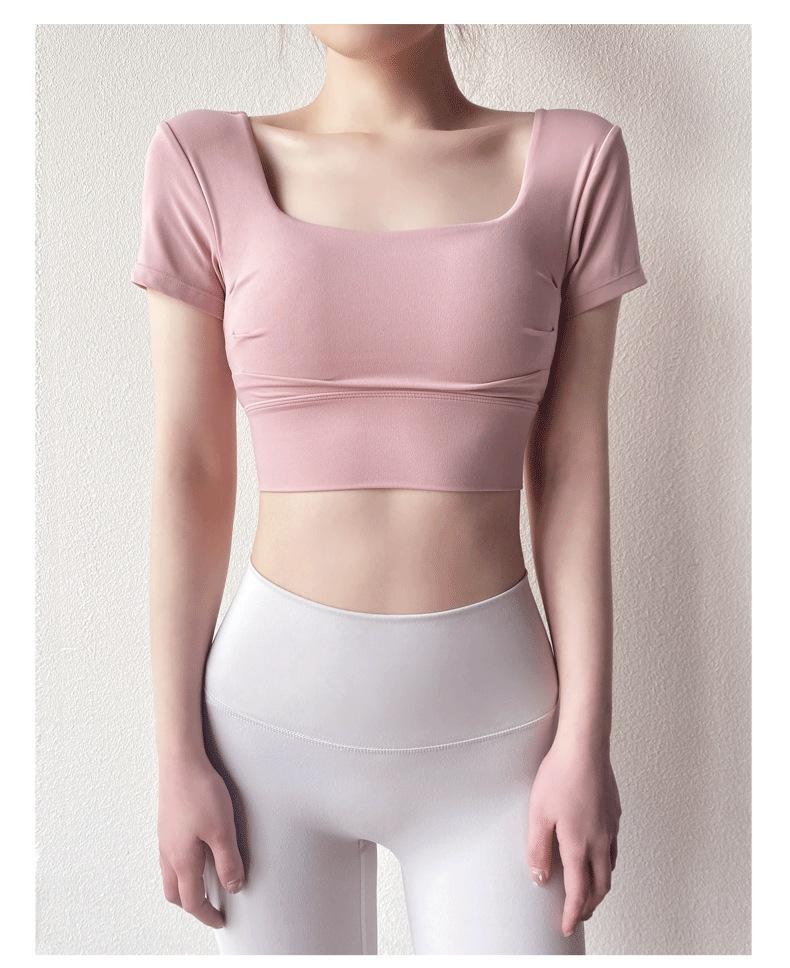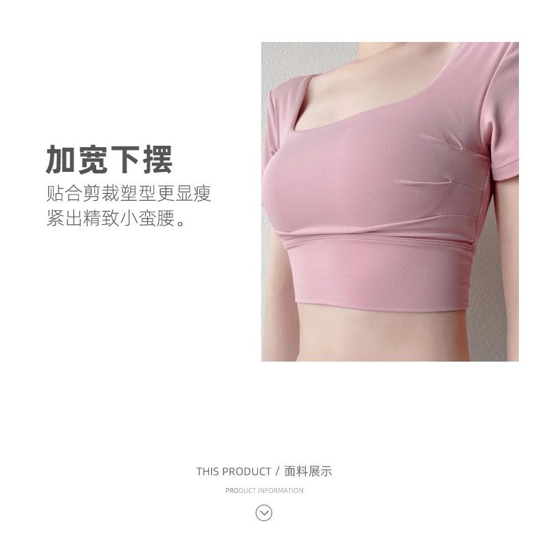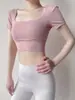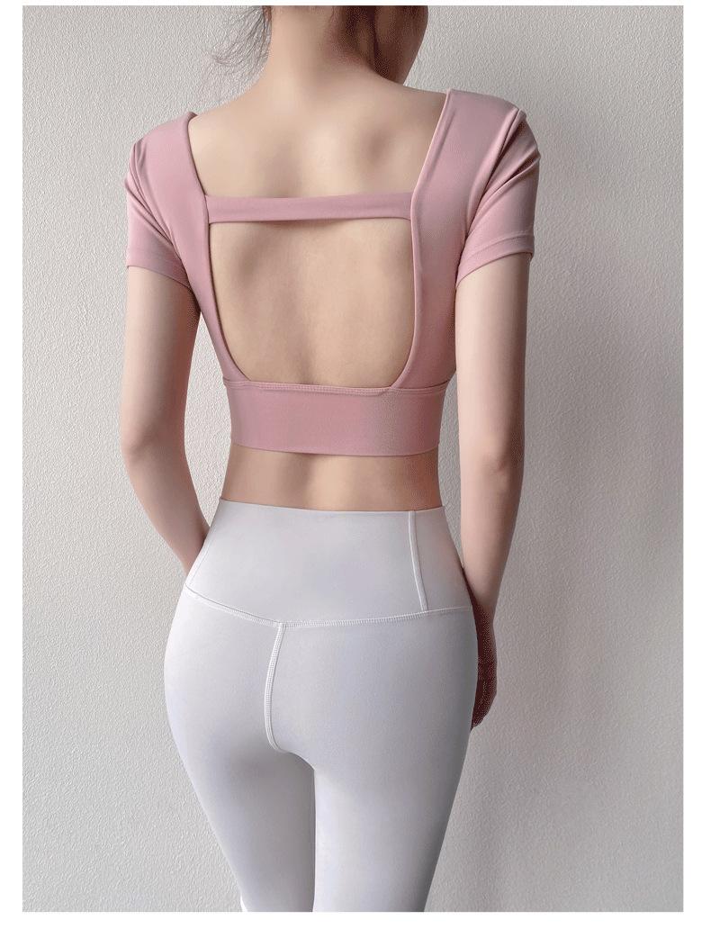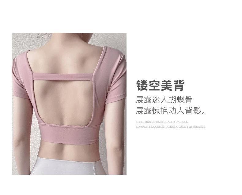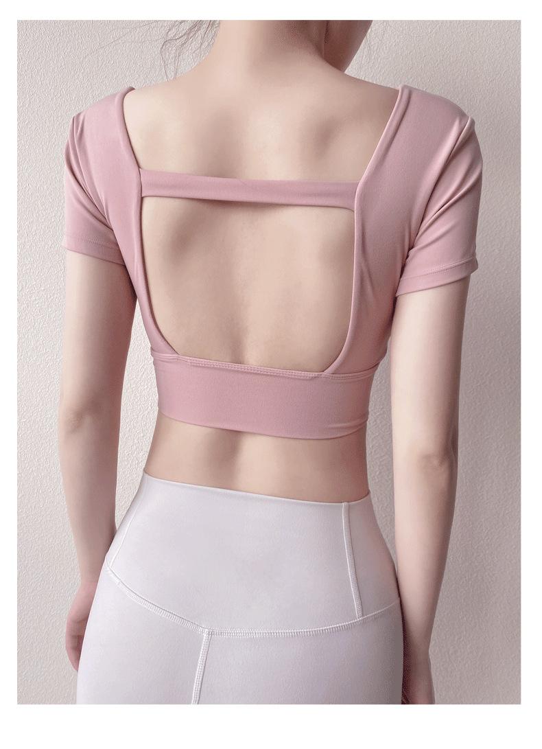 Ropa de Yoga para Mujer Verano Manga Corta Sexy Calado Espalda Hermosa Ropa de Fitness Top Corto de Secado Rápido Chaleco Deportivo con Almohadilla para el Pecho