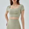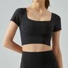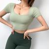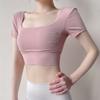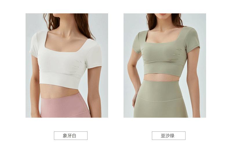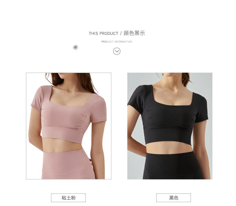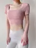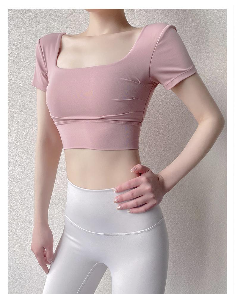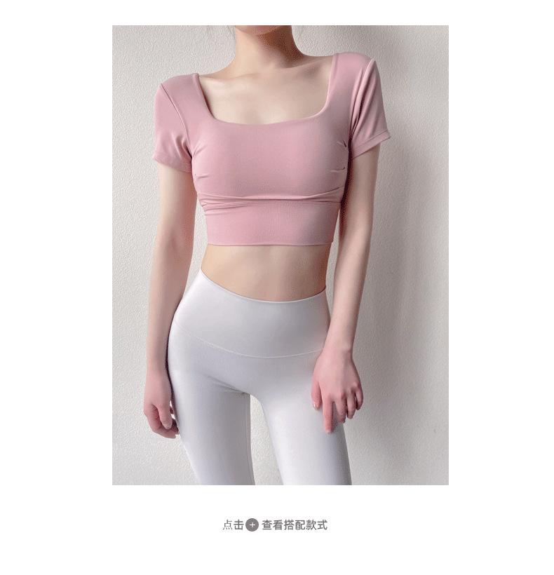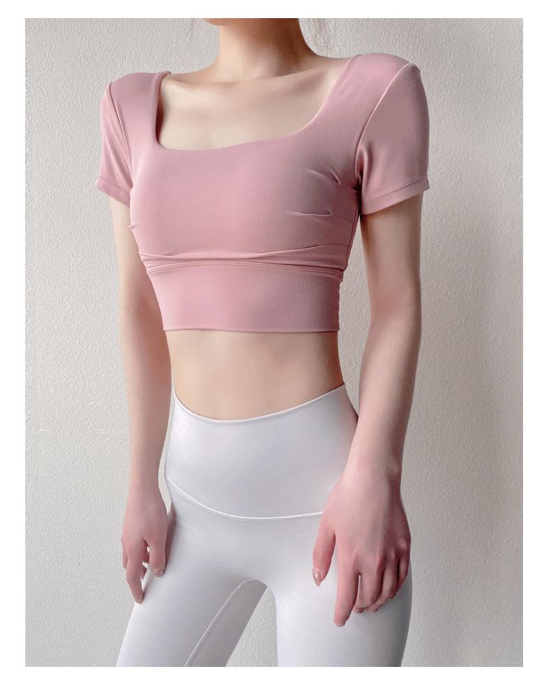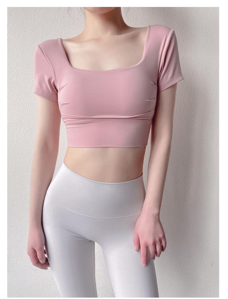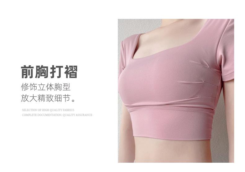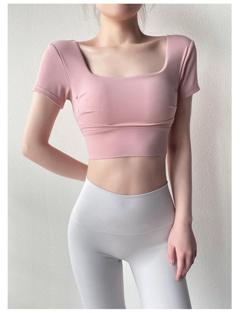 Ropa de Yoga para Mujer Verano Manga Corta Sexy Calado Espalda Hermosa Ropa de Fitness Top Corto de Secado Rápido Chaleco Deportivo con Almohadilla para el Pecho